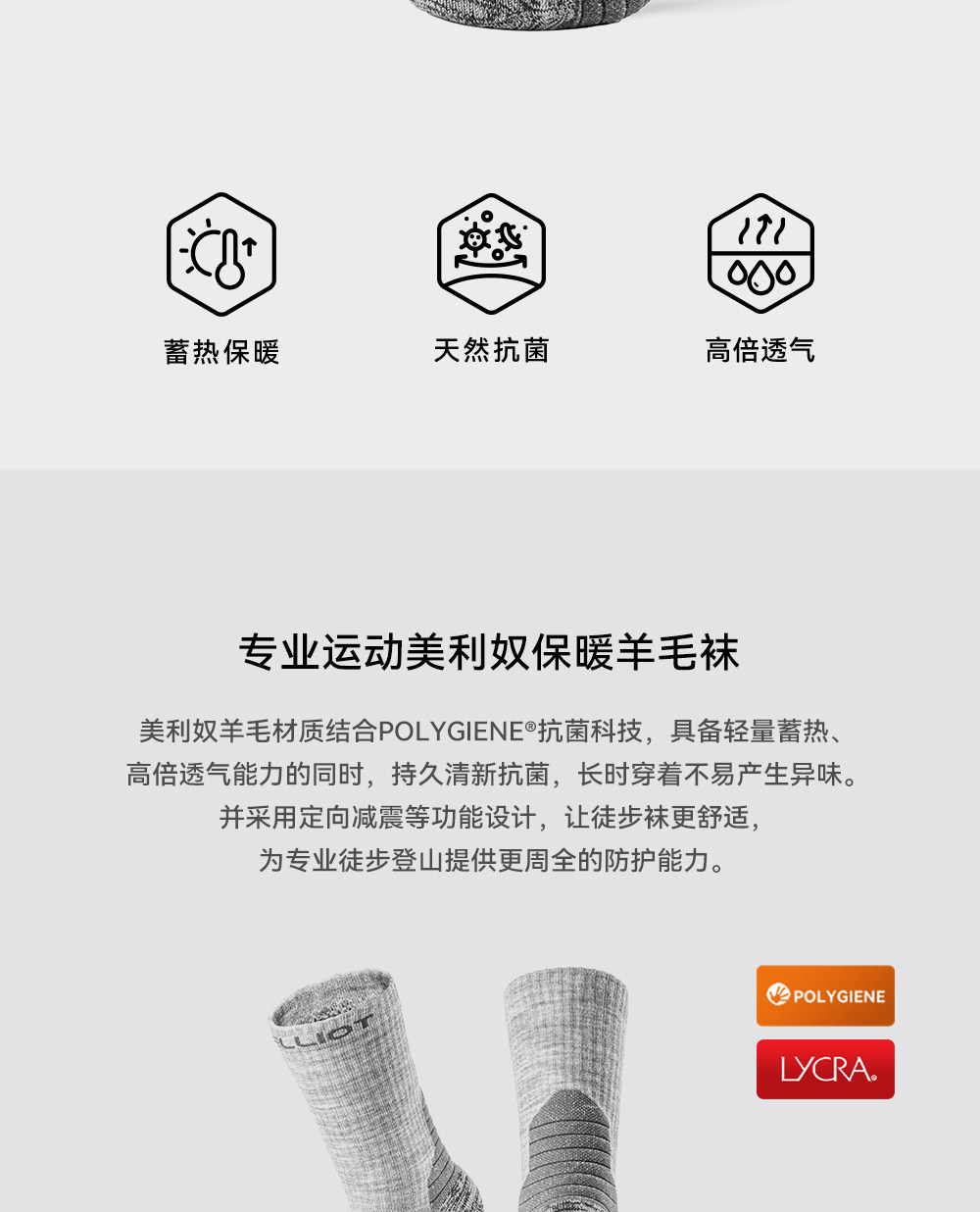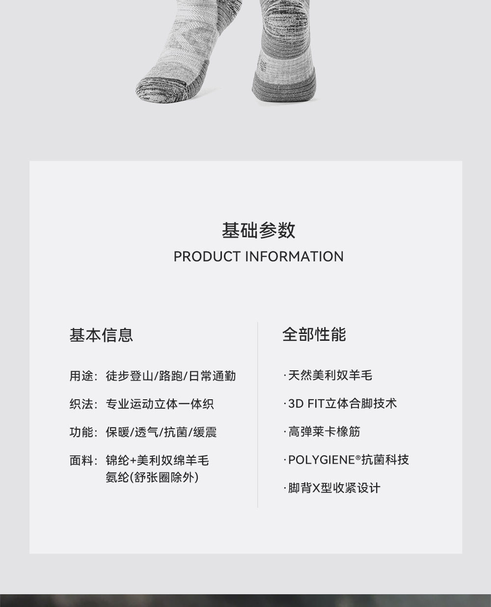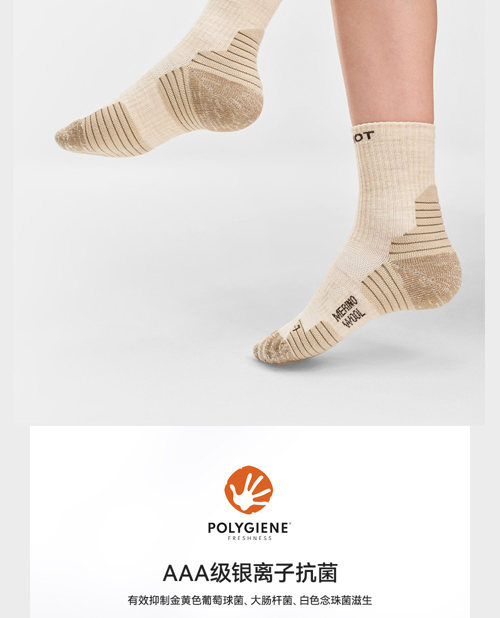 伯希和户外徒步袜男美利奴羊毛春专业登山保暖跑步运动袜子中筒女