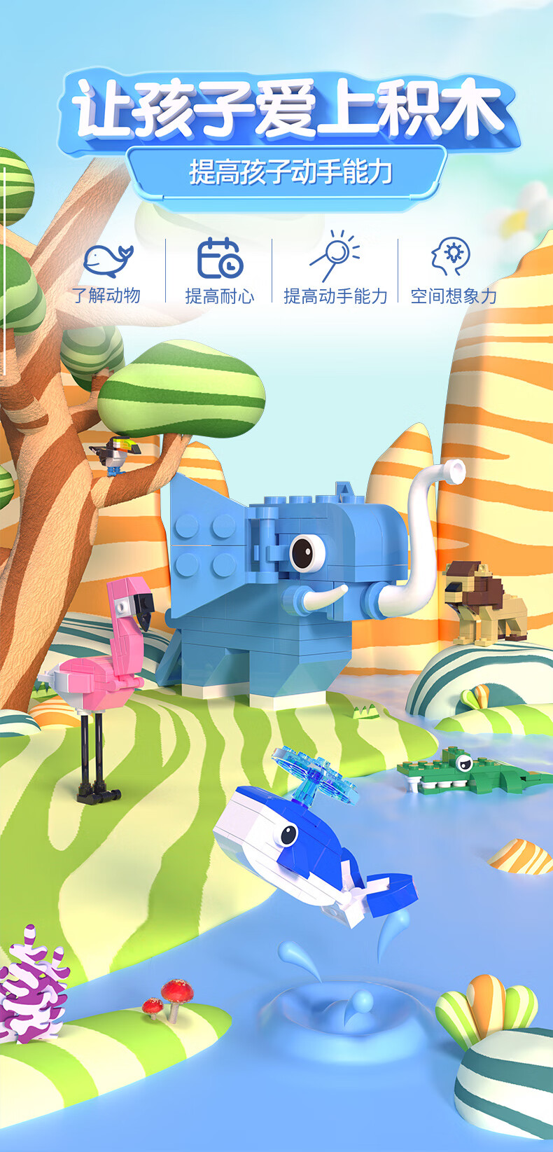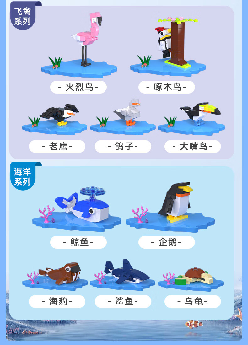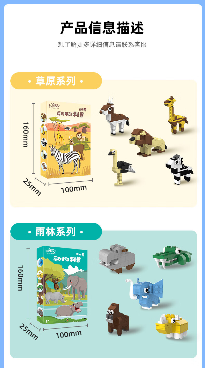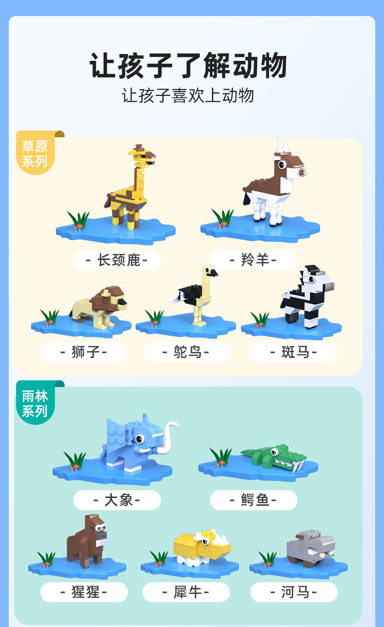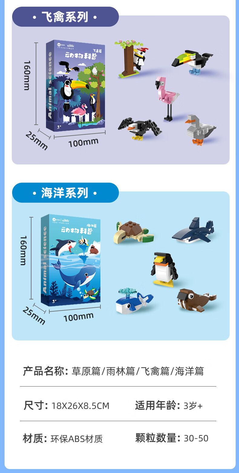 途道(tudao)雨林草原飞禽海洋动物科普系列创意拼装积木男孩儿童益智玩具 动物科普套盒