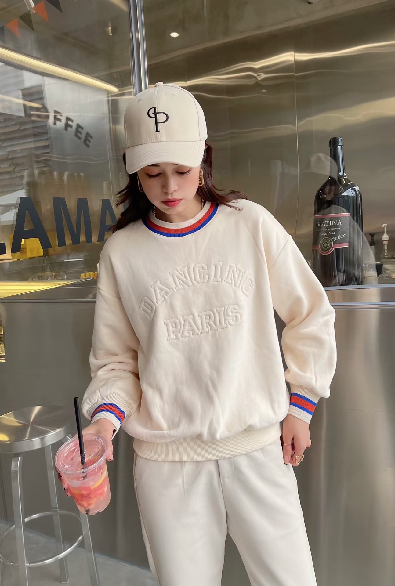 5827#加绒加厚字母印花卫衣