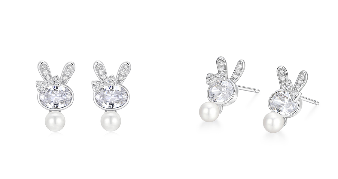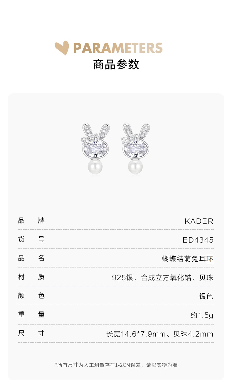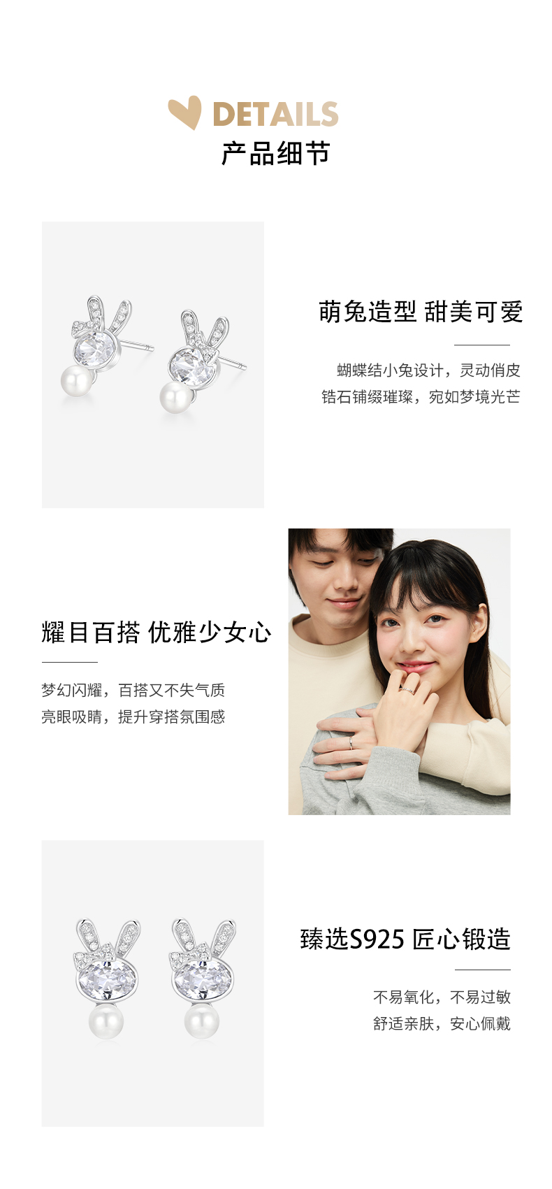 卡蒂罗/KADER 蝴蝶结萌兔耳环 萌趣童话风兔子流苏兔耳朵养耳洞耳饰 满镶宝石可爱俏皮蝴蝶结配饰 925银