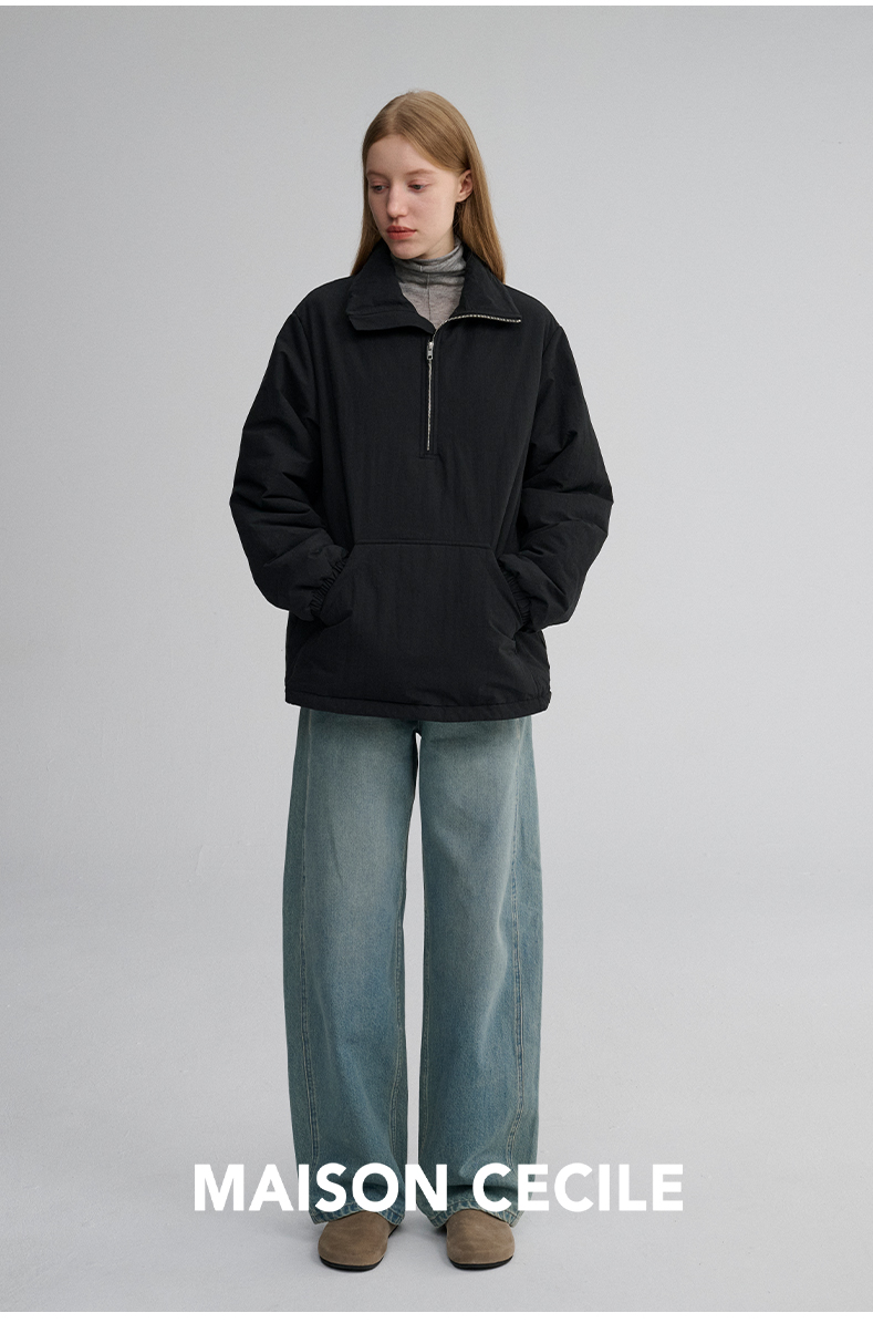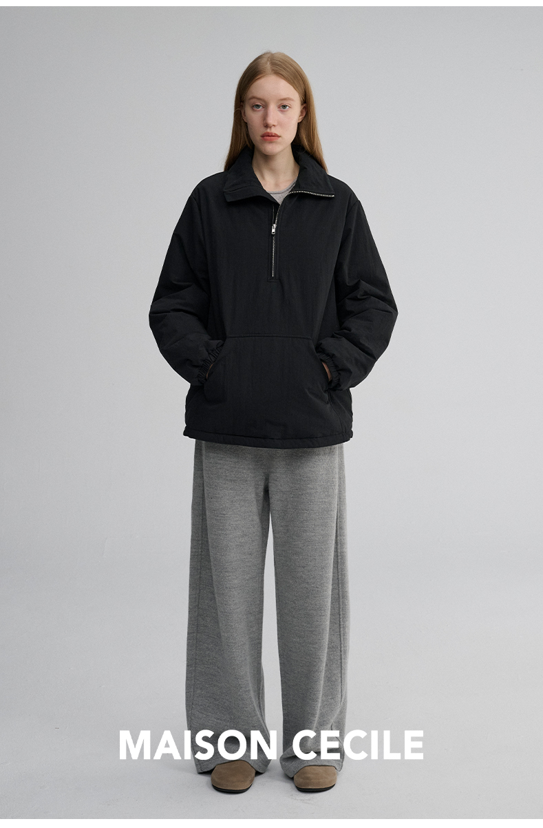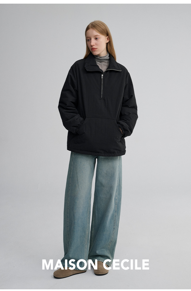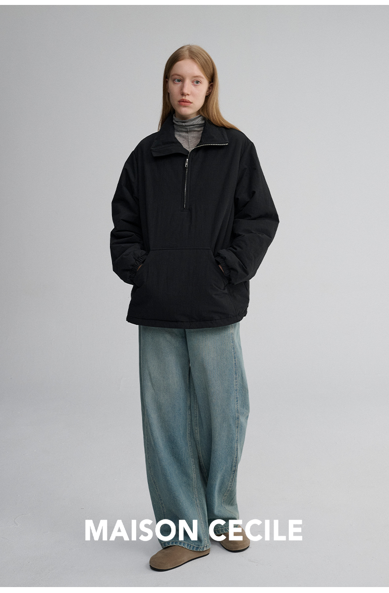 MAISON CECILE 两色|宽松保暖套头立领两穿半开襟大口袋卫衣棉服