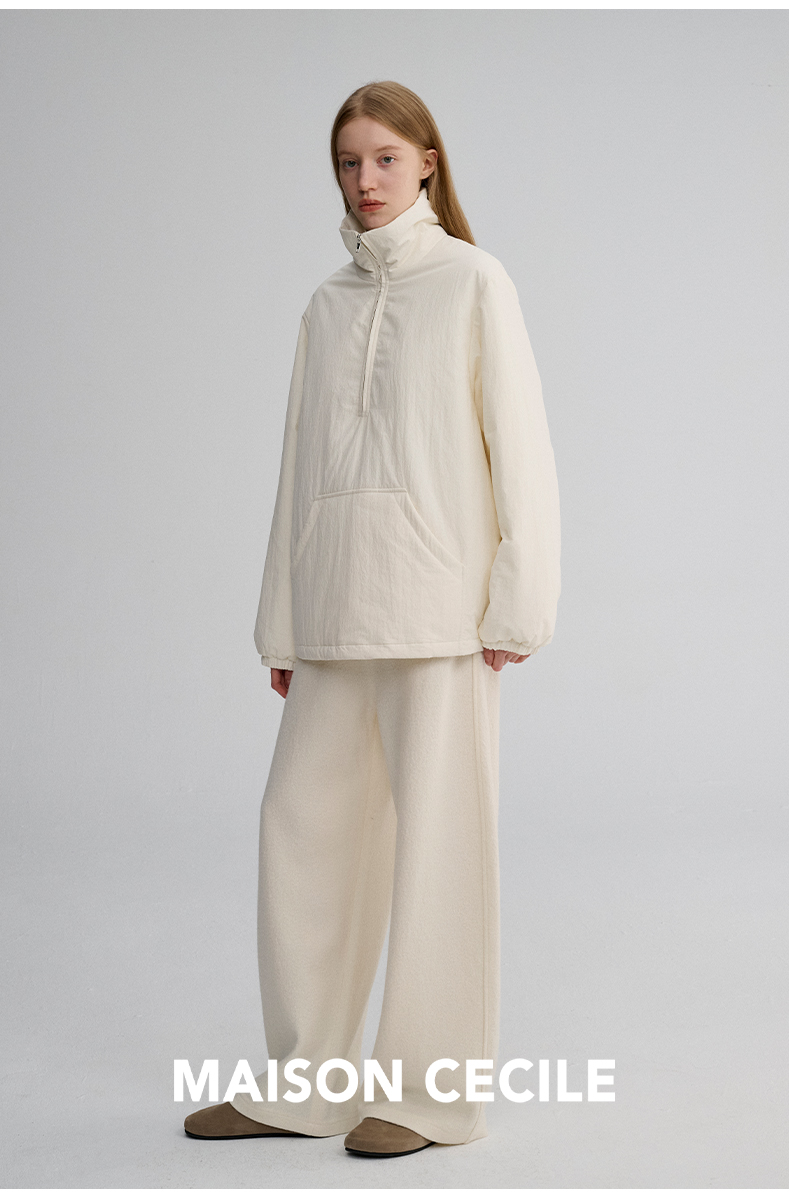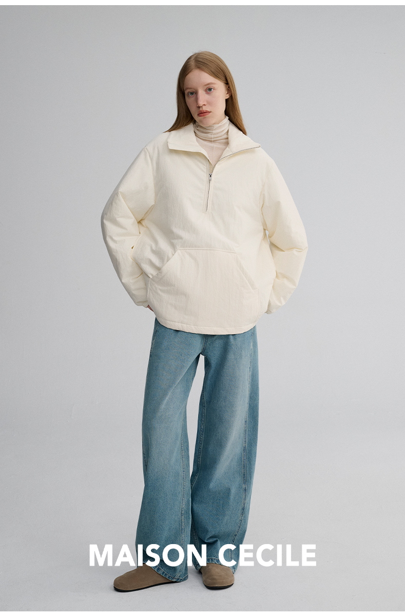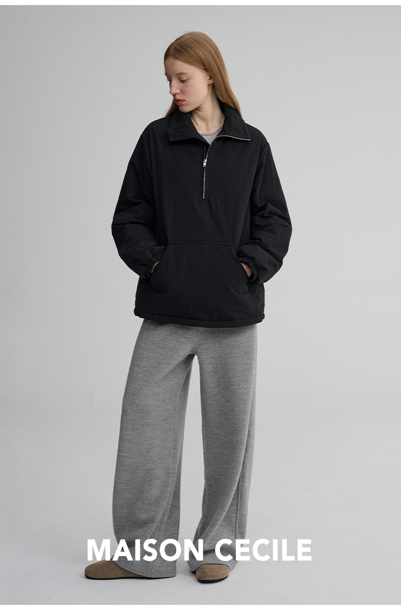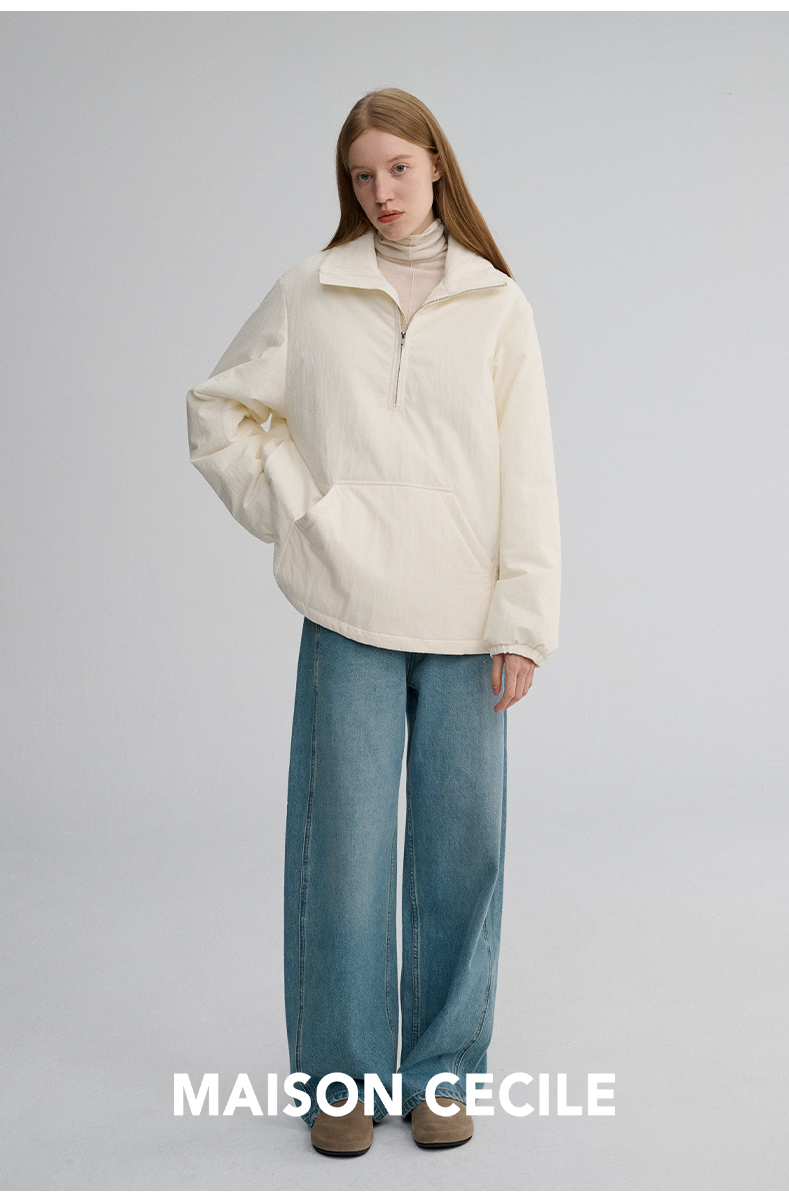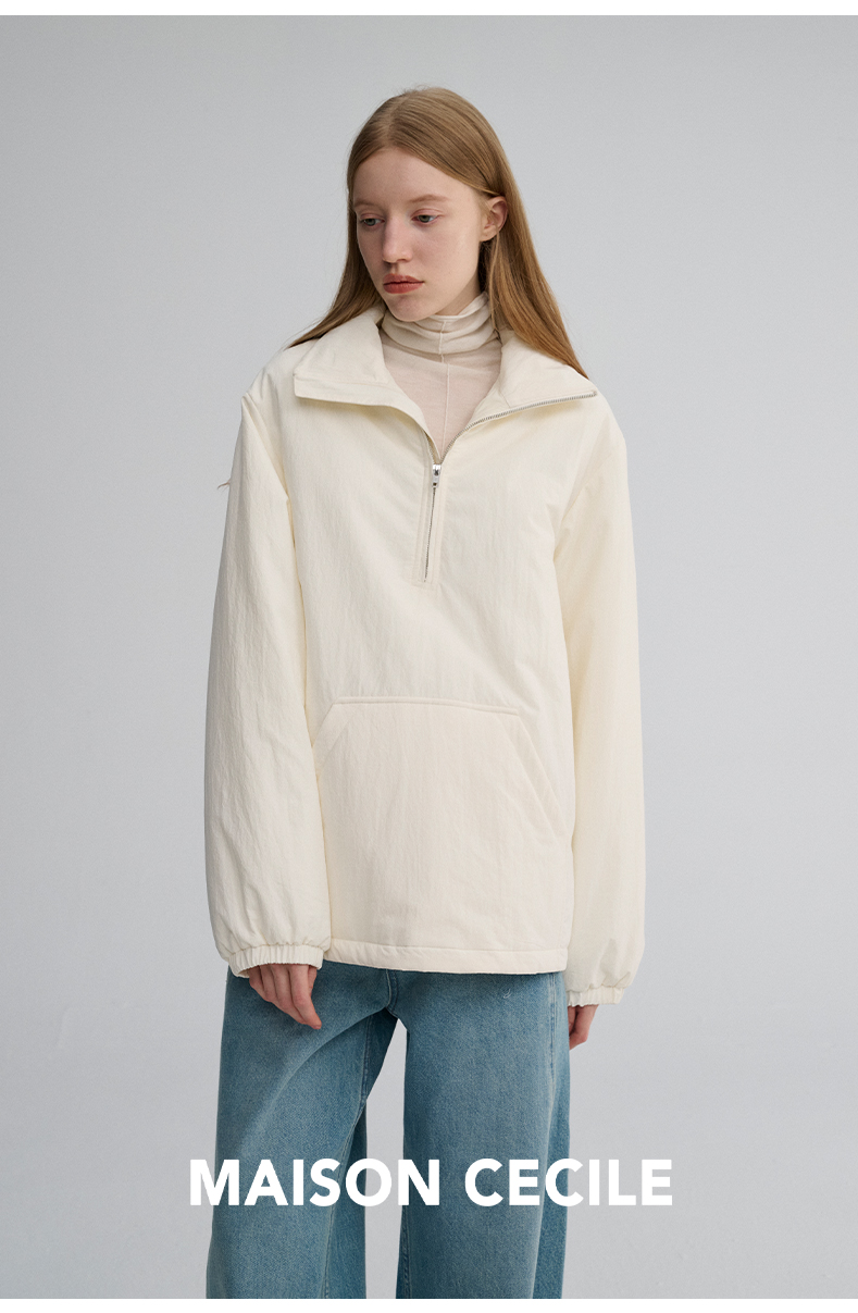 MAISON CECILE 两色|宽松保暖套头立领两穿半开襟大口袋卫衣棉服