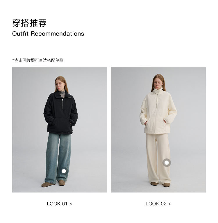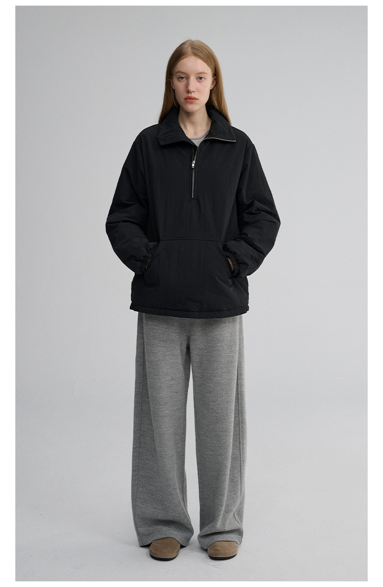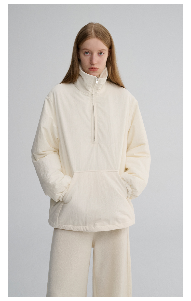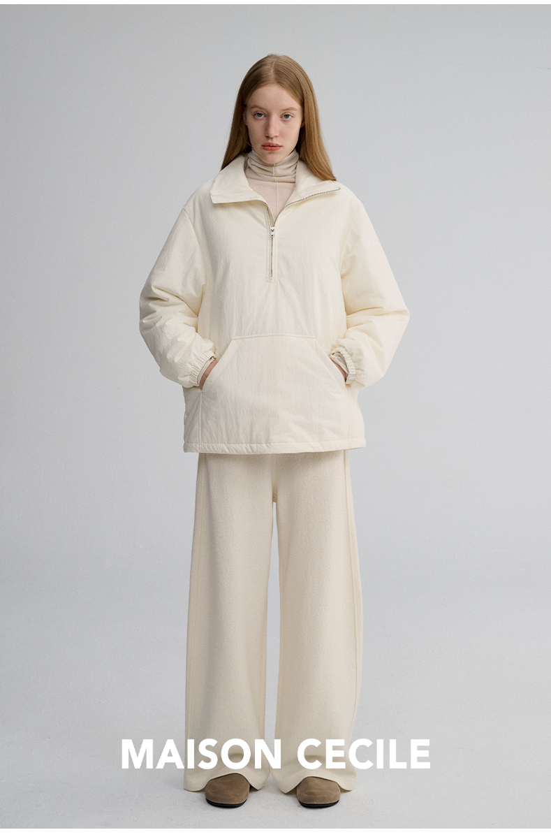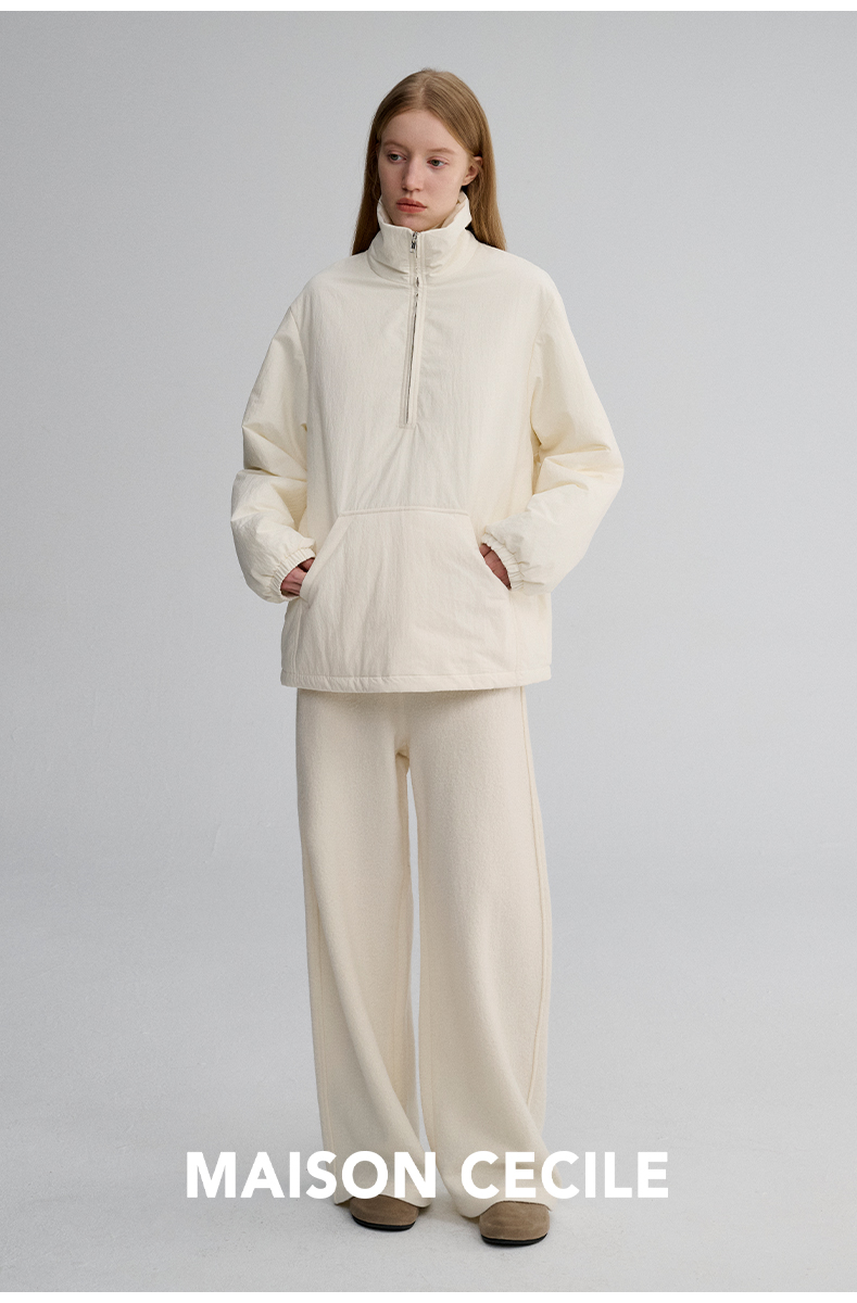 MAISON CECILE 两色|宽松保暖套头立领两穿半开襟大口袋卫衣棉服