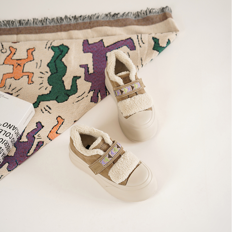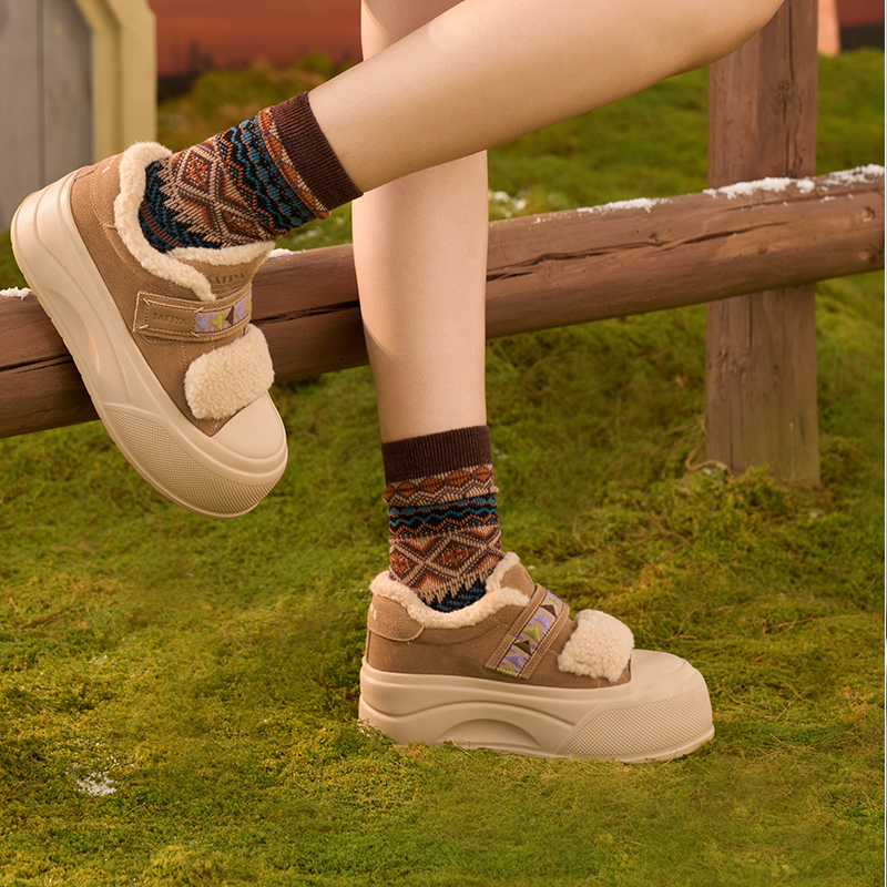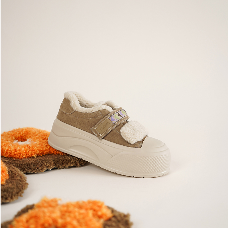 Safiya/索菲娅2025艺术家联名魔术贴厚底保暖百搭轻便增高毛毛鞋SFD411A150