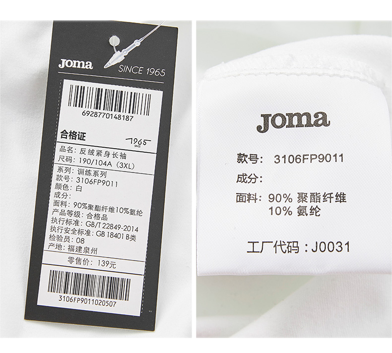 SFS荷马Joma正品冬季足球运动加绒紧身长袖透气舒适篮球健身衣