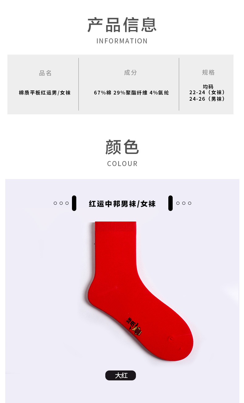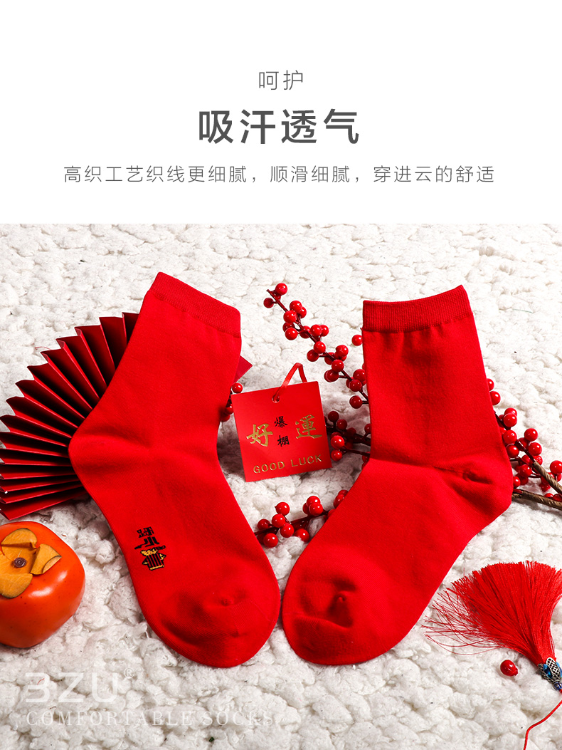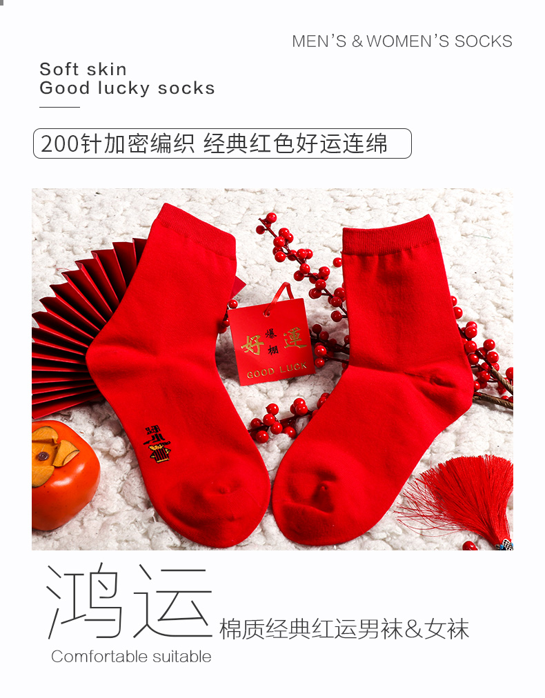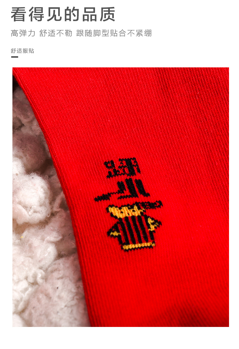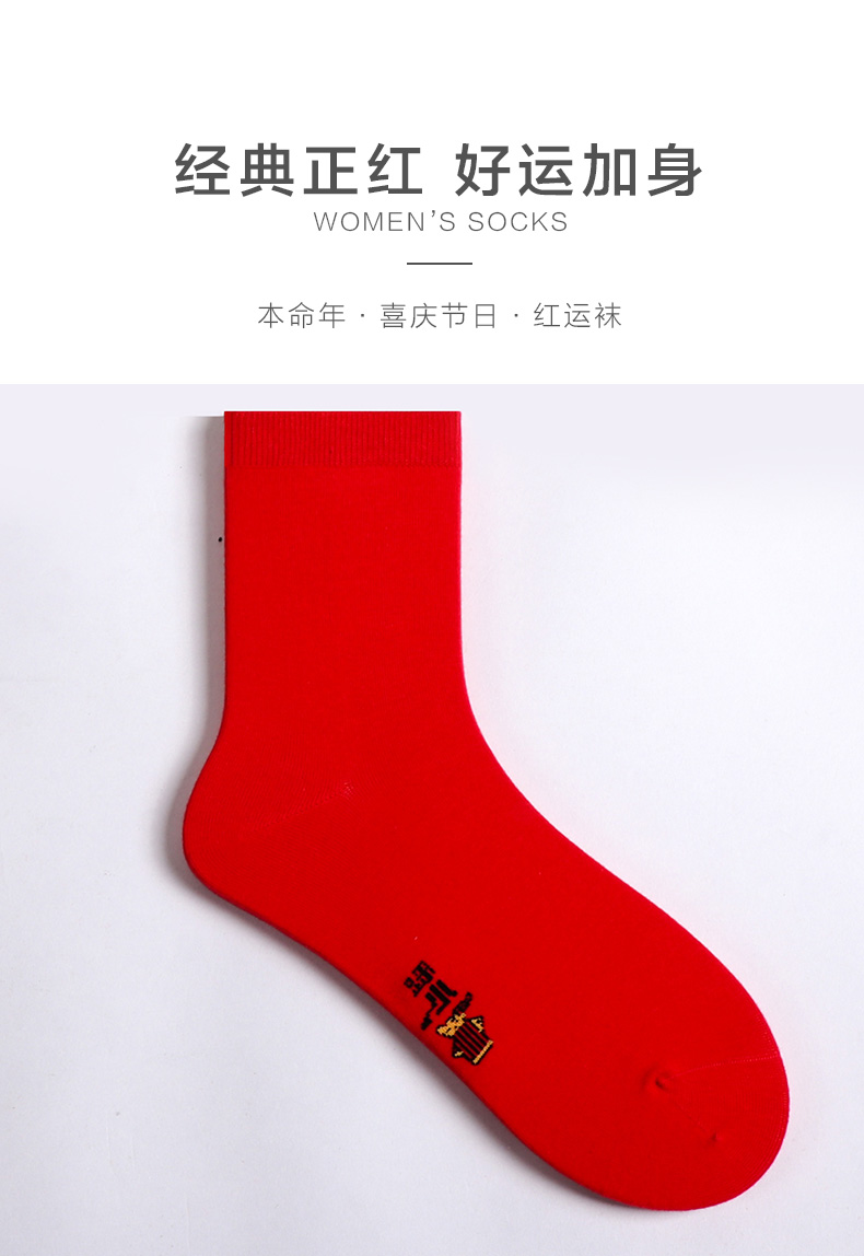【任选6双99.5】足装秀秋冬女士春季中筒棉质平板红运男袜女袜