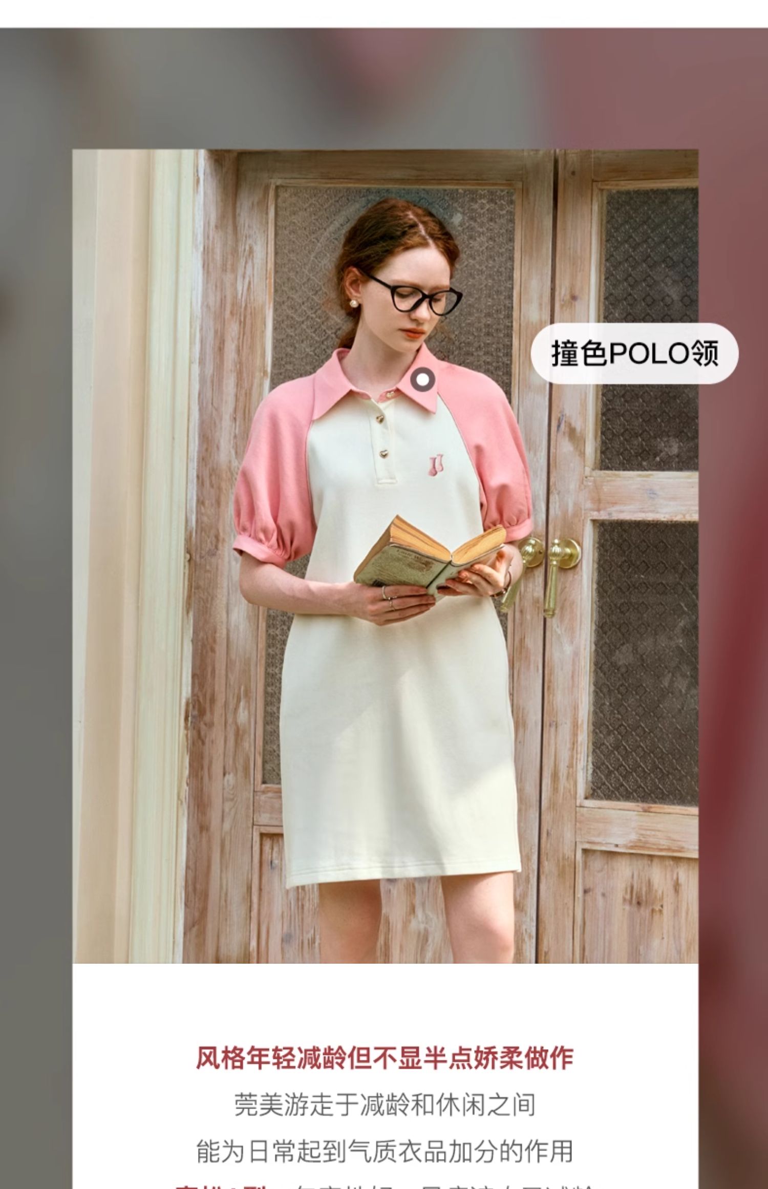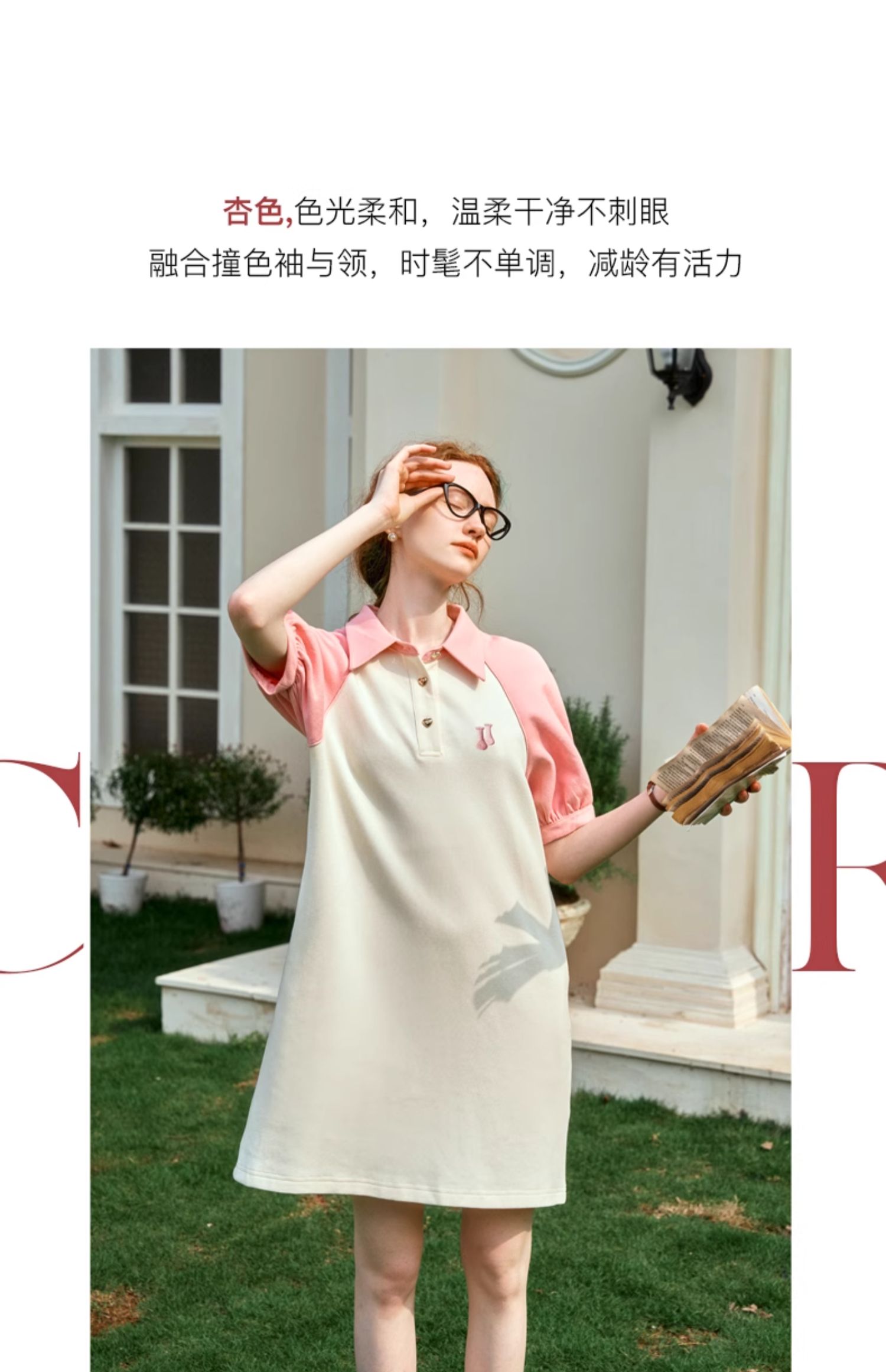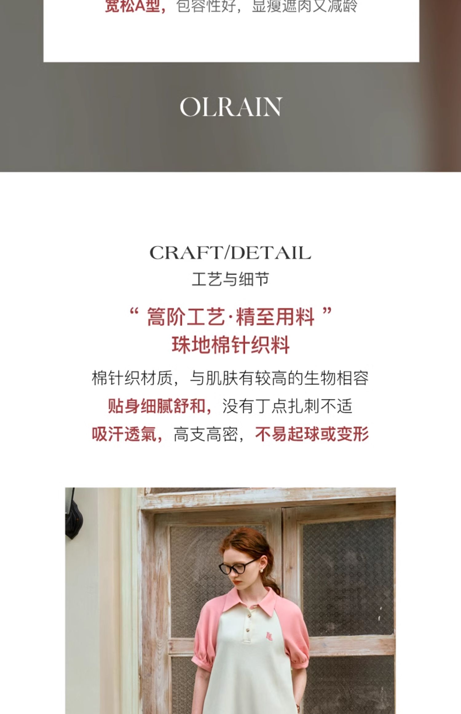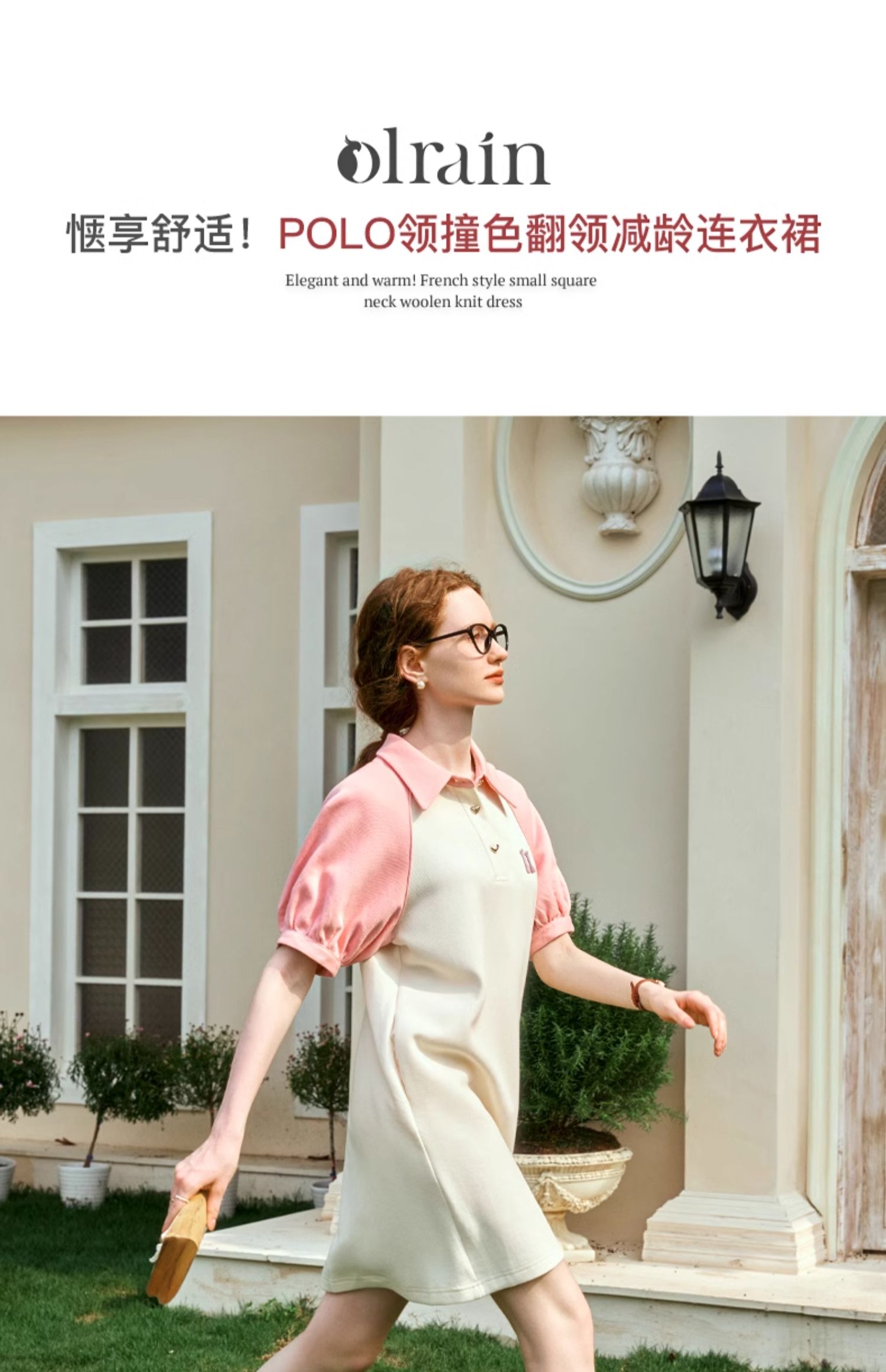 OLrain欧芮儿POLO领杏色连衣裙女夏季2024新款撞色翻领减龄A字裙