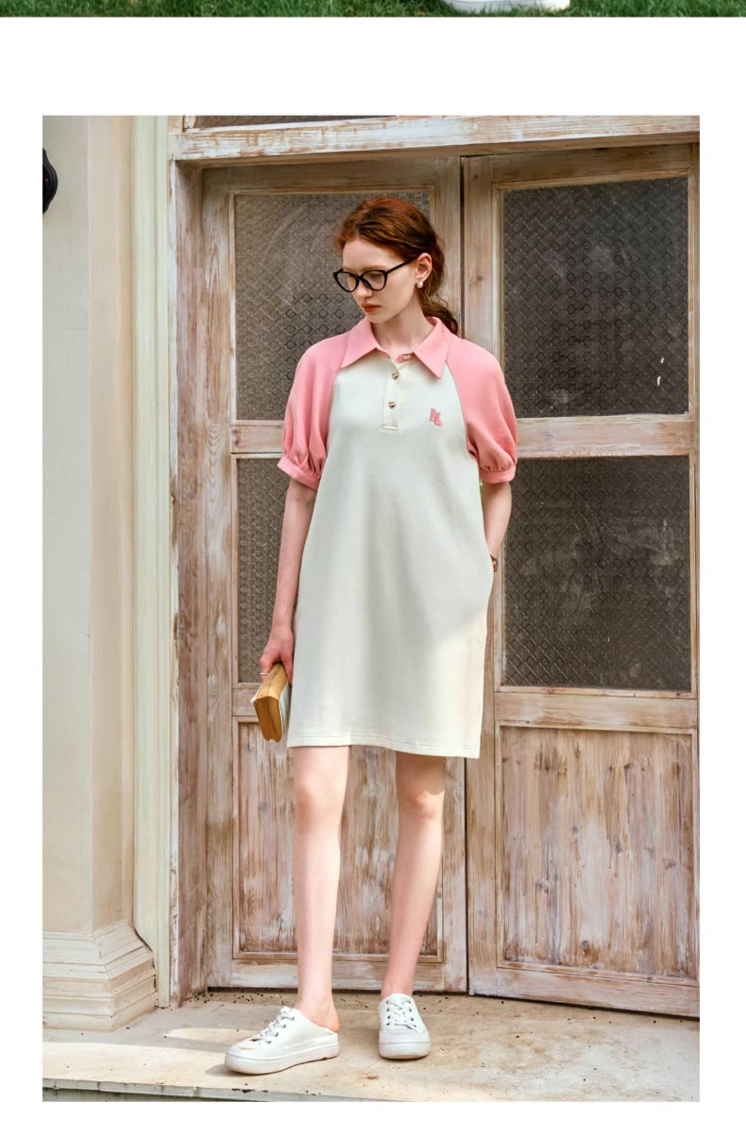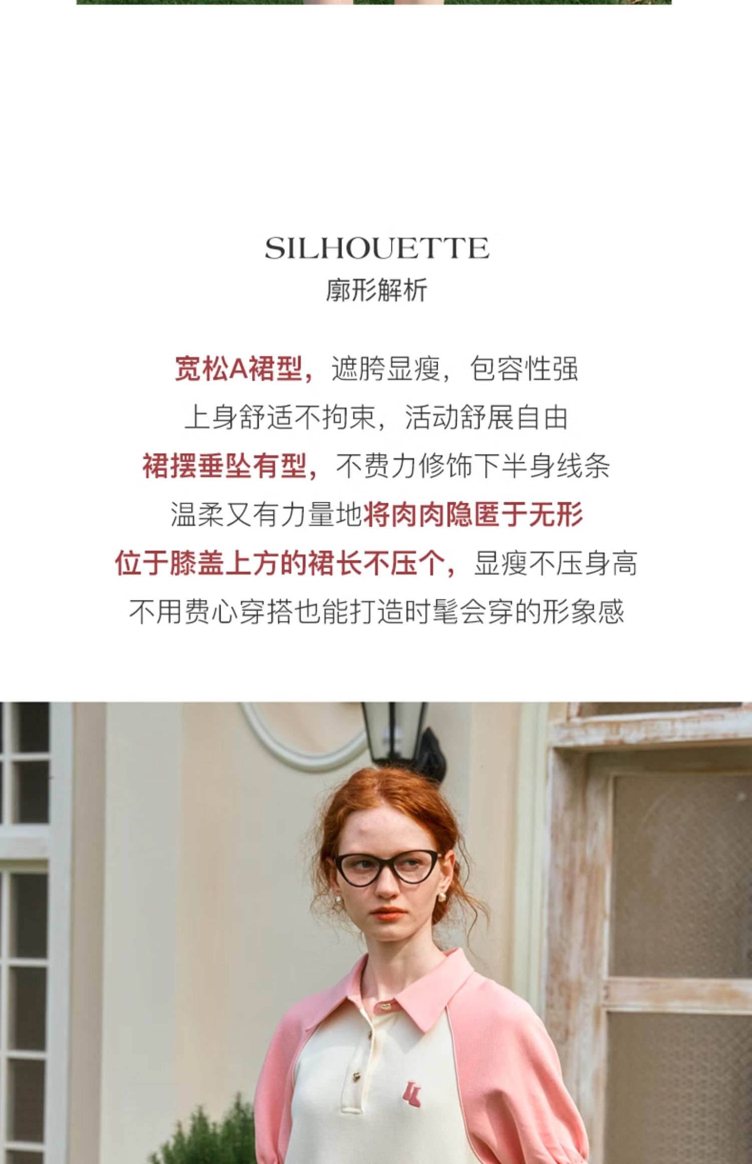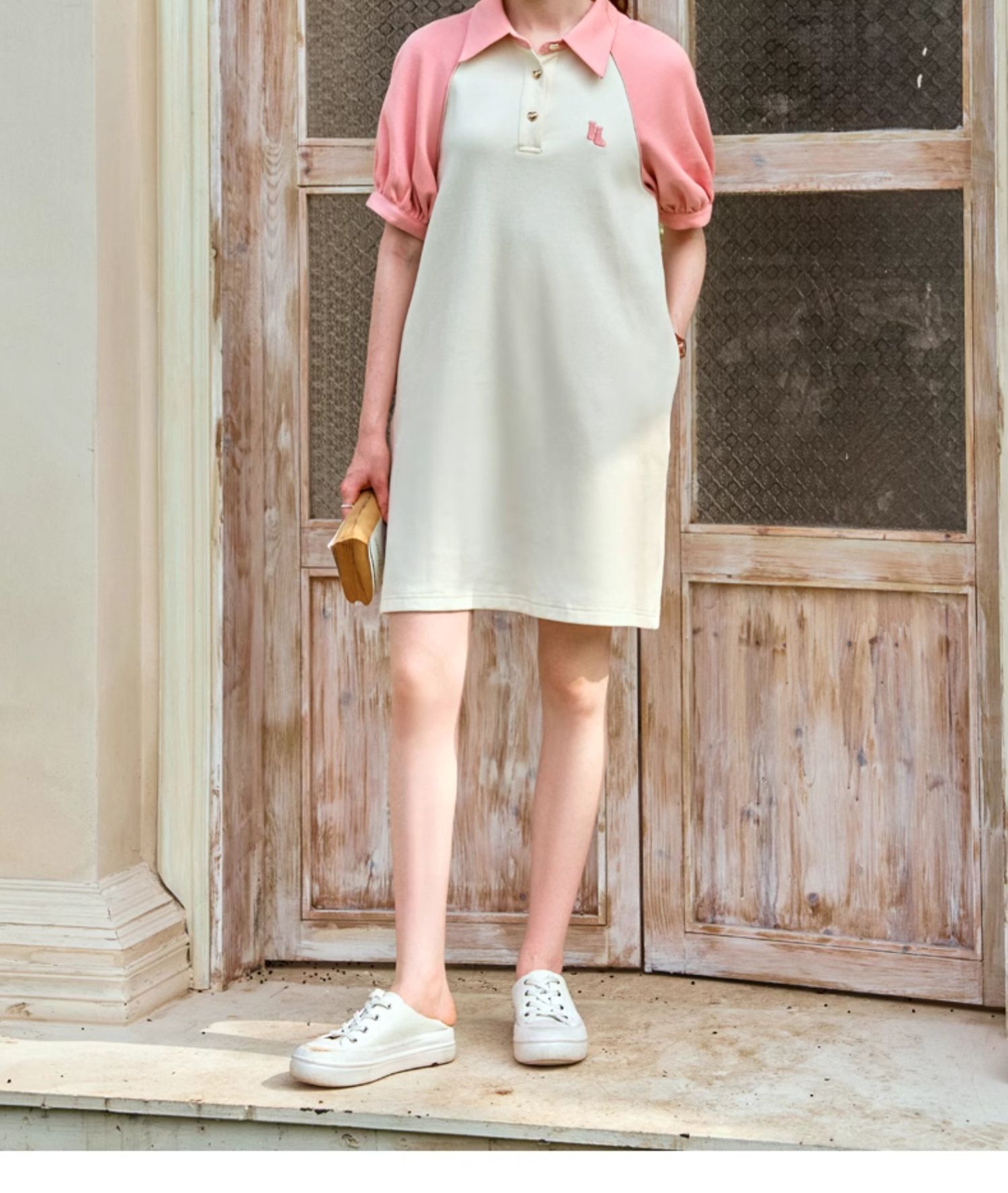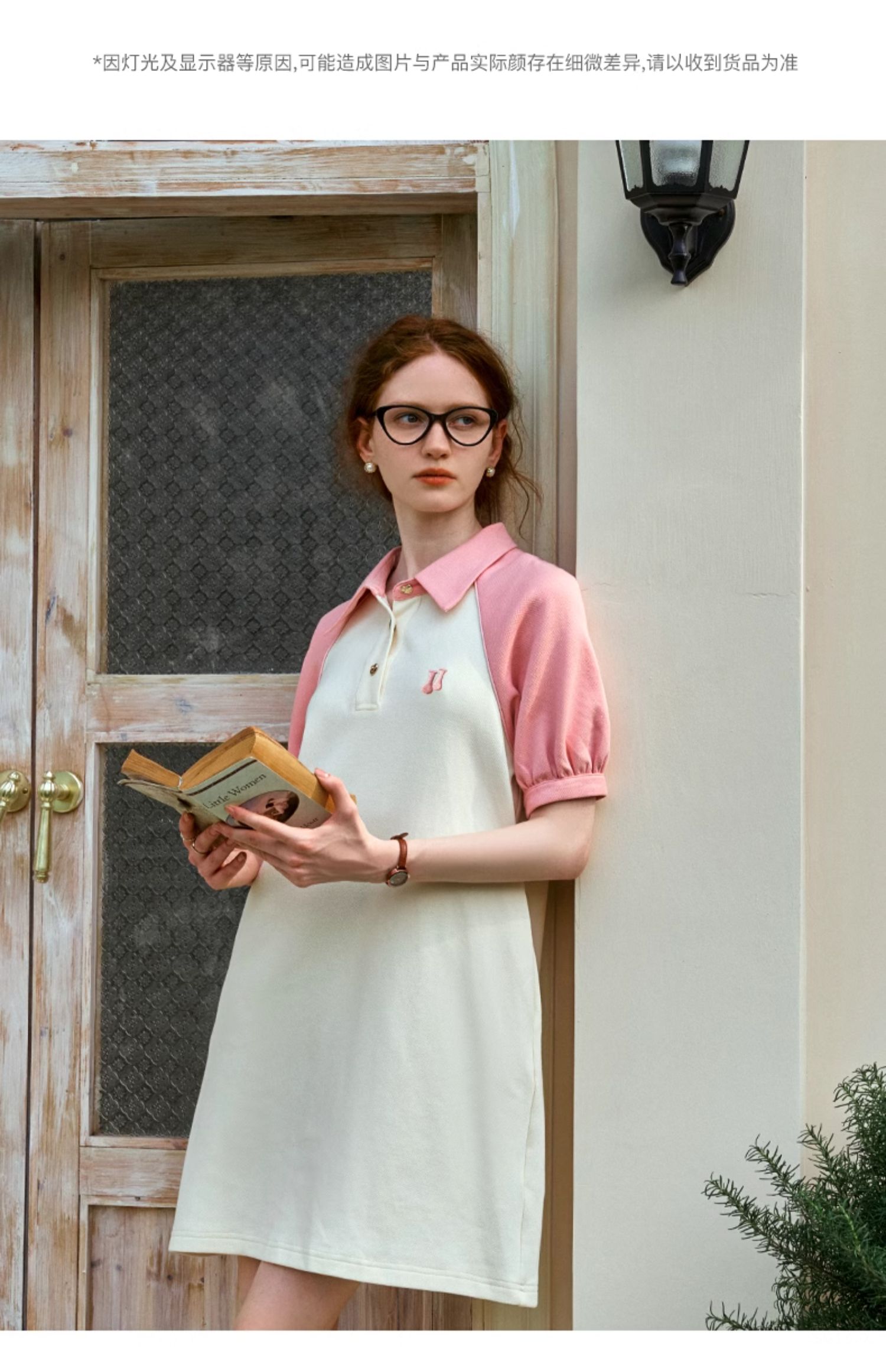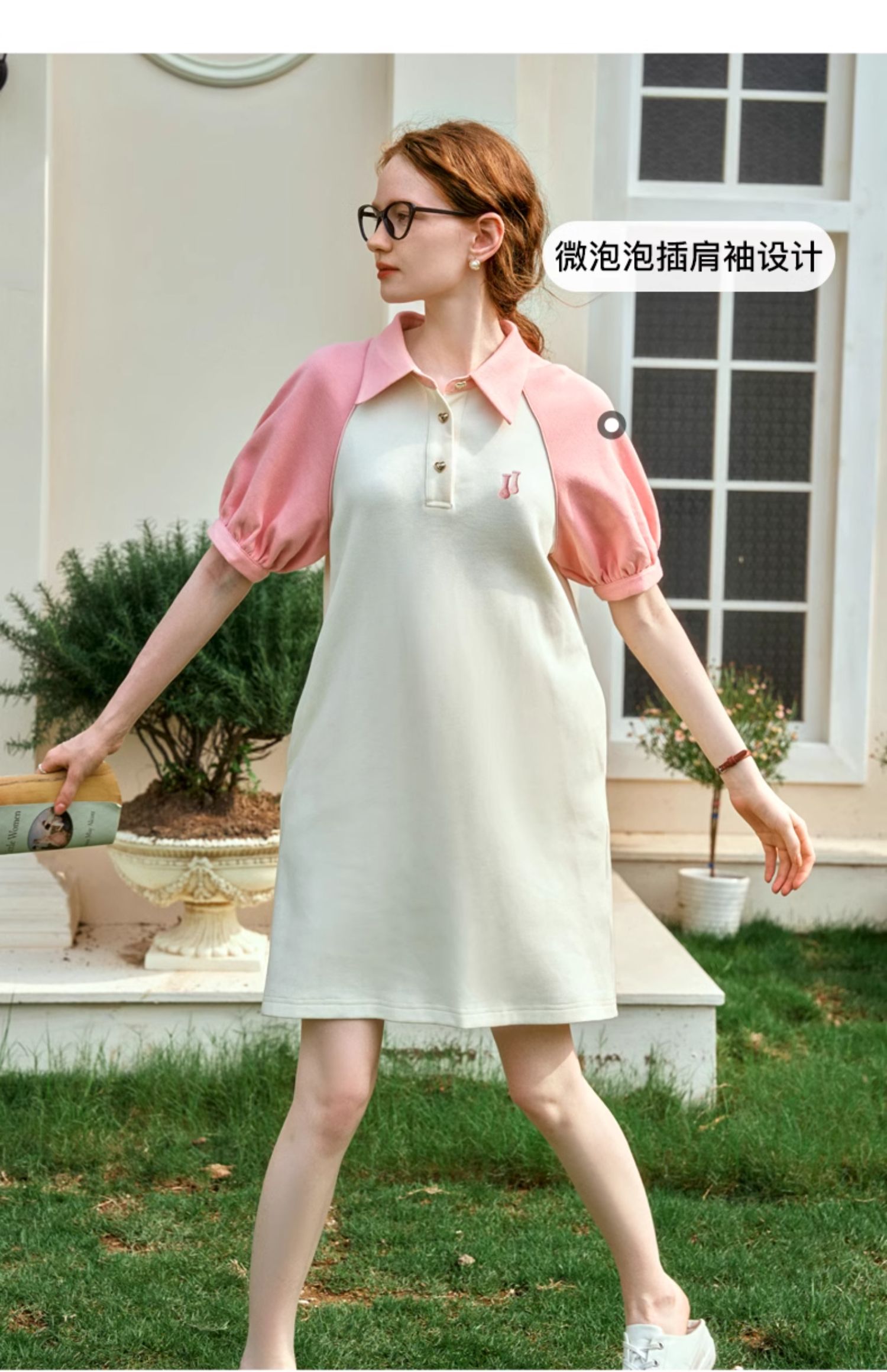 OLrain欧芮儿POLO领杏色连衣裙女夏季2024新款撞色翻领减龄A字裙