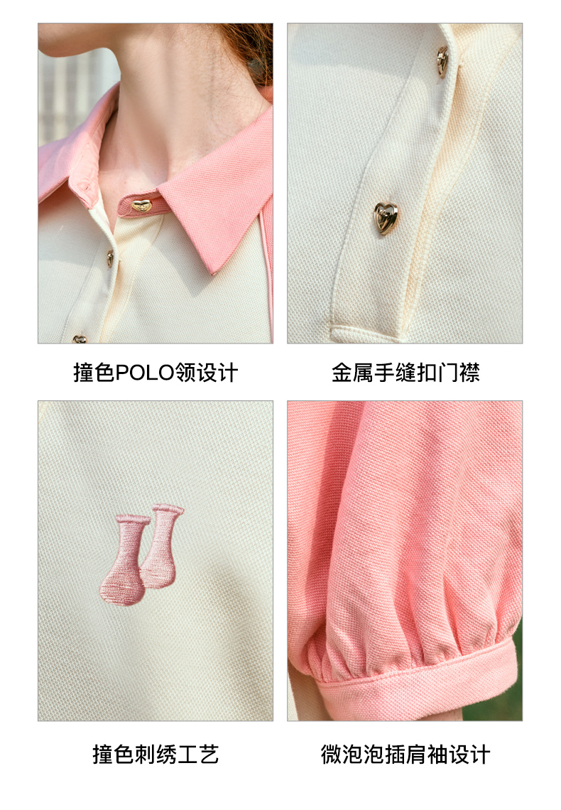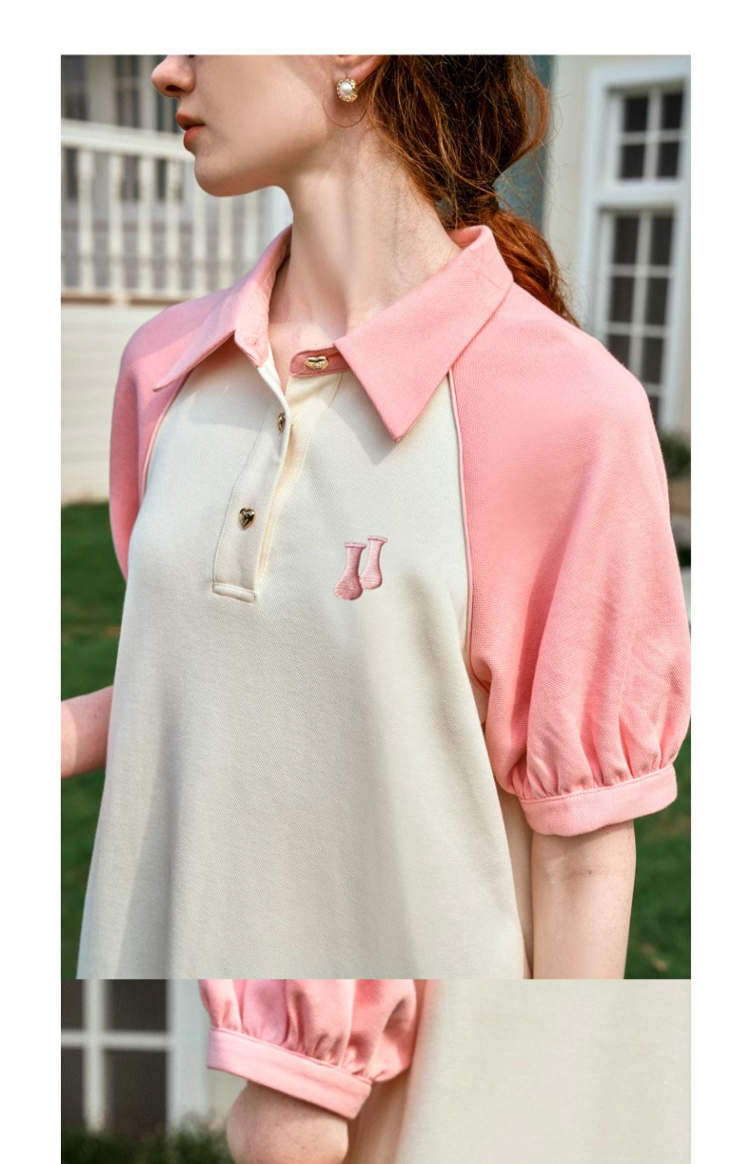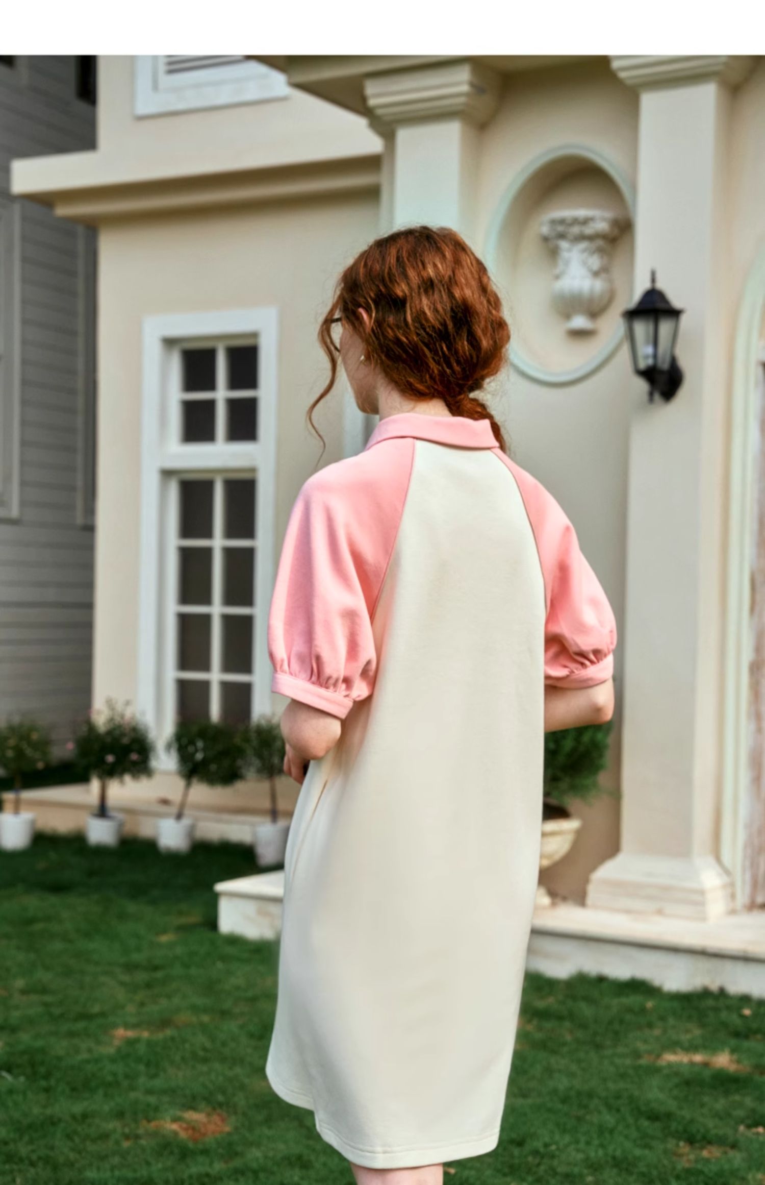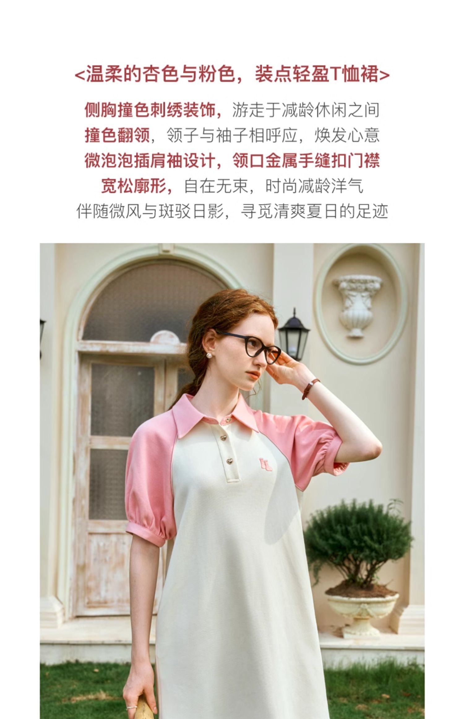 OLrain欧芮儿POLO领杏色连衣裙女夏季2024新款撞色翻领减龄A字裙