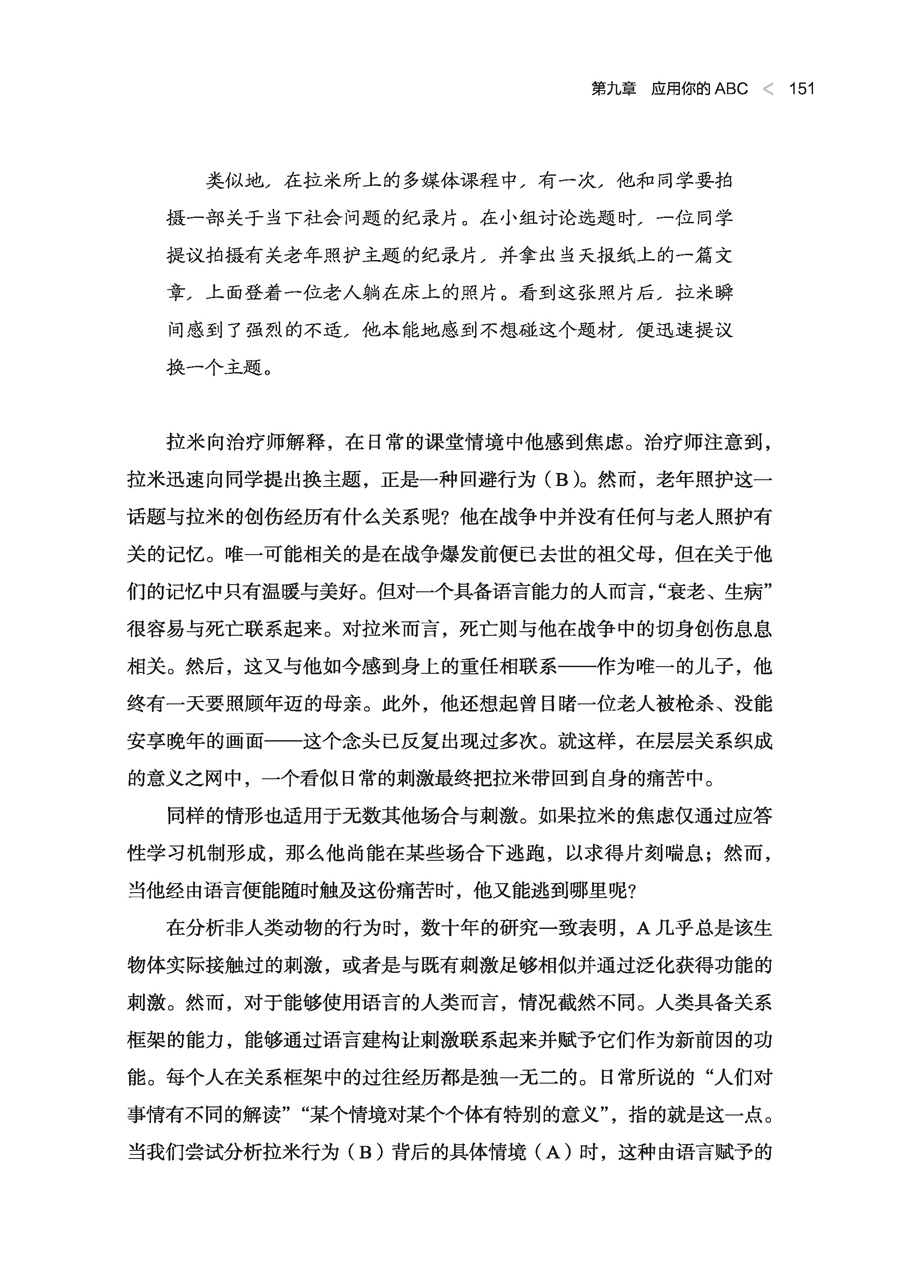正如美国顿大学心理学教授罗伯特·J. 科伦伯格(Robert J. Kohlenberg)所说,这些基础知识散见于各类教科书、哲学与理论专著以及大量实验文献之中,不易系统获取;而拉姆内勒与特内克成功地将之清晰、全面且贴近临床的提炼,将看似深奥的原理用实例娓娓道来。