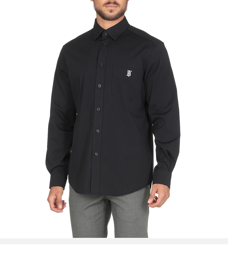 【一】BURBERRY 巴宝莉 男士TB专属标识装饰图案刺绣功能性棉质衬衫 蓝色 8043062 A1222