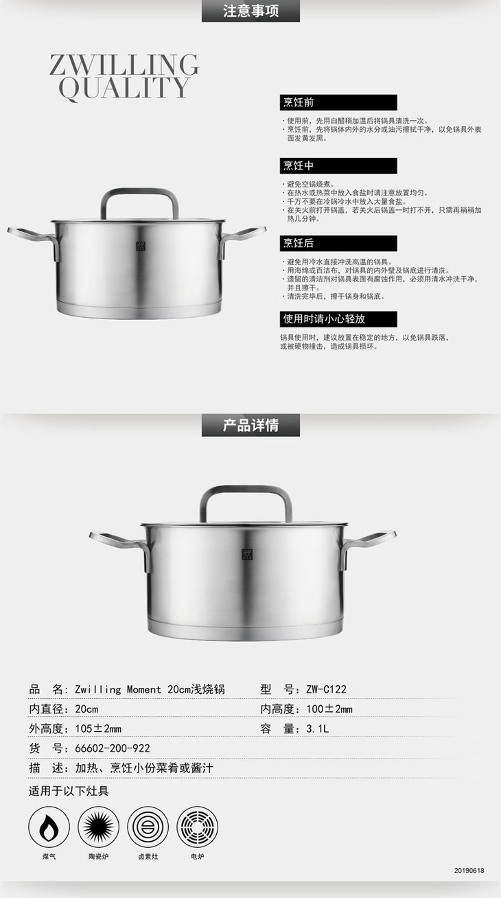 双立人 Zwilling Moment 浅烧锅 20cm ZW-C122