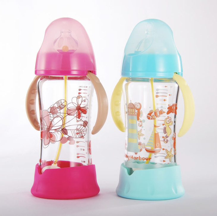 蜜儿港宽口径自动带柄防爆玻璃奶瓶250ML男孩版\MA060#(复古风)