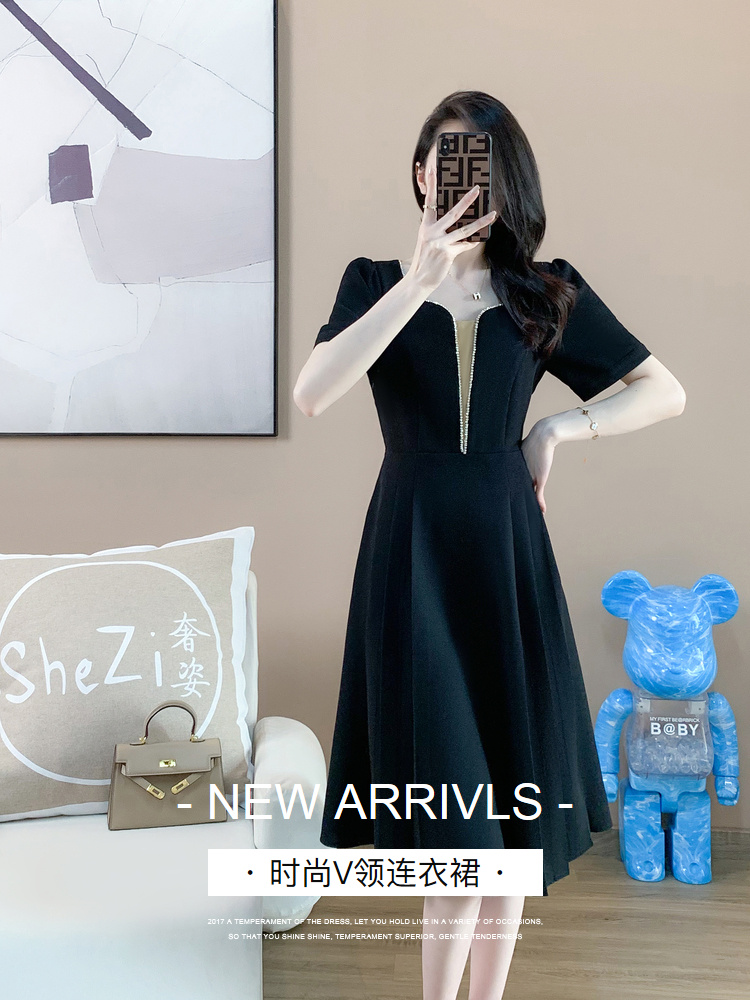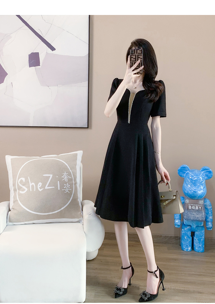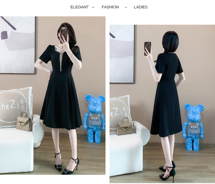 奢姿2025年夏季新款大码女装时尚简约连衣裙胖妹妹气质方领裙子9932852757