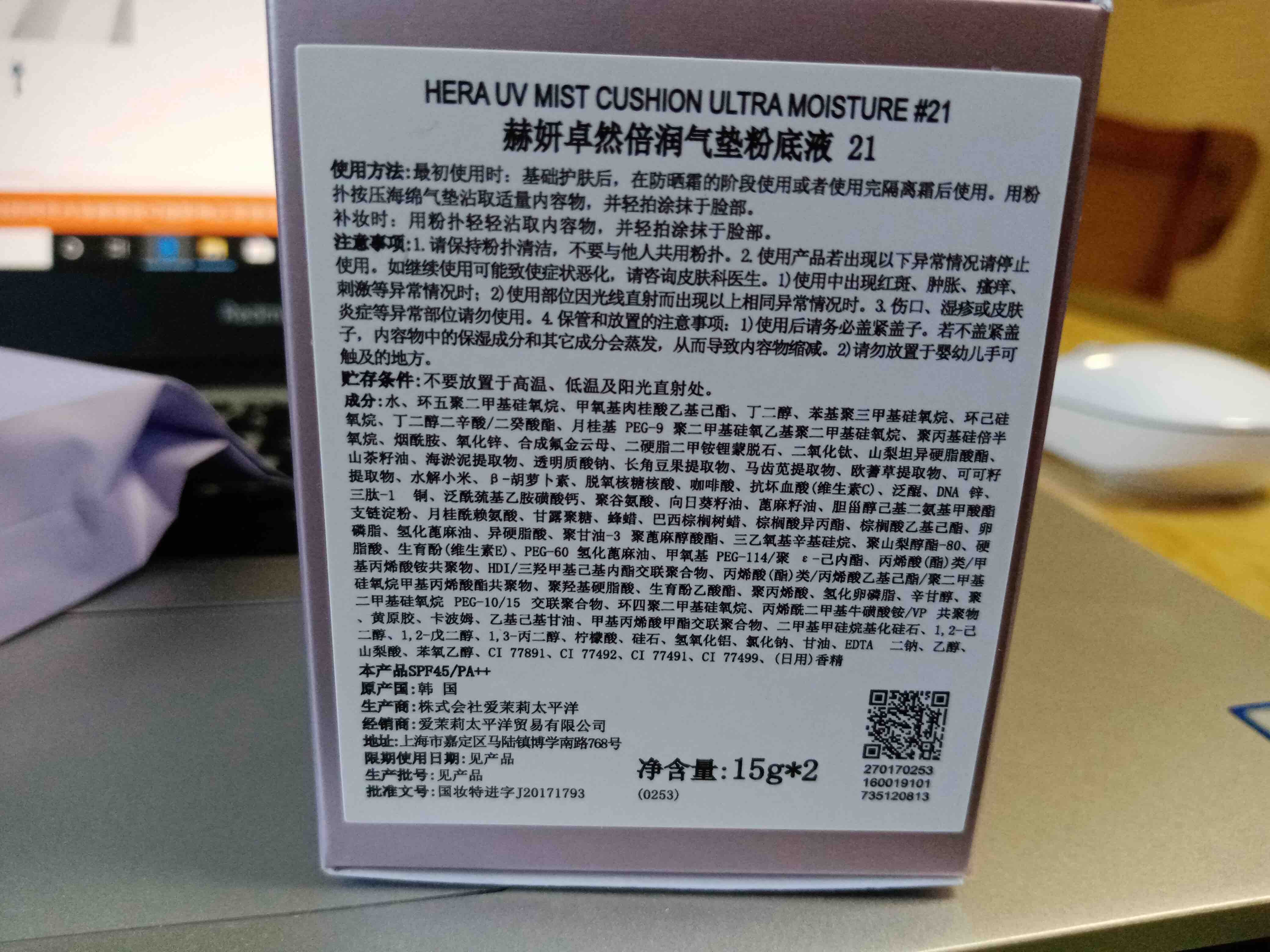 韩国Hera/赫妍卓然倍润气垫粉底液黑珍珠bb霜