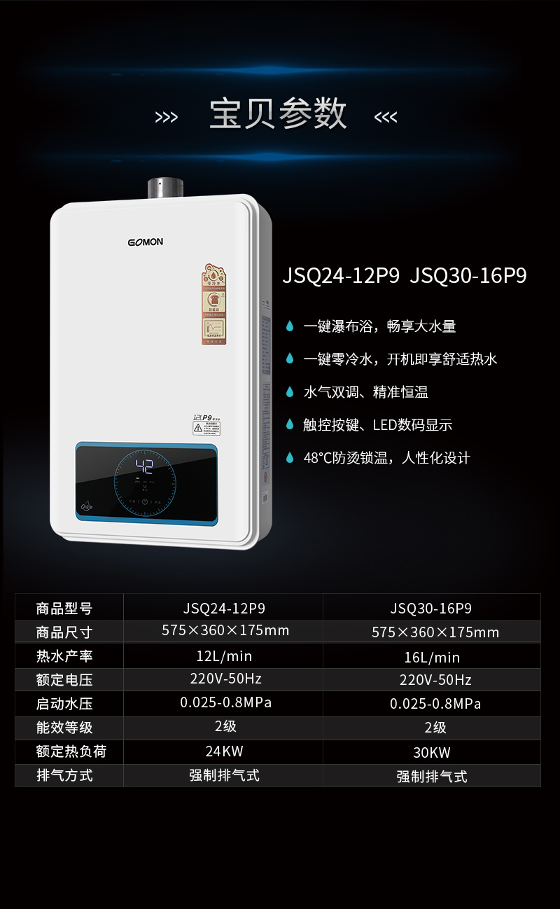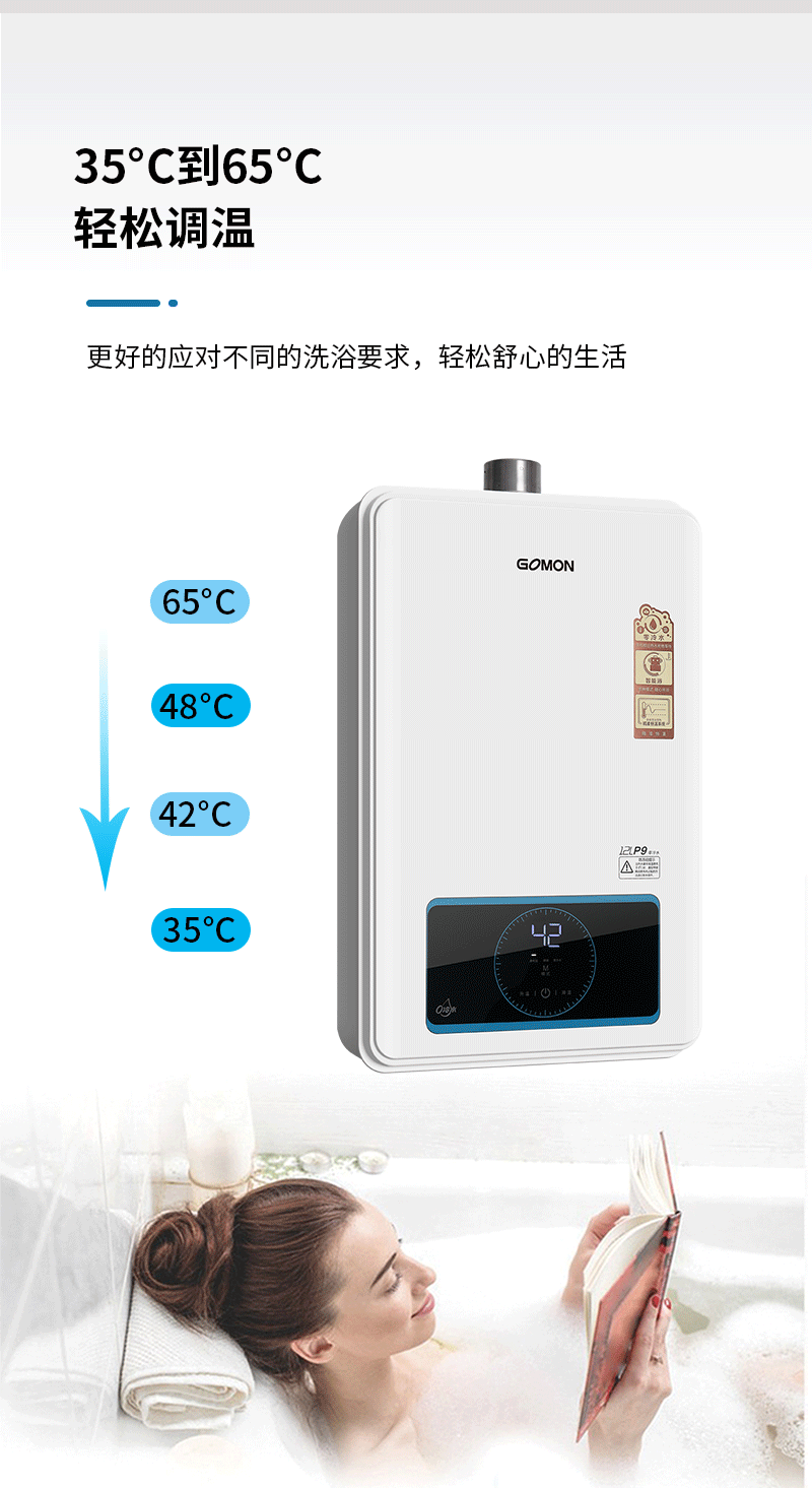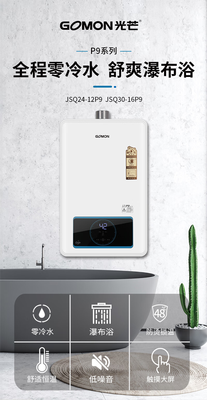 光芒(GOMON)P9零冷水系列燃气热水器 全程零冷水 舒爽瀑布浴 16L