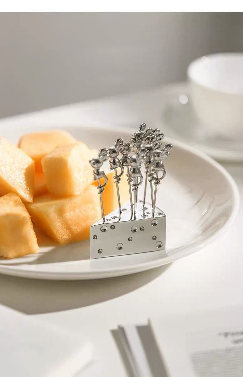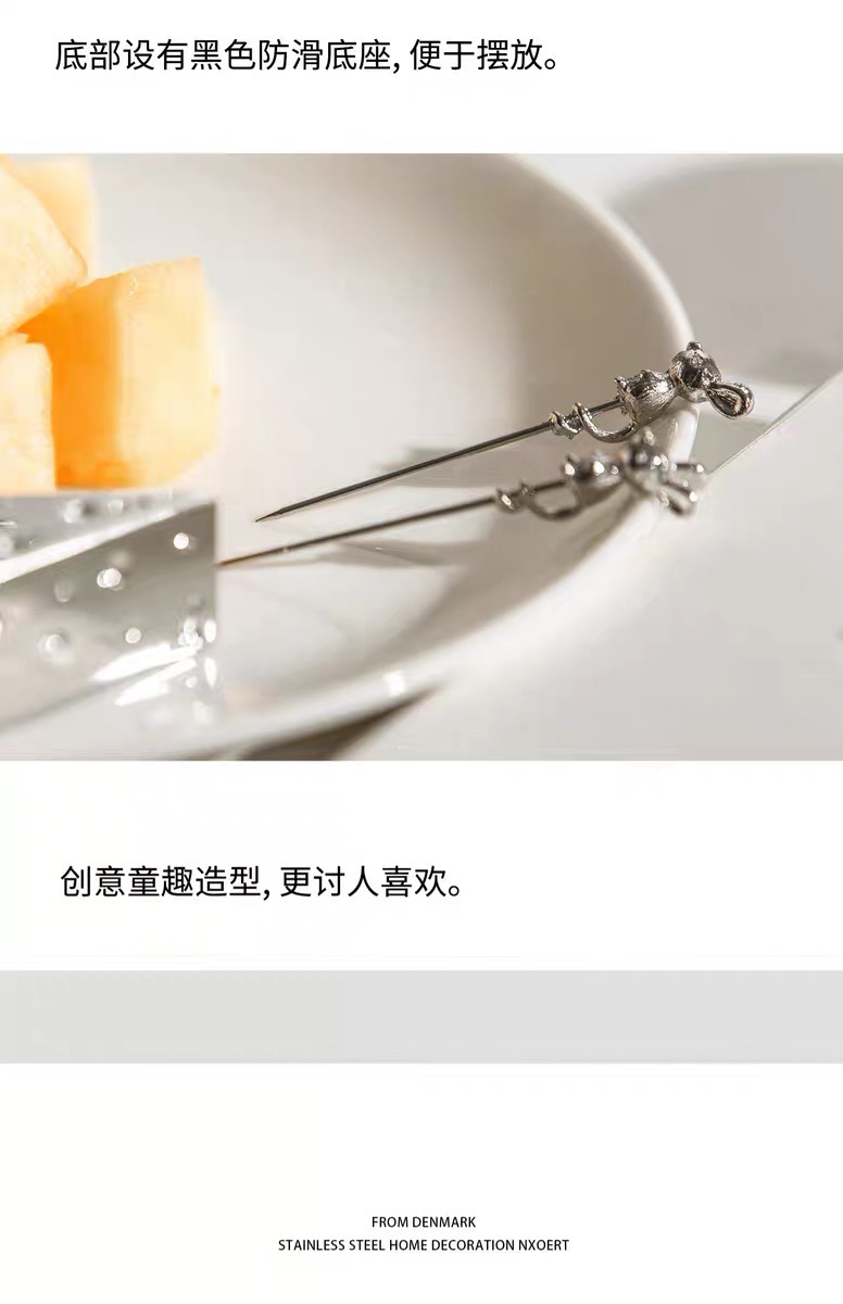 水果签家用金属ins风轻奢可爱水果叉子装饰摆件