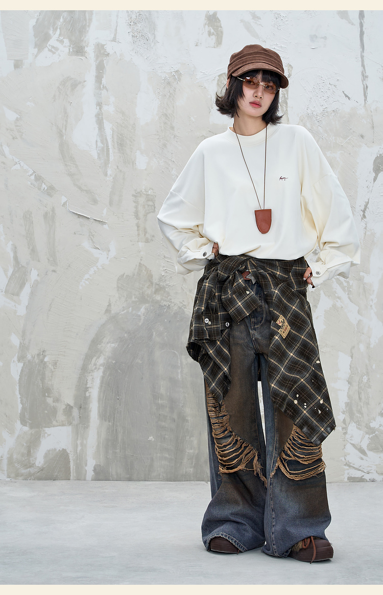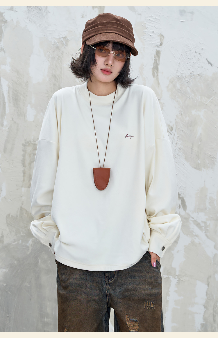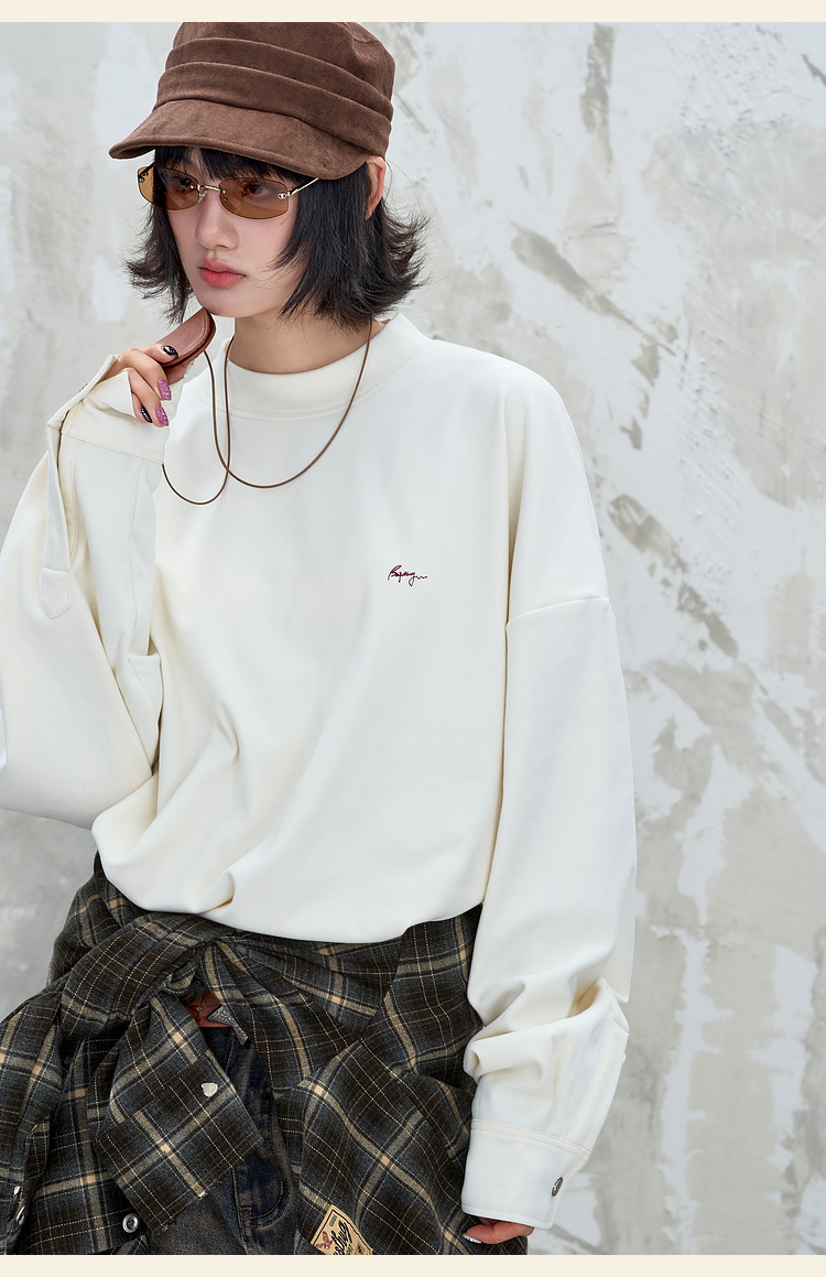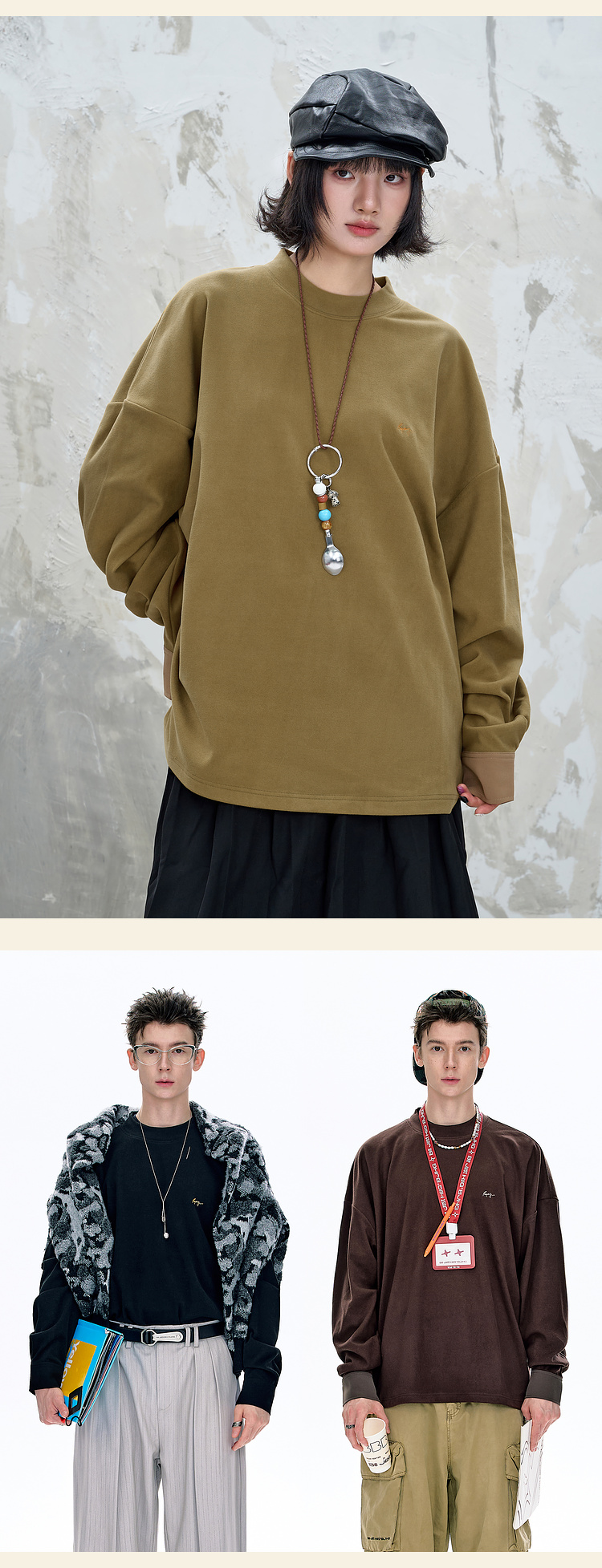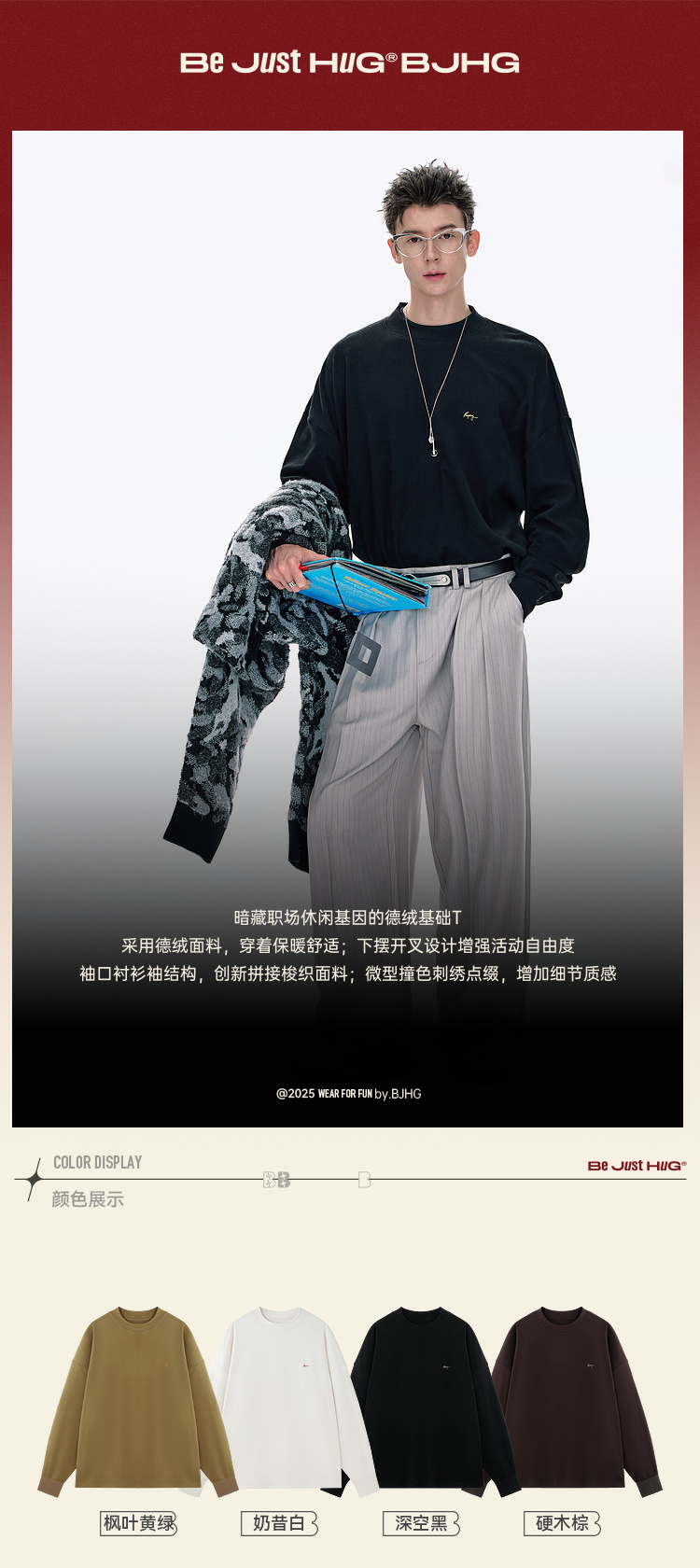 BJHG不计后果衬衫袖德绒卫衣男款秋季潮牌美式休闲简约圆领卫衣女