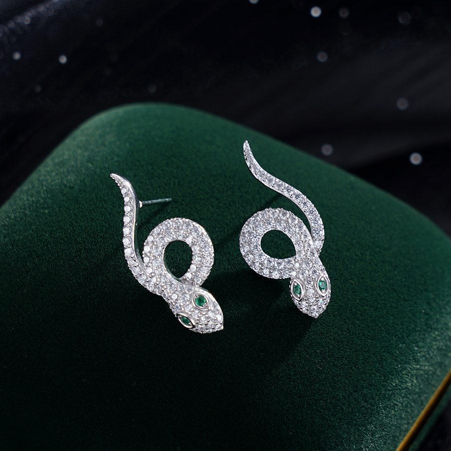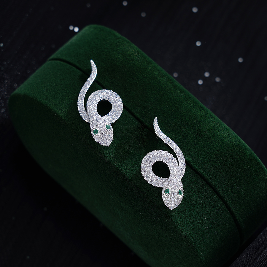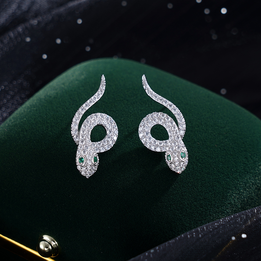 【寓意】:作品以蛇为灵感设计,通过锆石镶嵌工艺,灵动闪耀,璀璨动人,尽显蛇形蜿蜒之态,寓意守护与智慧。