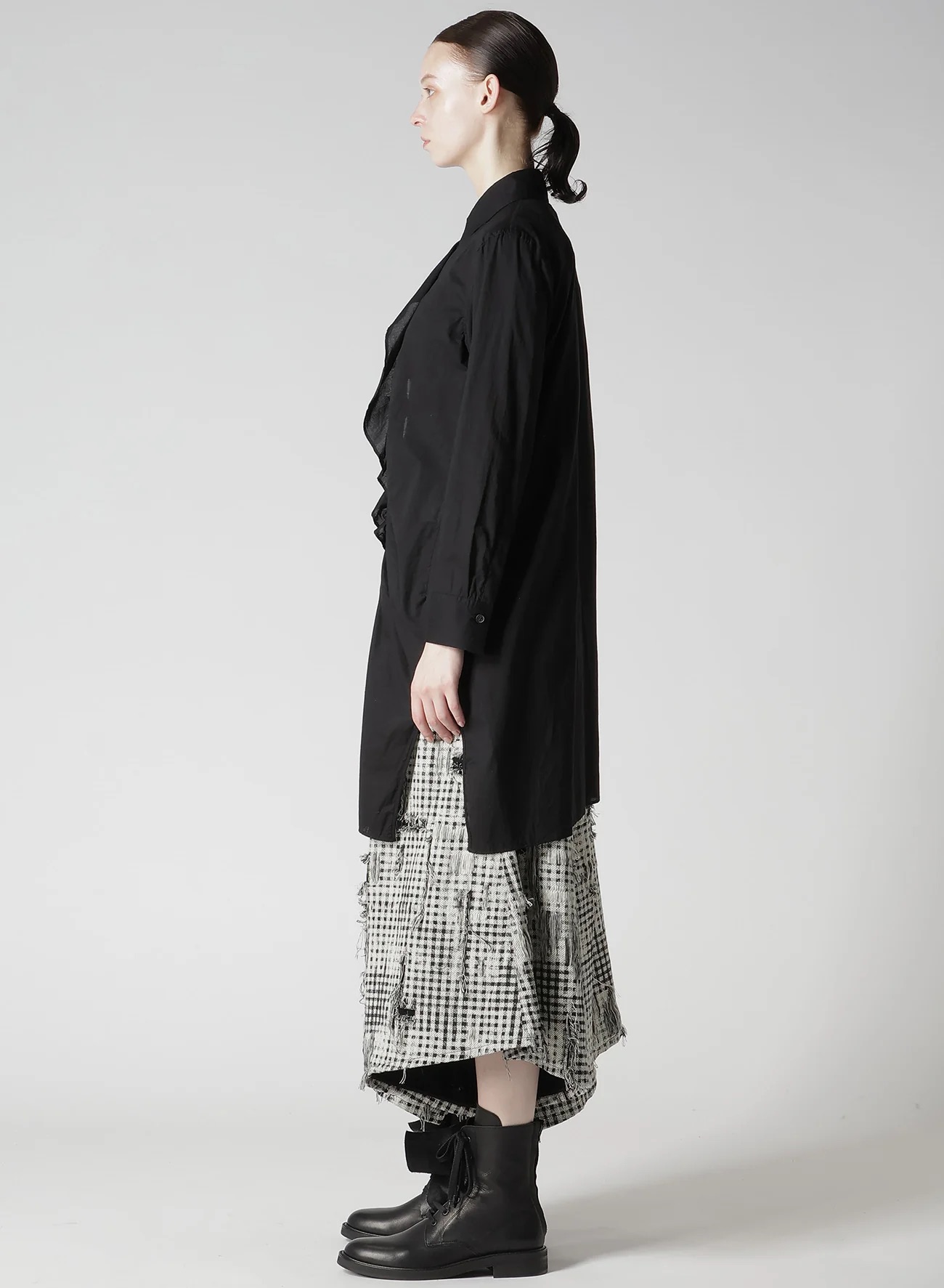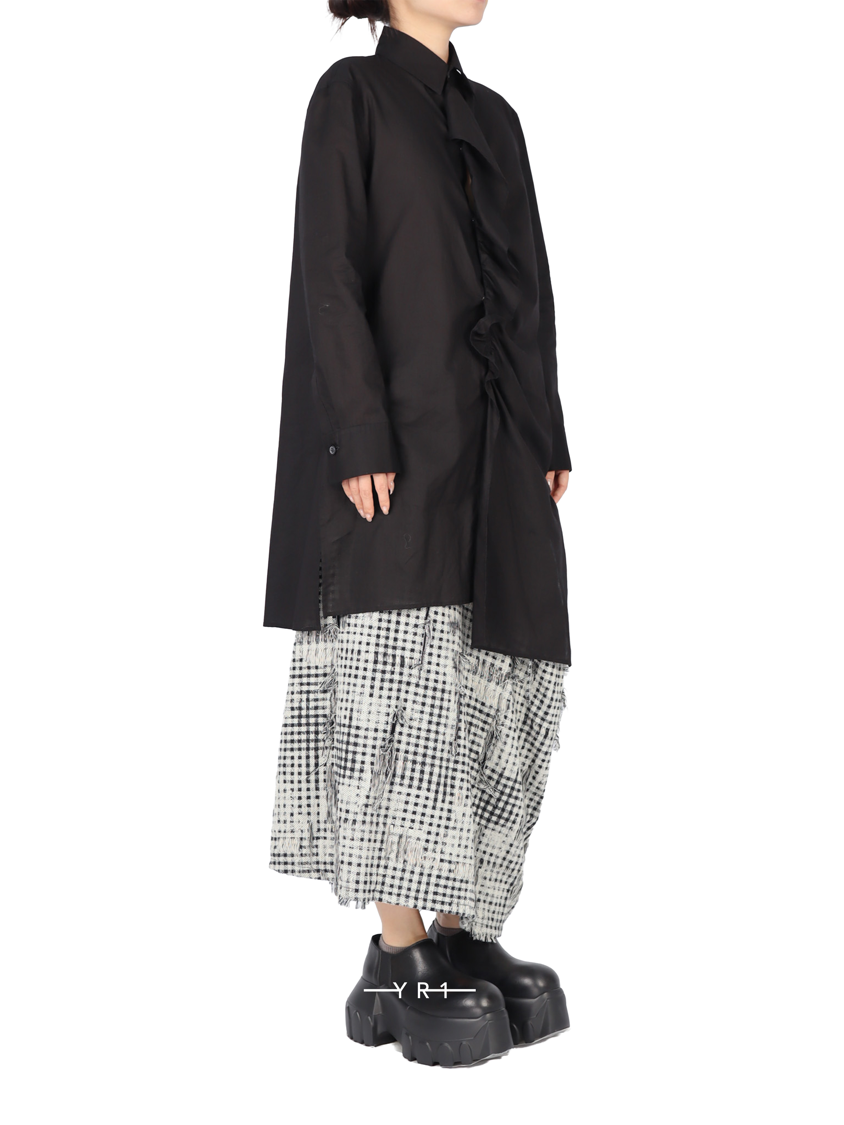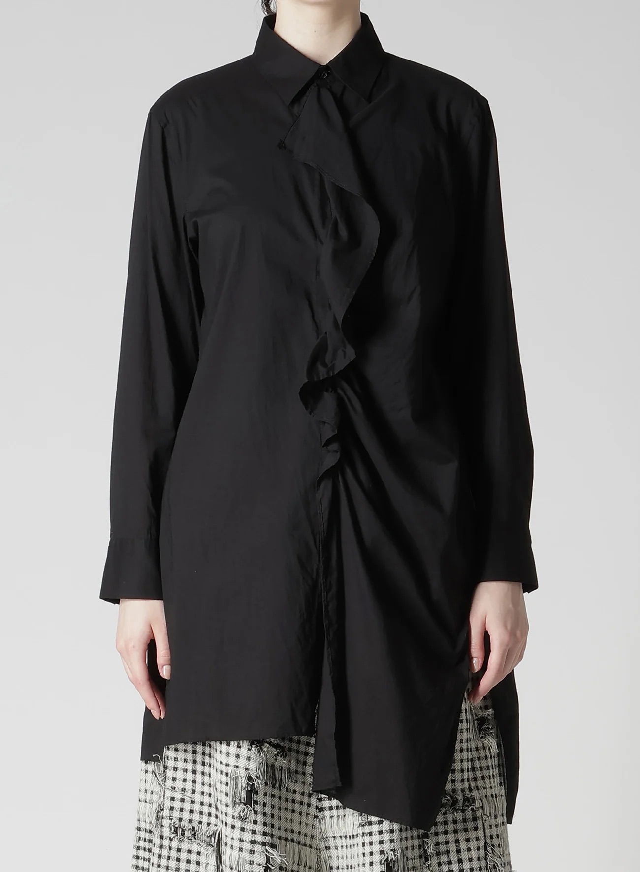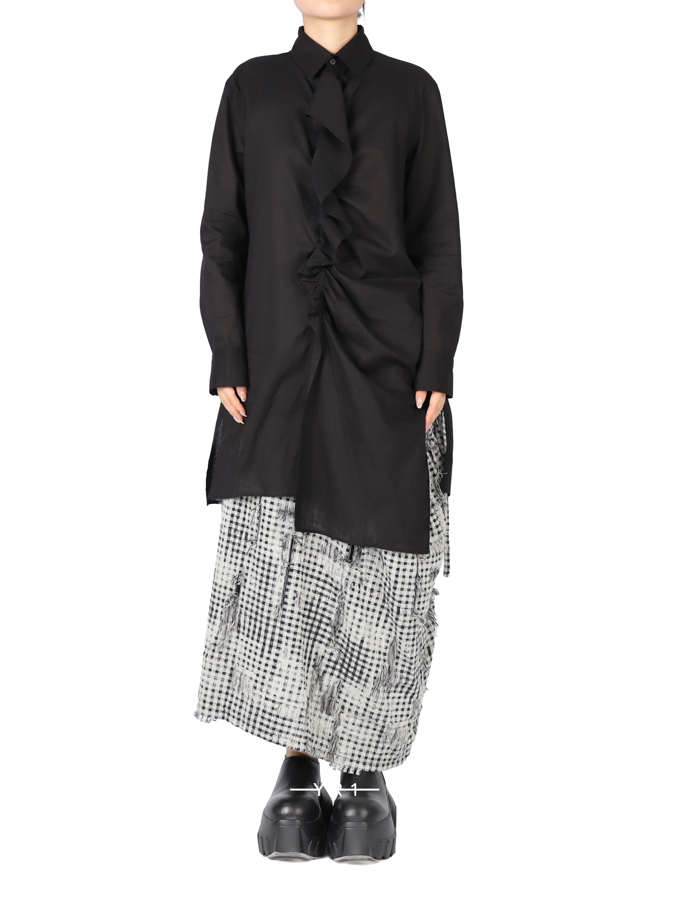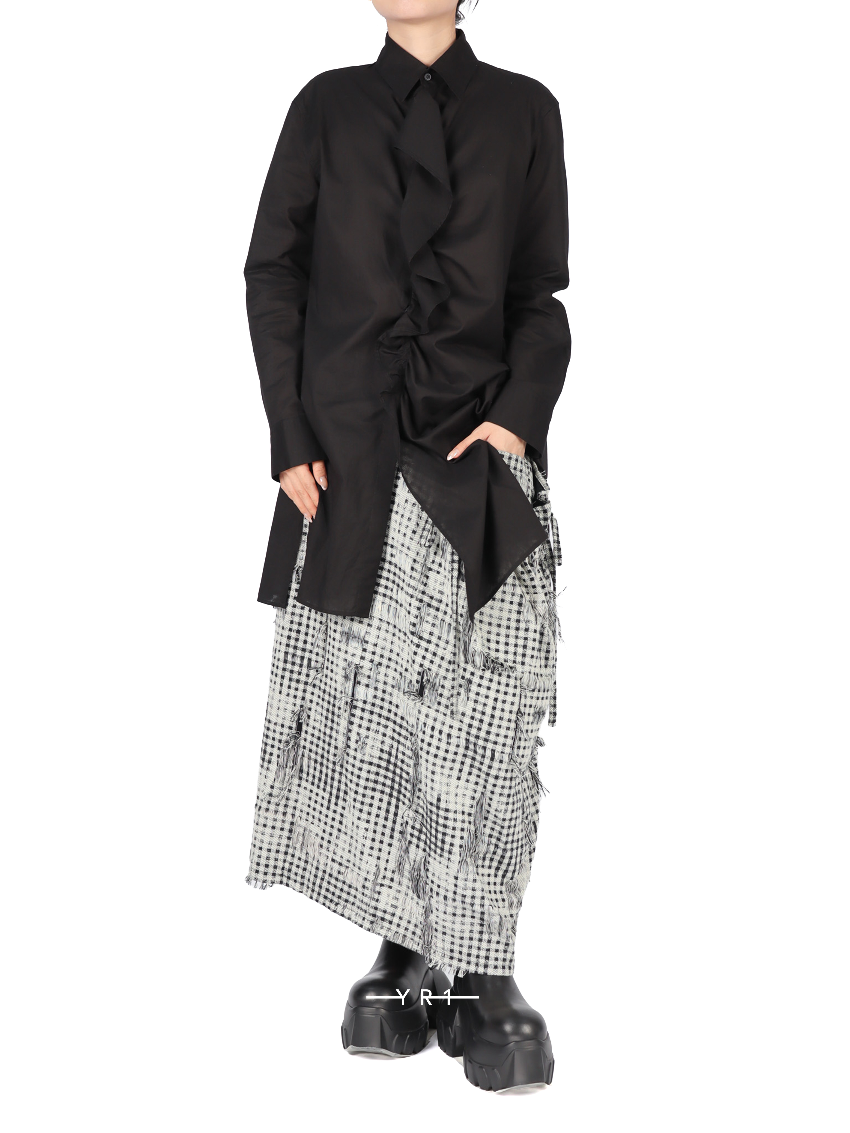 黑色荷叶边衬衫