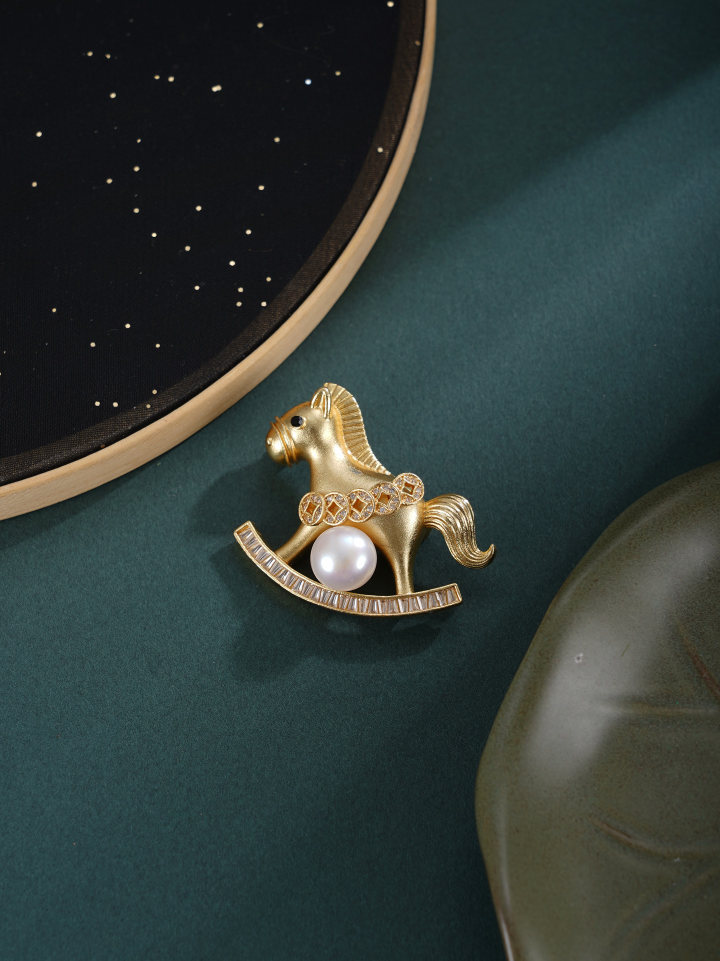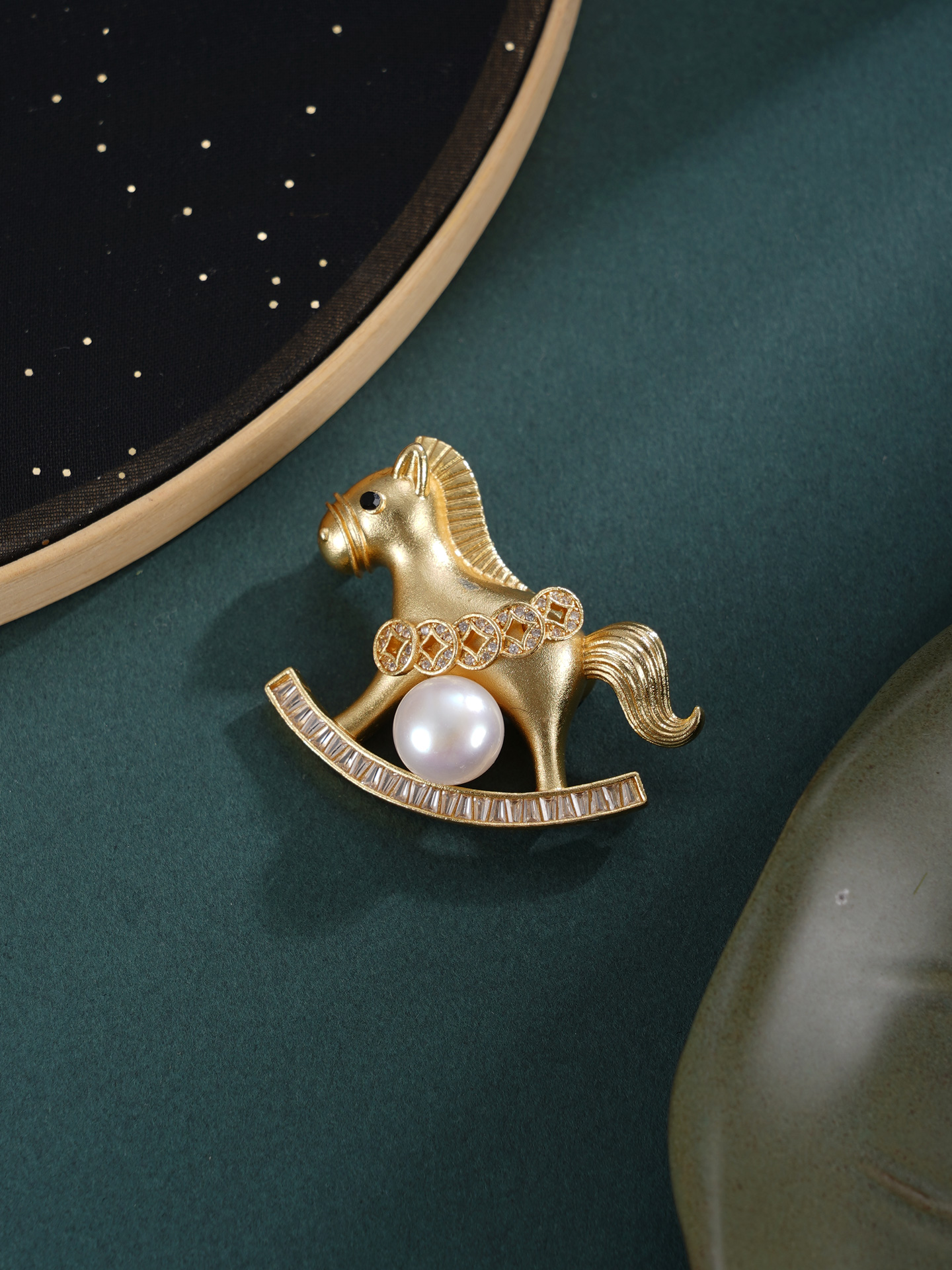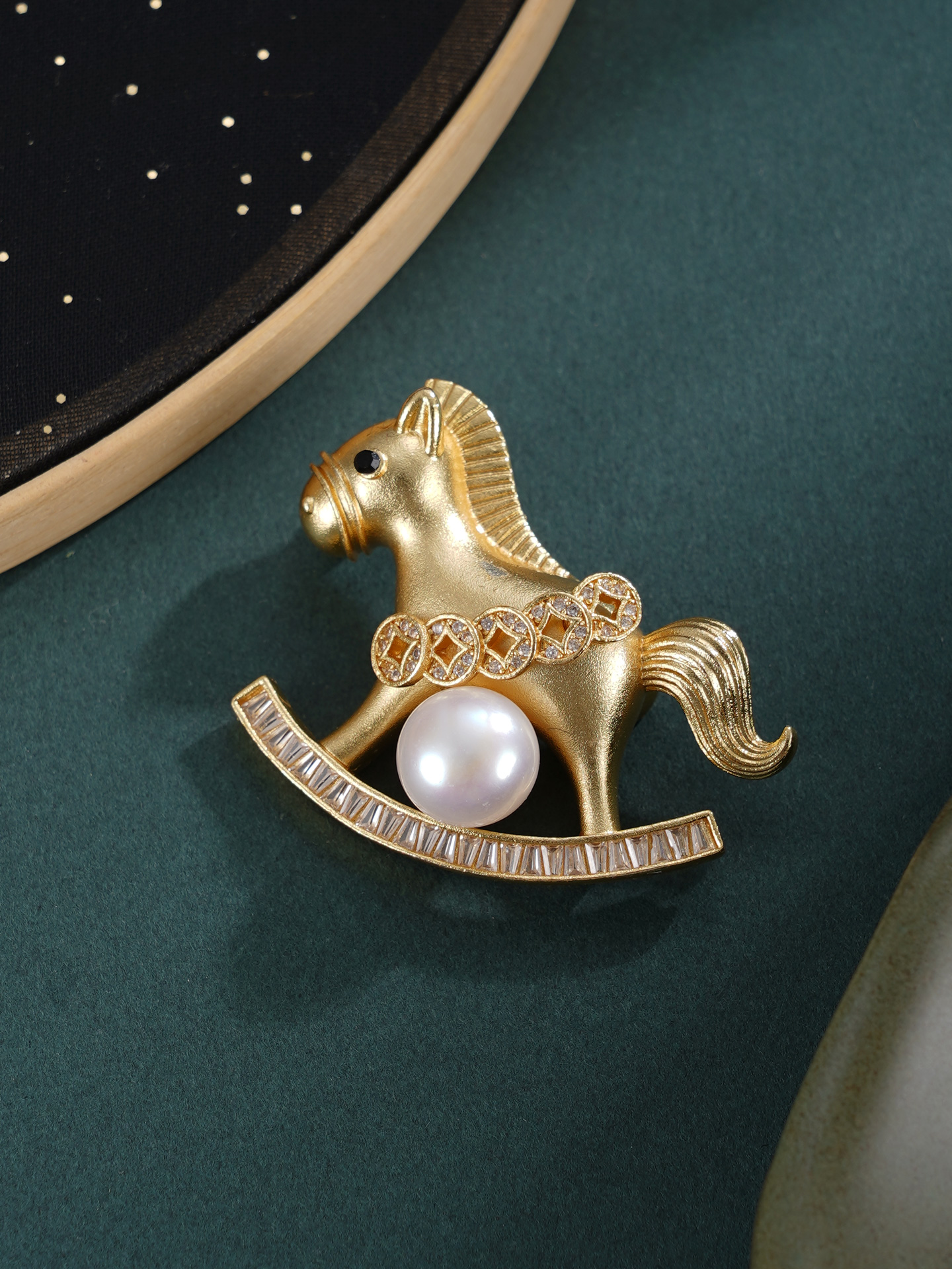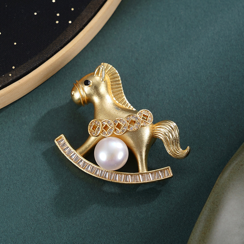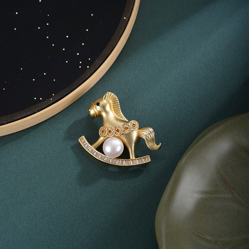 子佩集【马上添财】珍珠惜王妃胸针【XXXZ244】9mm珠镀金马五钱币2601