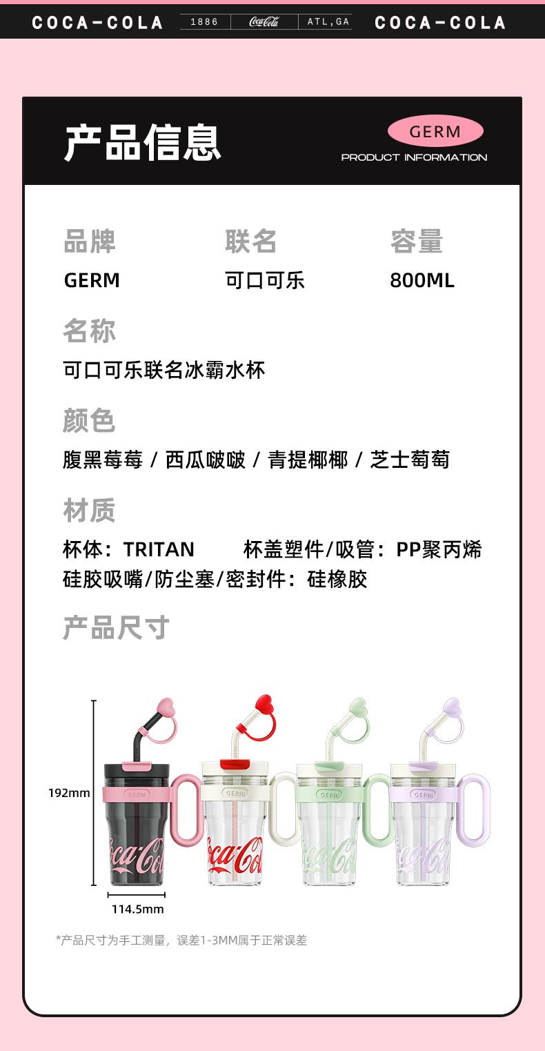 GERM可口可乐冰霸大容量办公水杯800ml 凉杯 AY