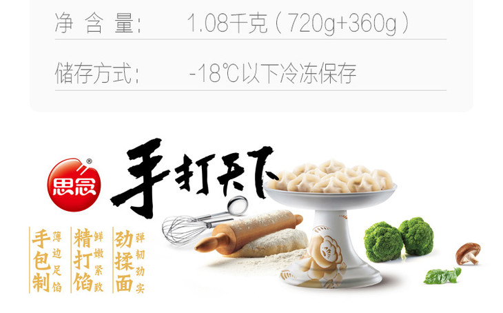 思念手打天下 猪肉韭菜水饺1080g加量装