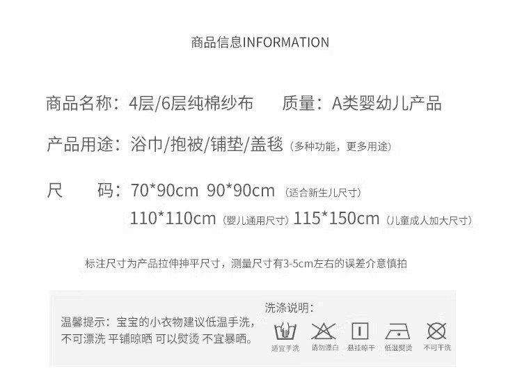 【全棉六层纱布浴巾】初生儿纯棉儿童洗澡襁褓巾 新生儿婴儿浴巾