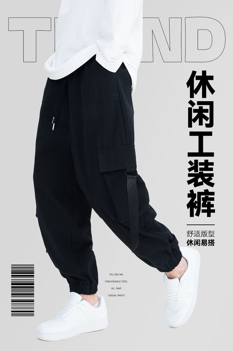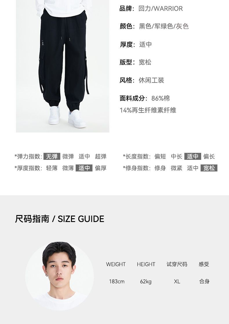 回力裤子男2025春季新款潮流束脚休闲裤多口袋机能工装裤宽松潮男