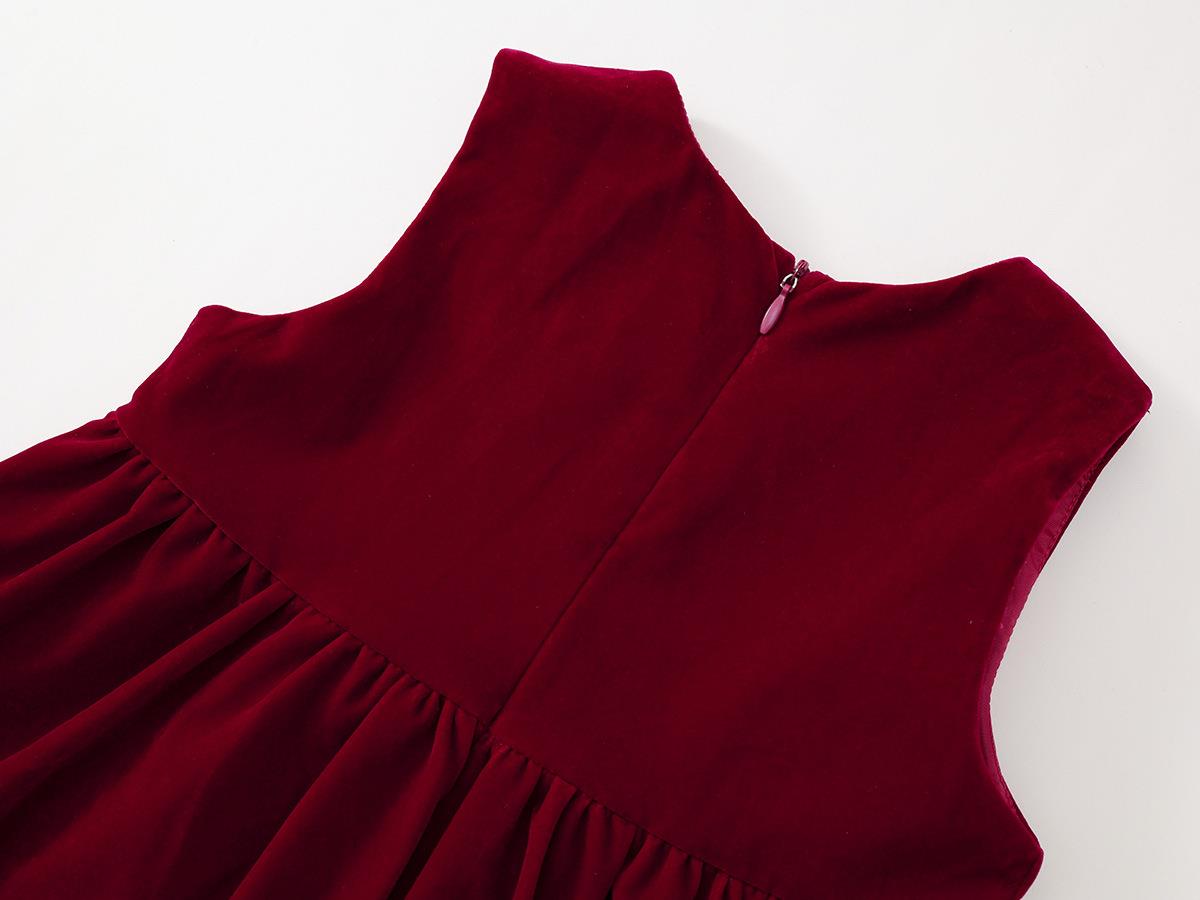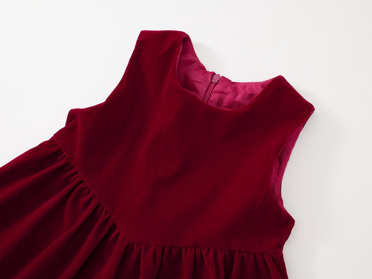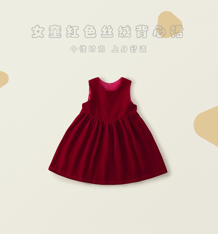 Hania2026年新年 女童新年丝绒无袖连衣裙秋冬新款宝宝韩版红色A字公主裙90-140★