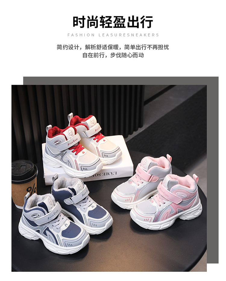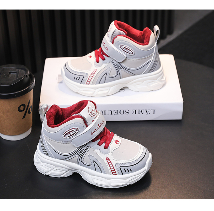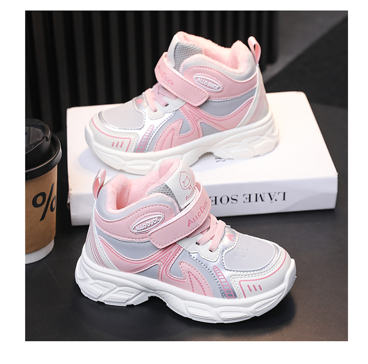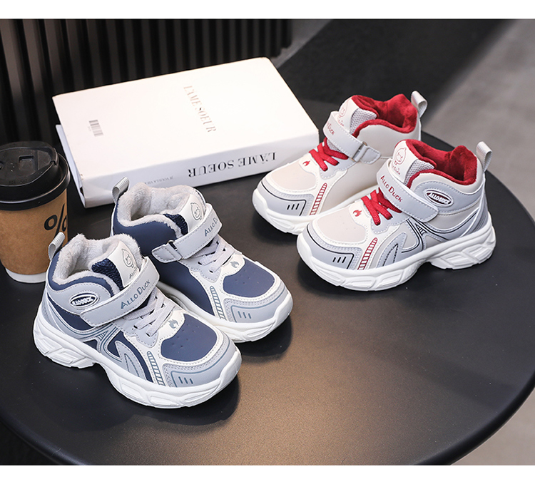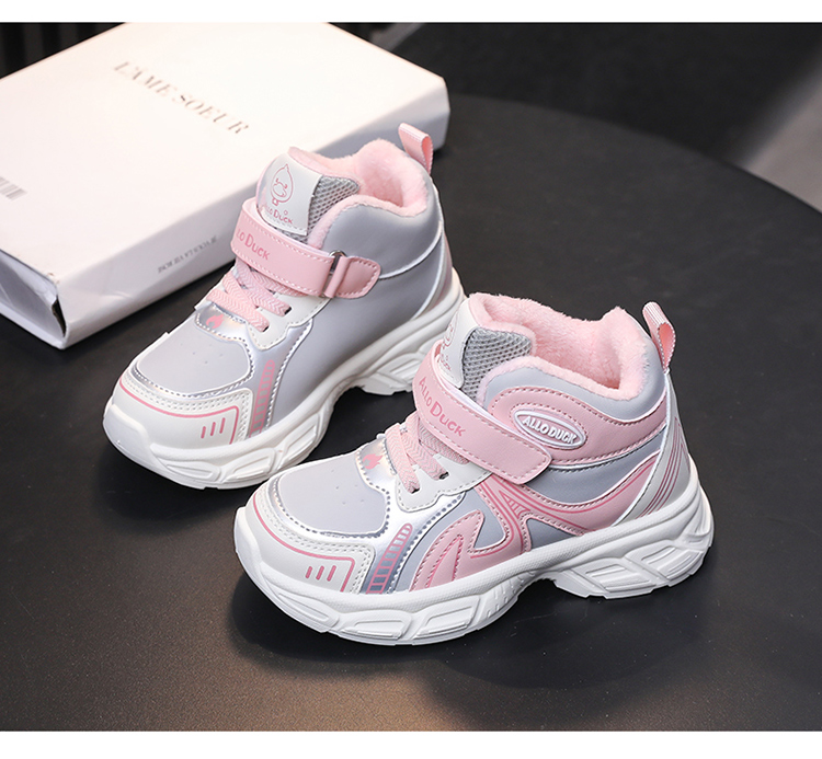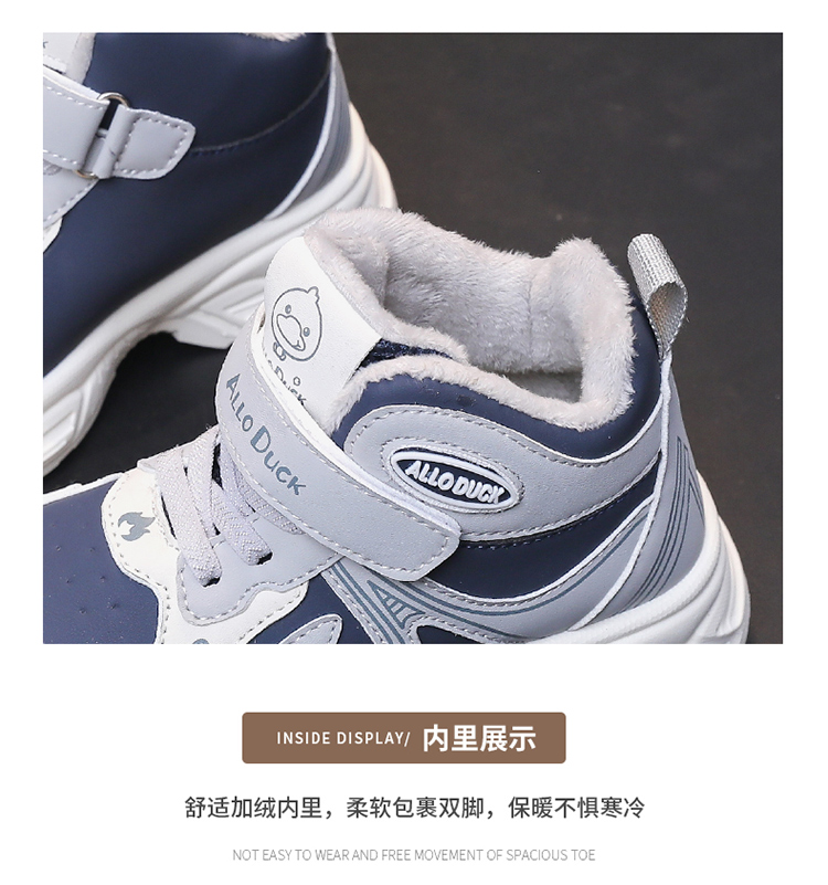小黄鸭新款运动鞋儿童冬季皮面防水高帮男女童加绒保暖小中童跑步鞋潮21-38