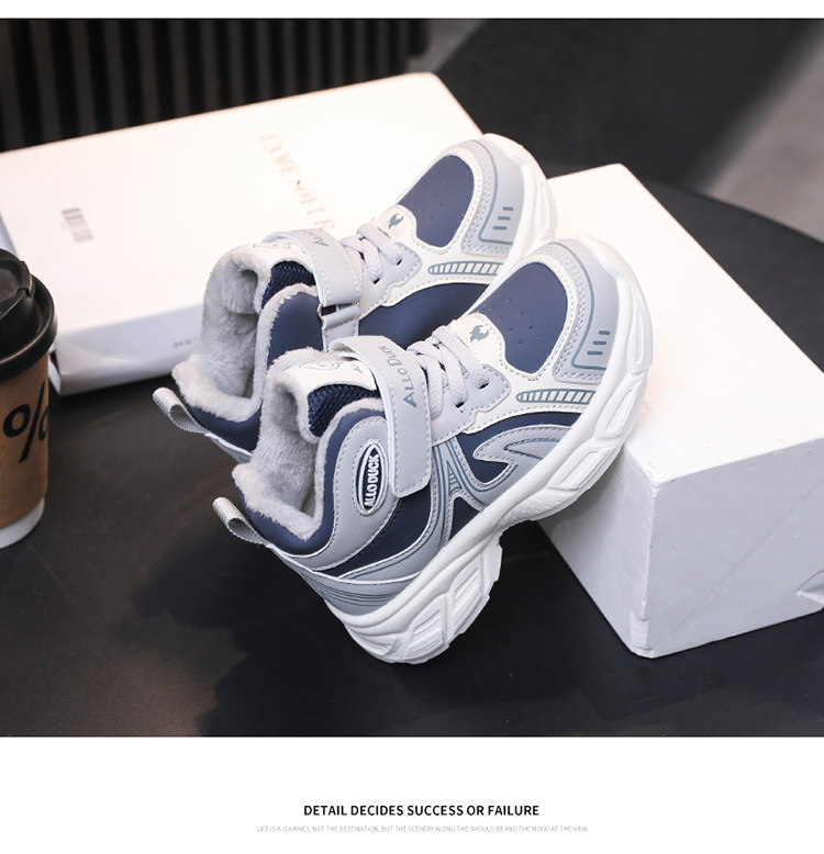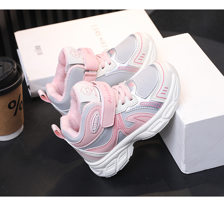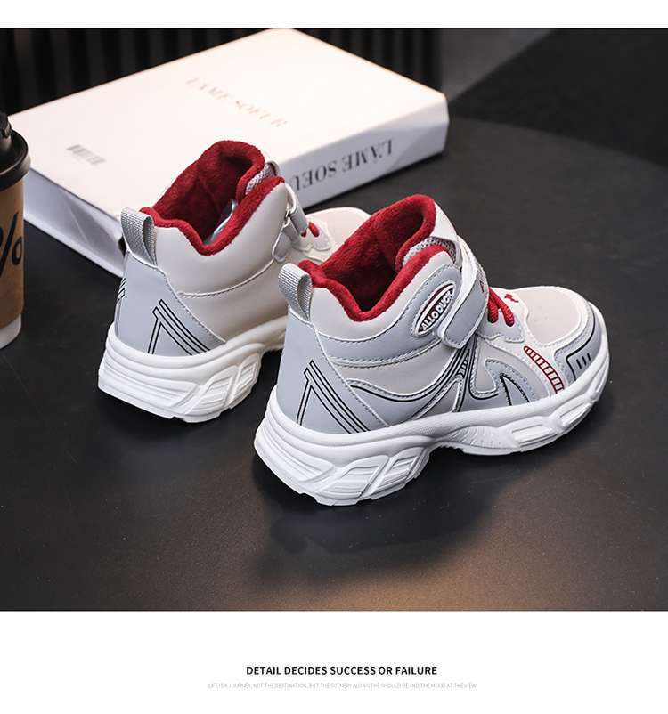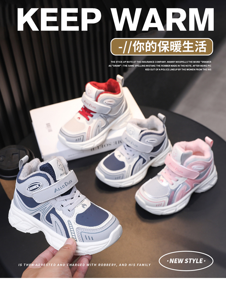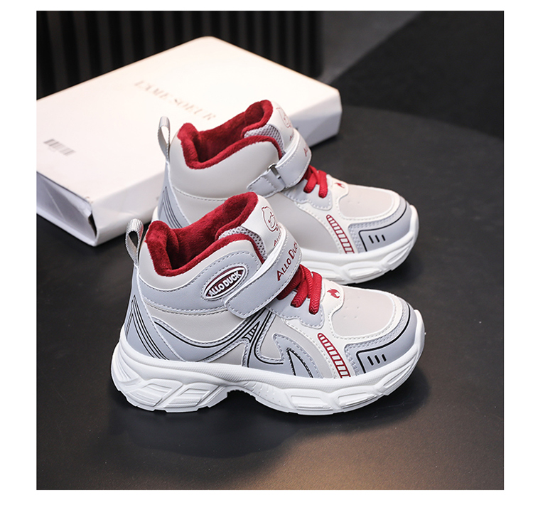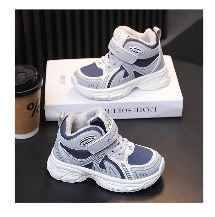 小黄鸭新款运动鞋儿童冬季皮面防水高帮男女童加绒保暖小中童跑步鞋潮21-38