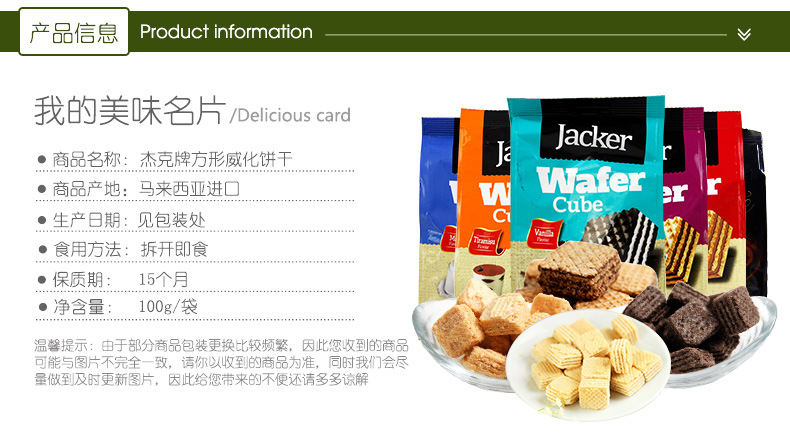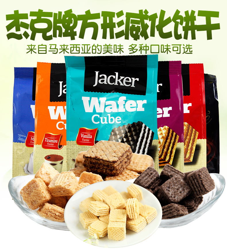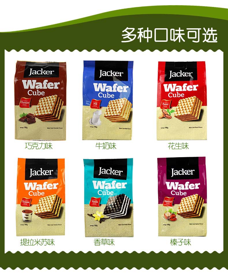 马来西亚杰克方形威化饼干100g牛奶味/榛子味/香草味/提拉米苏味 小身材大味道 058507/058508/058509/058510
