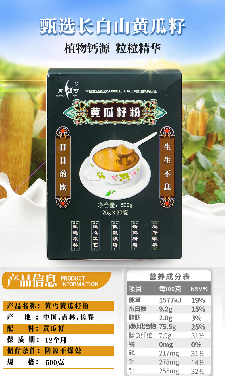 植物钙源 粒粒精华 黄瓜籽粉 500g/盒