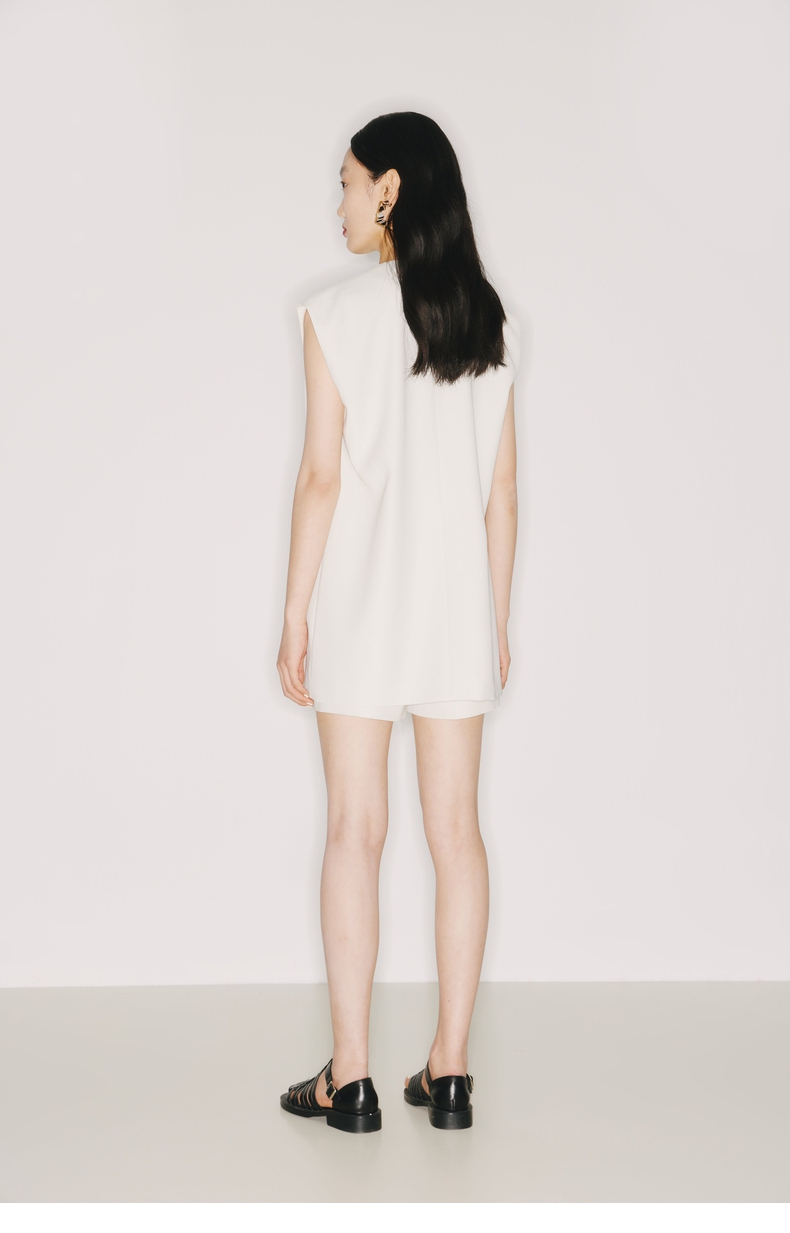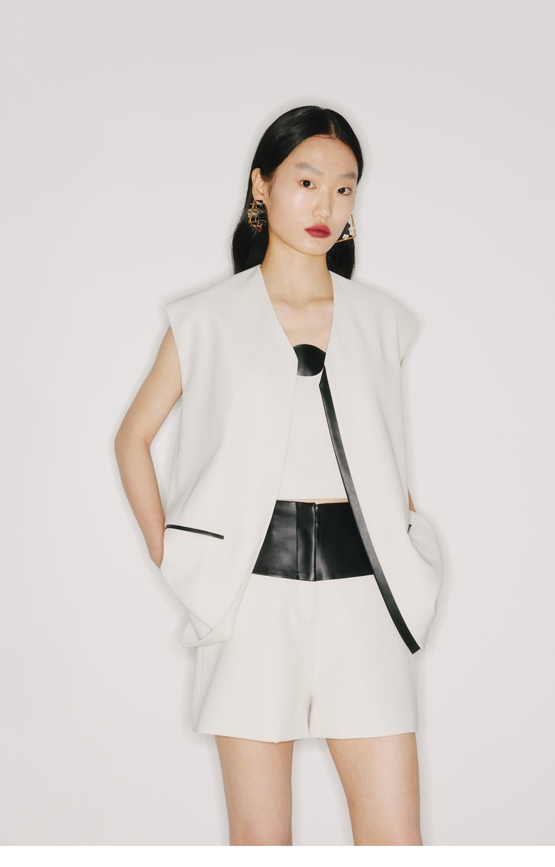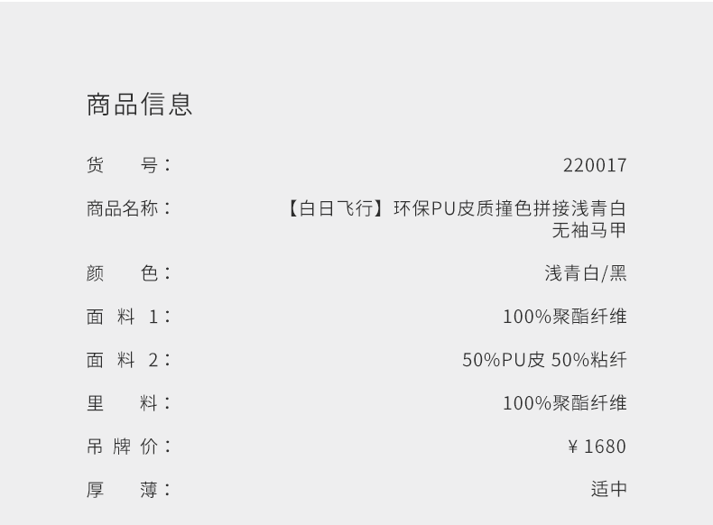 【白日飞行】环保PU皮质撞色拼接浅青白无袖马甲/220017