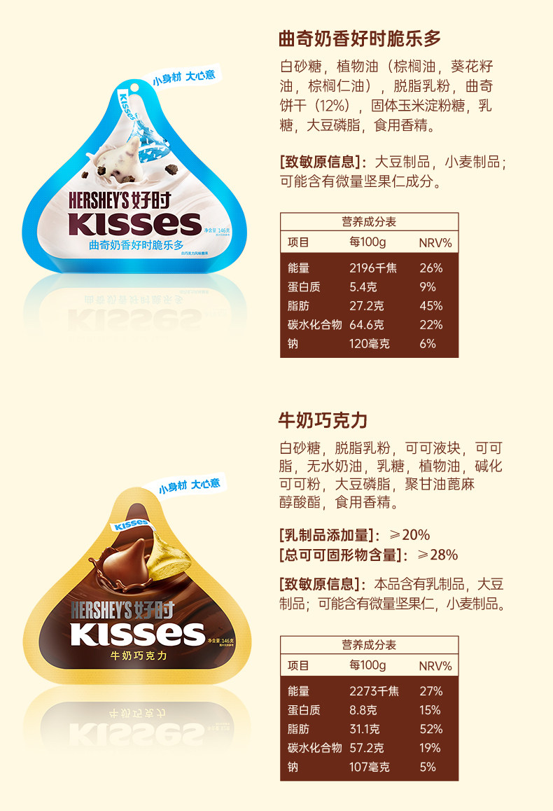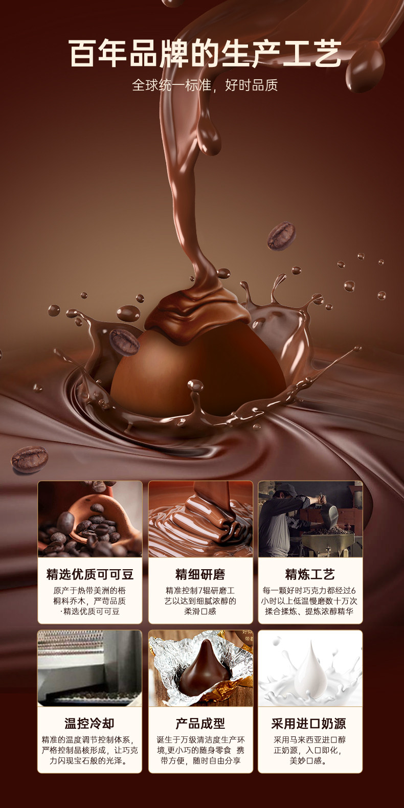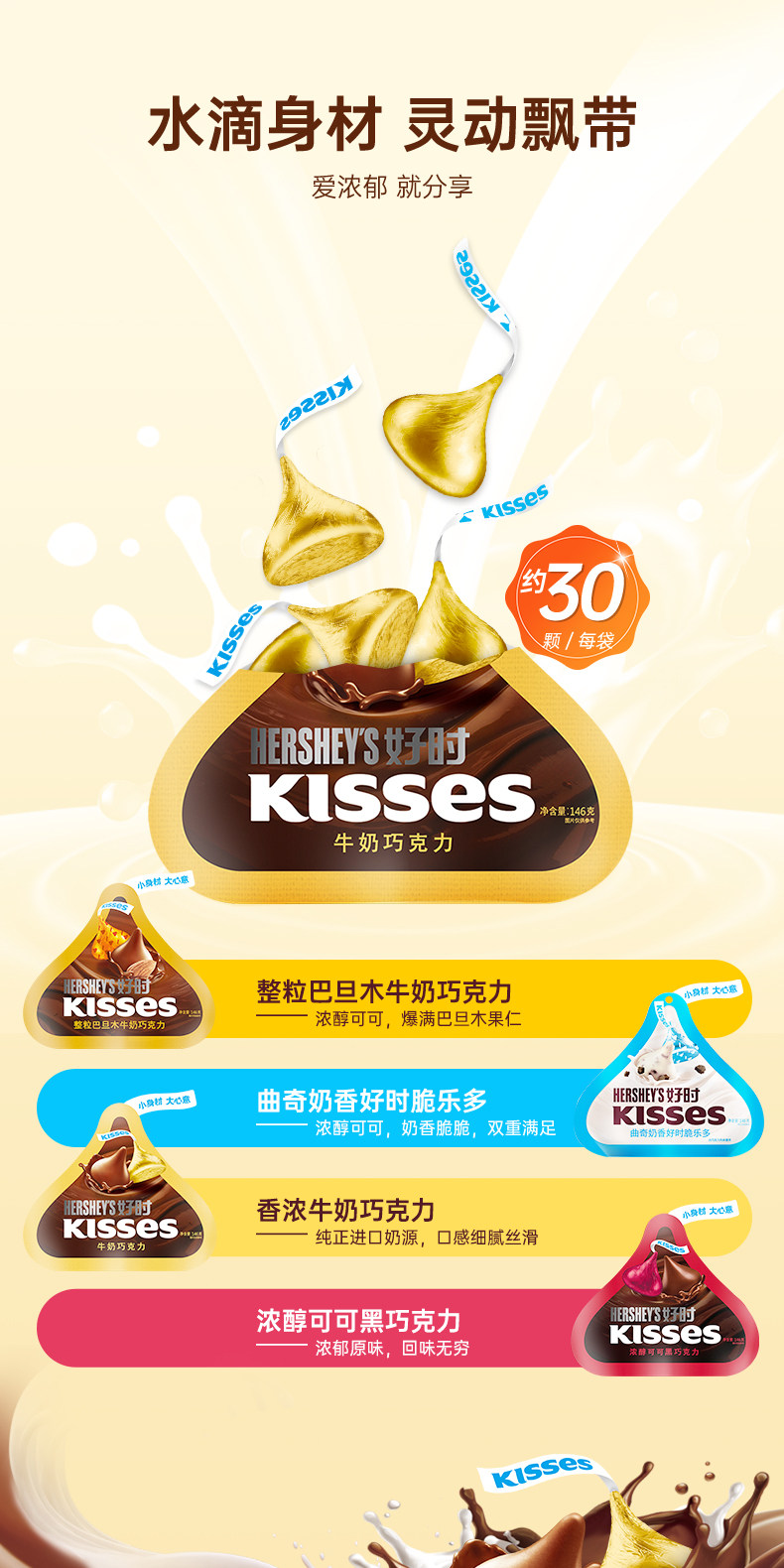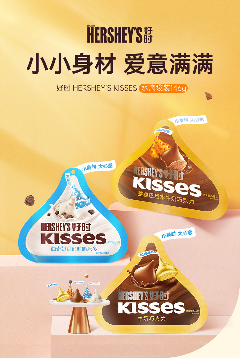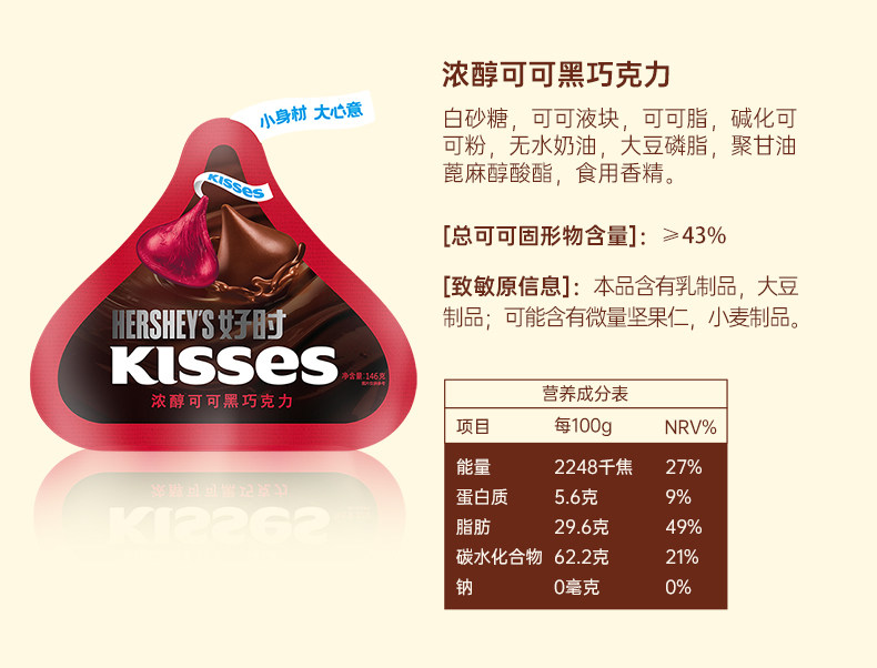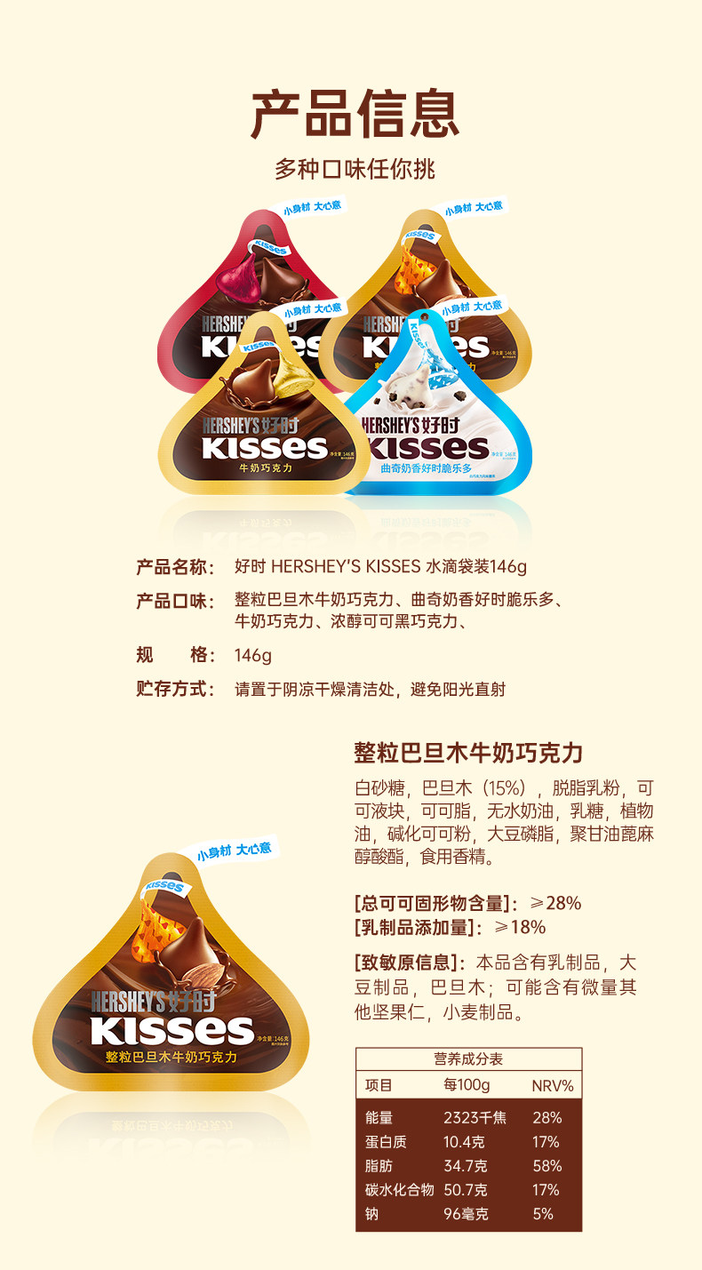 好时之吻系列巧克力146g(牛奶味/巴旦木牛奶/浓醇可可黑巧/曲奇奶香白巧克力)040762/040786/040787/040788 百年好时 浓醇好时