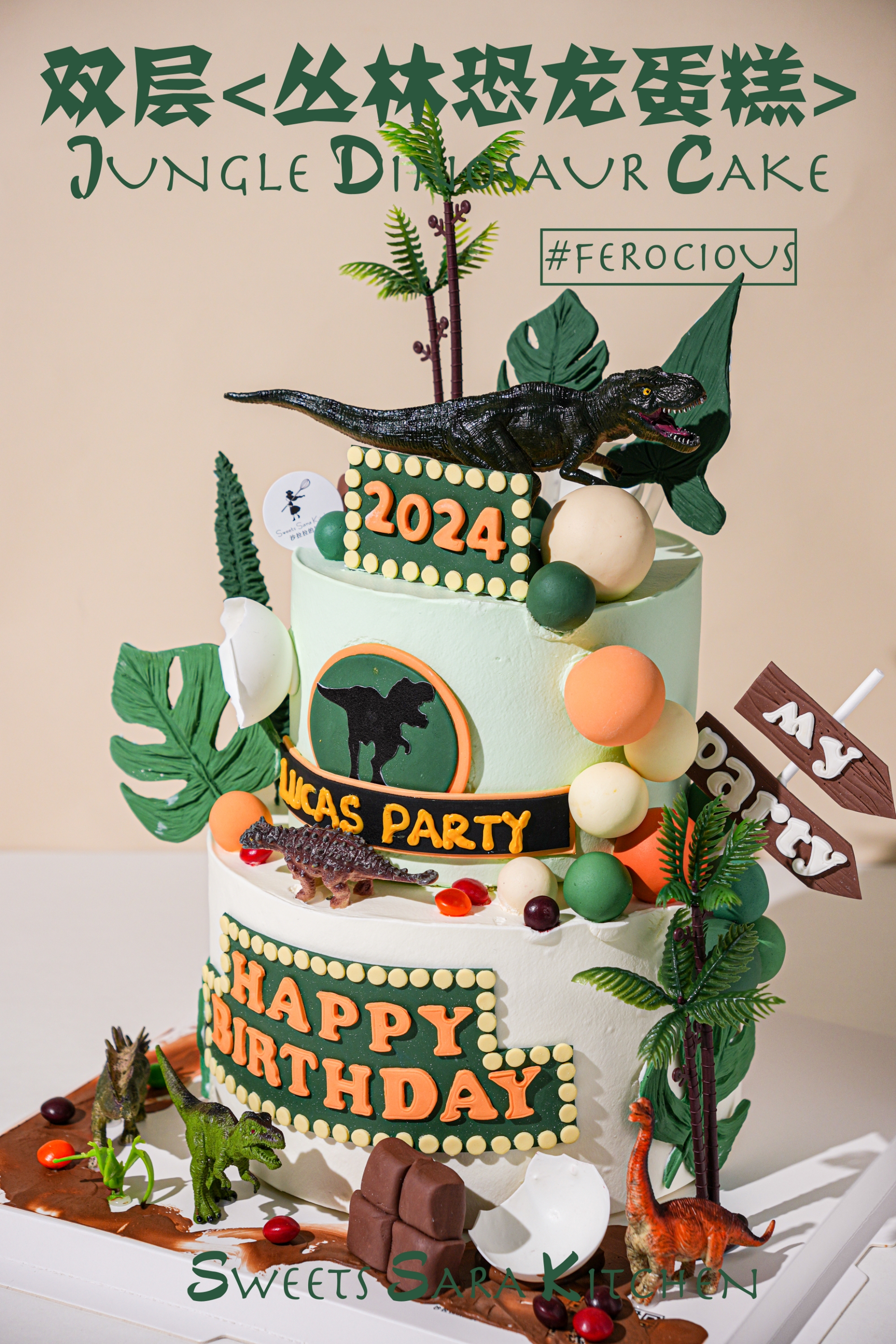 双层丛林恐龙蛋糕