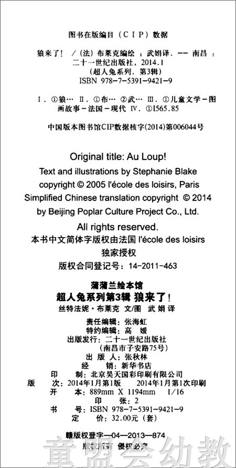 蒲蒲兰 超人兔系列(第3辑) 狼来了 丝特法妮·布莱克 3-4-5-6岁 正版