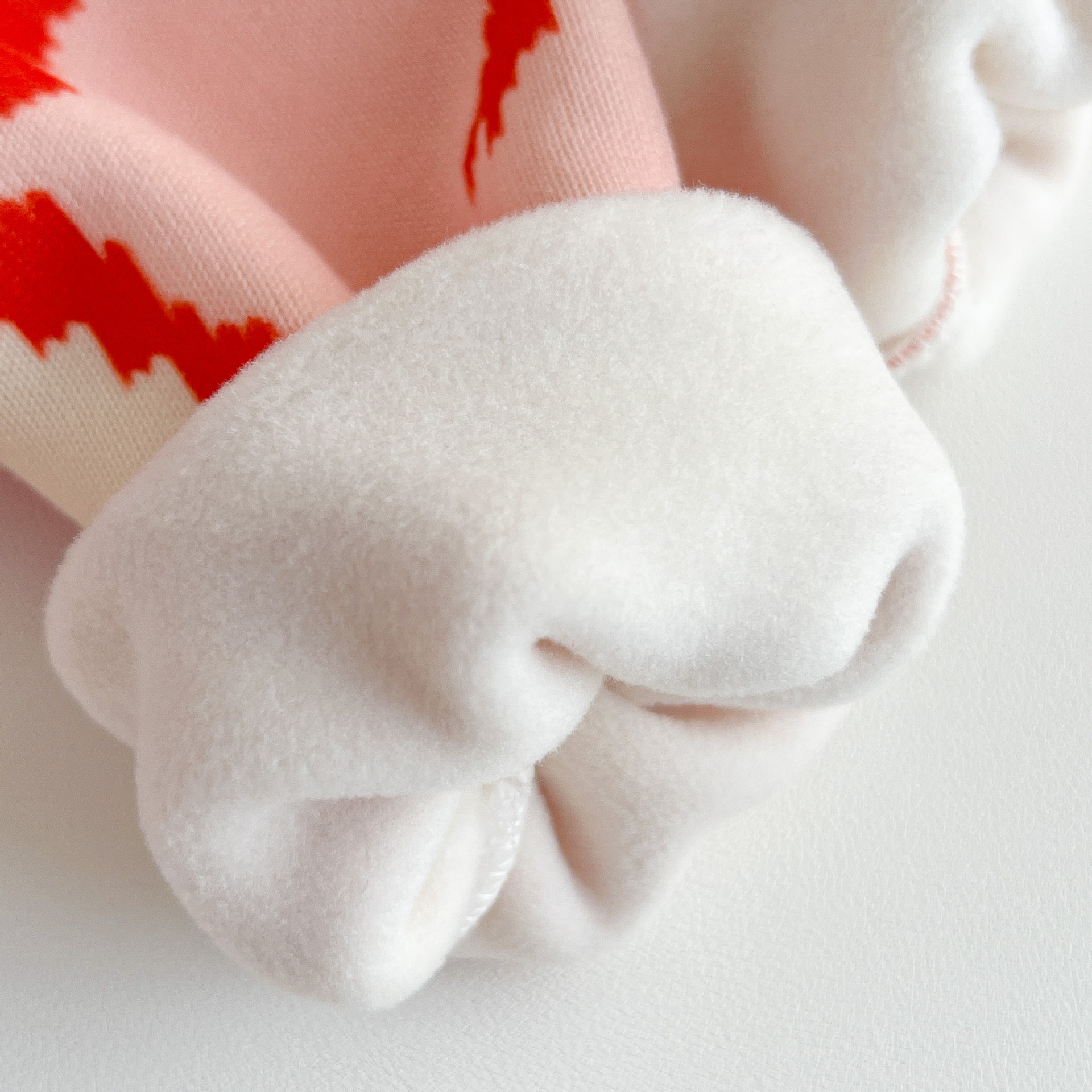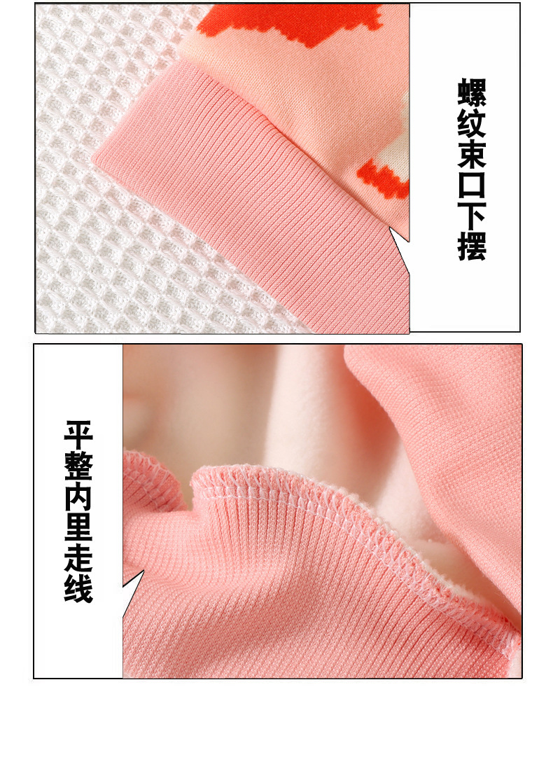 针织面料内里加绒舒适软糯保暖,配色和谐