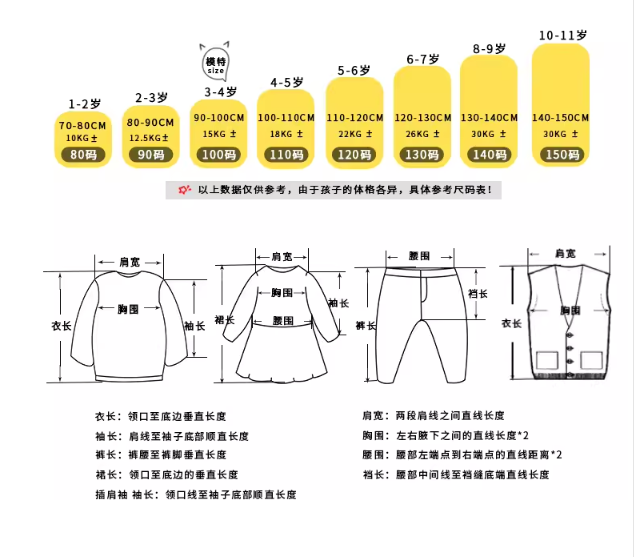 尺码选择 建议身高+10拍,偏胖的宝贝可以再拍大一码