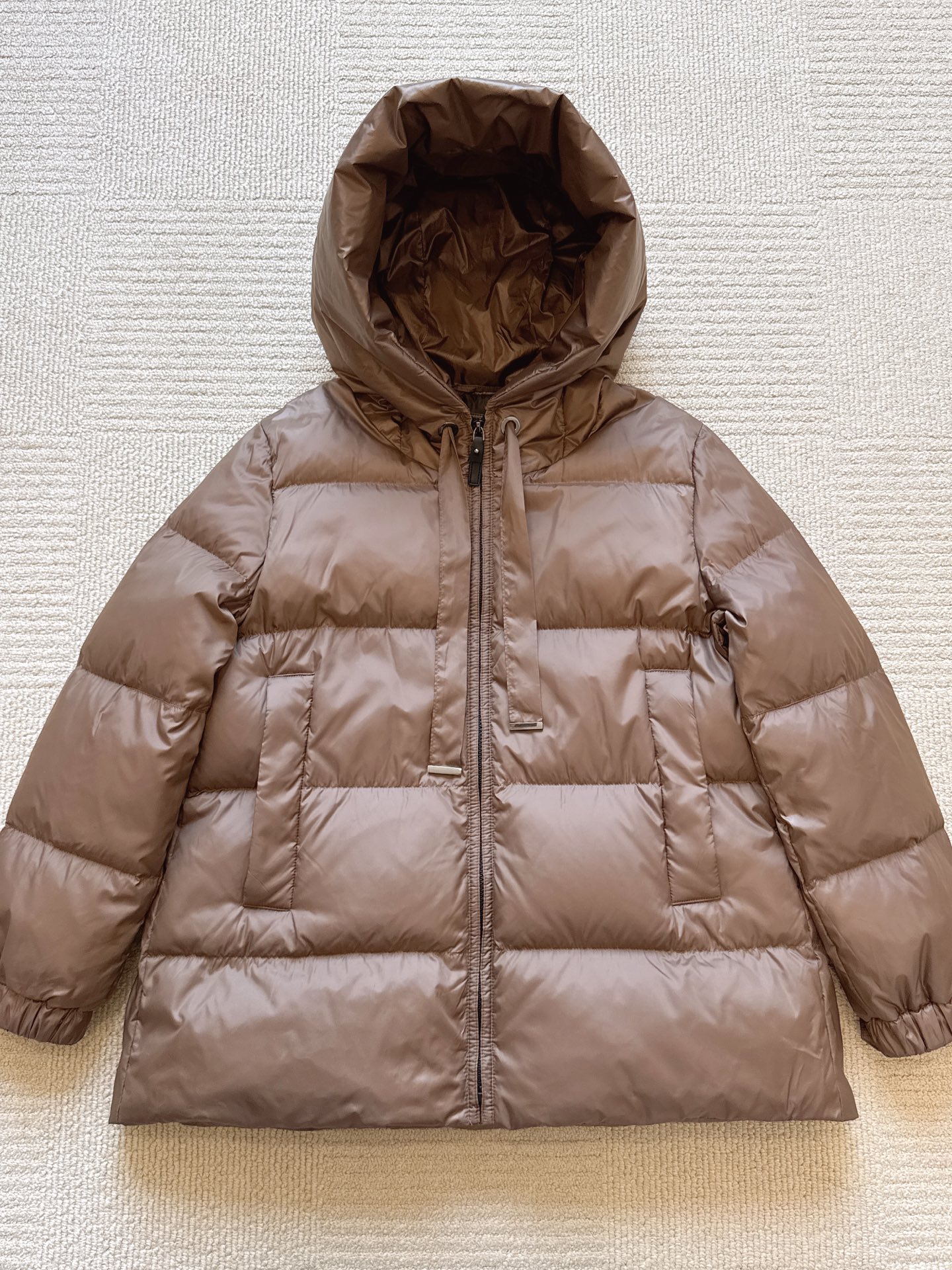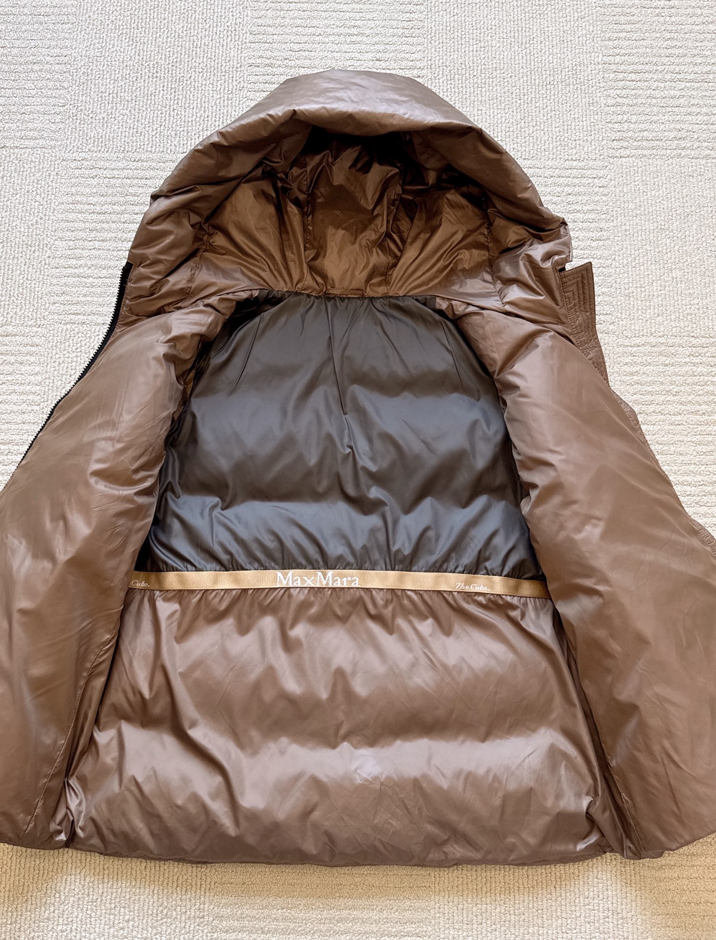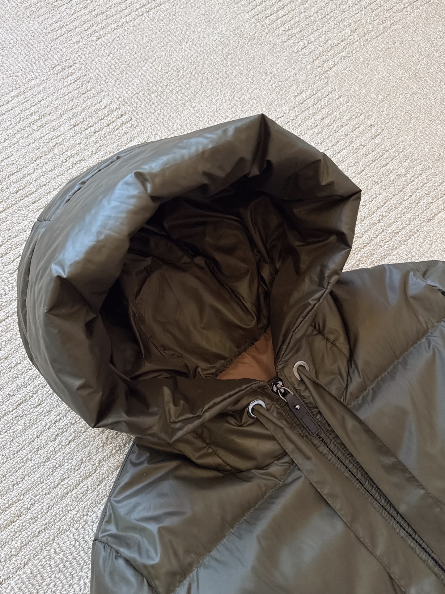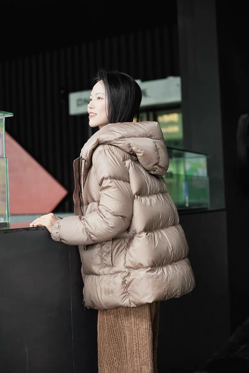max家25秋冬短款连帽羽绒服,M粉们冲过来!! 强烈推荐要入的一款短款羽绒服,不挑身材, 不压身高,穿着轻盈舒适,而且拉链全都是原单原厂定制,真皮拉头,各个细节都很到位。连帽设计,抽绳可调节,大身、帽子都是填充上等白鹅绒,无敌防风保暖,特别轻。侧边口袋, 简约实穿,洗标只保留了一张。