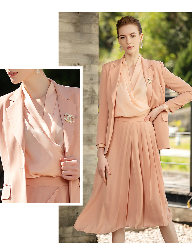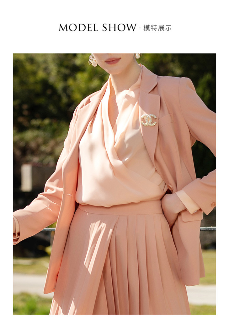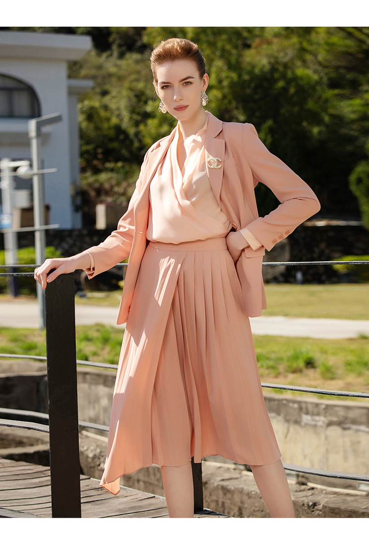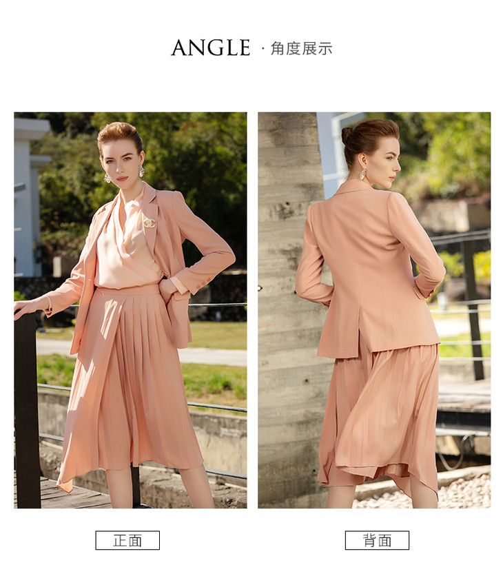 IWY/粉色西装百褶裙时尚套装201028C1+S4