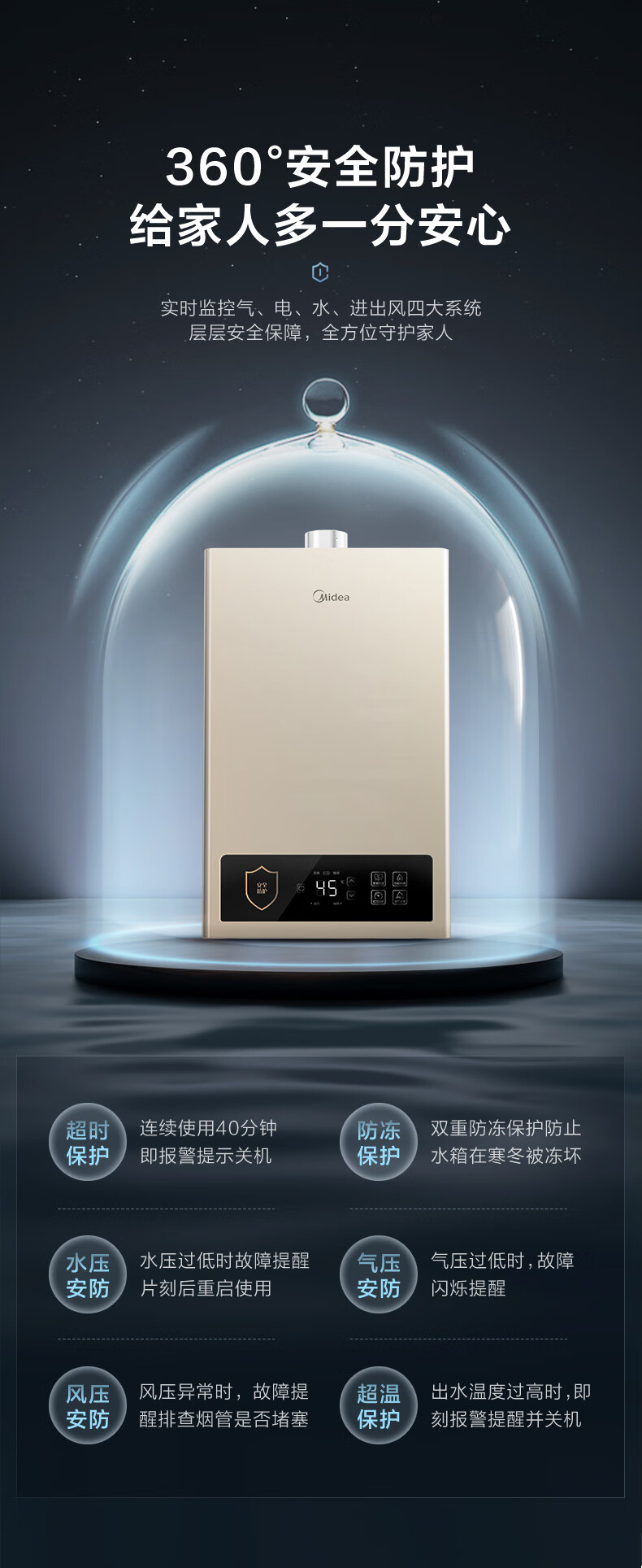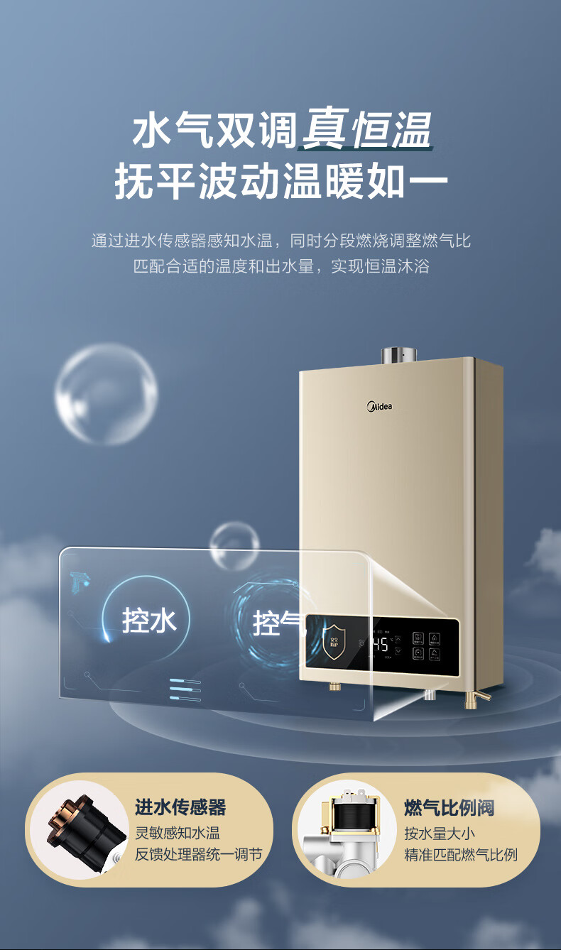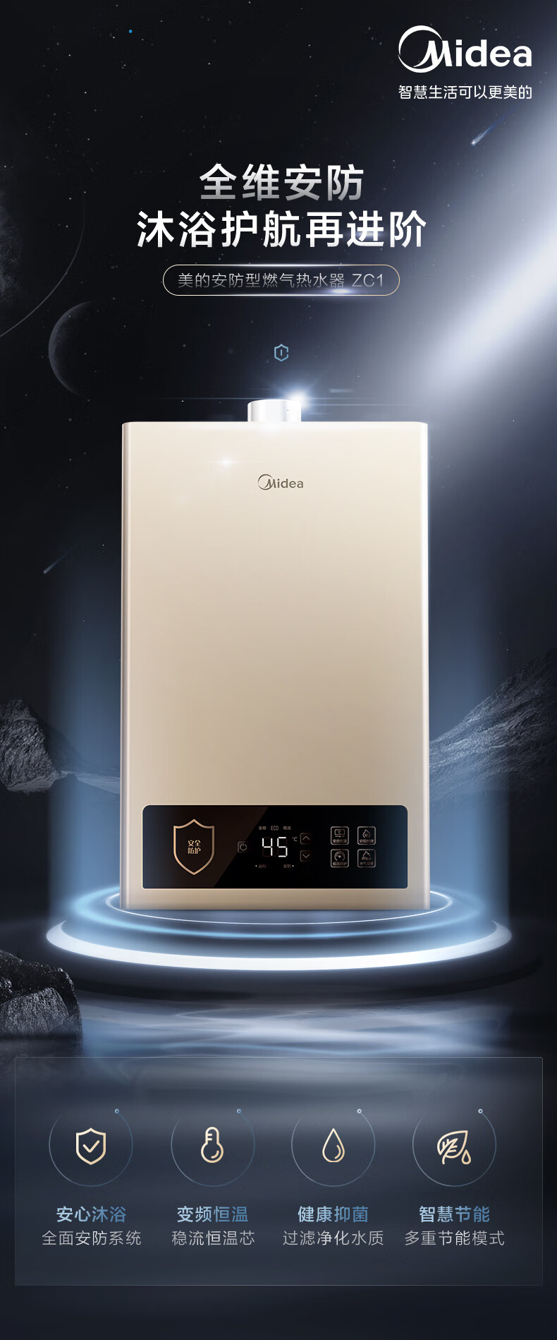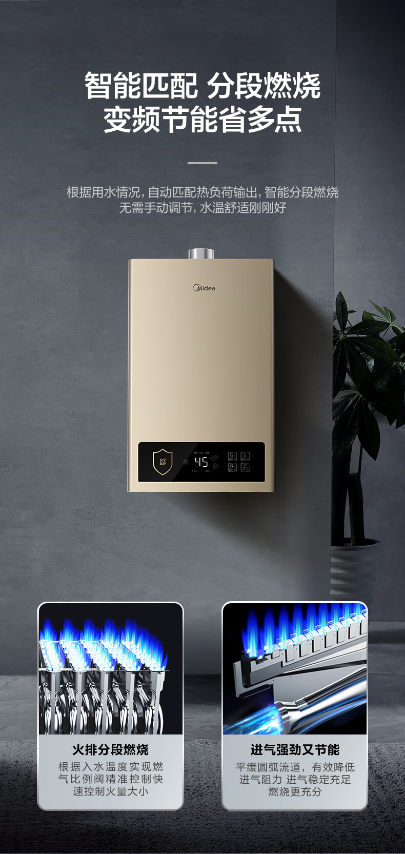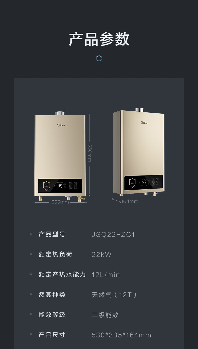 美的(Midea)12升 燃气热水器 恒温芯精控恒温 多重防护 开机自检 JSQ22-ZC1天然气