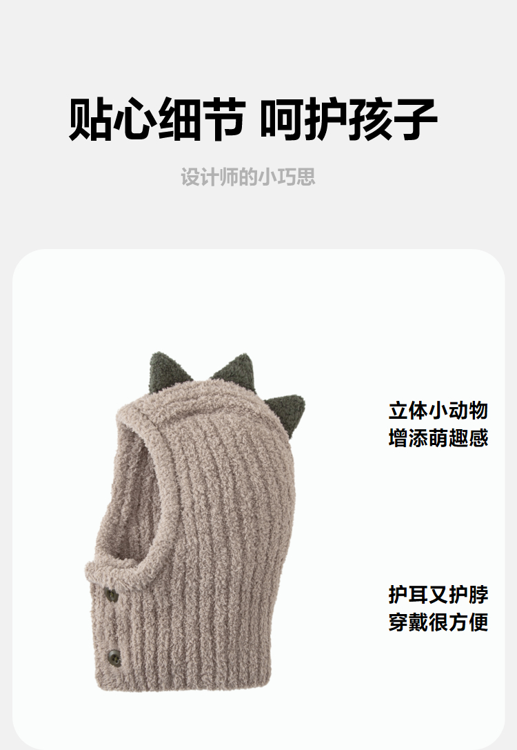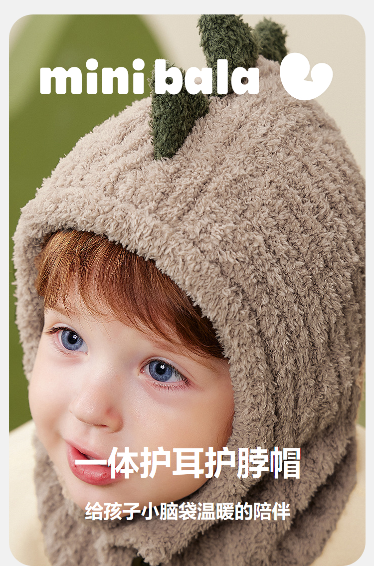 迷你巴拉冬季新款儿童保暖透气一体帽宝宝护耳护脖可爱包头帽