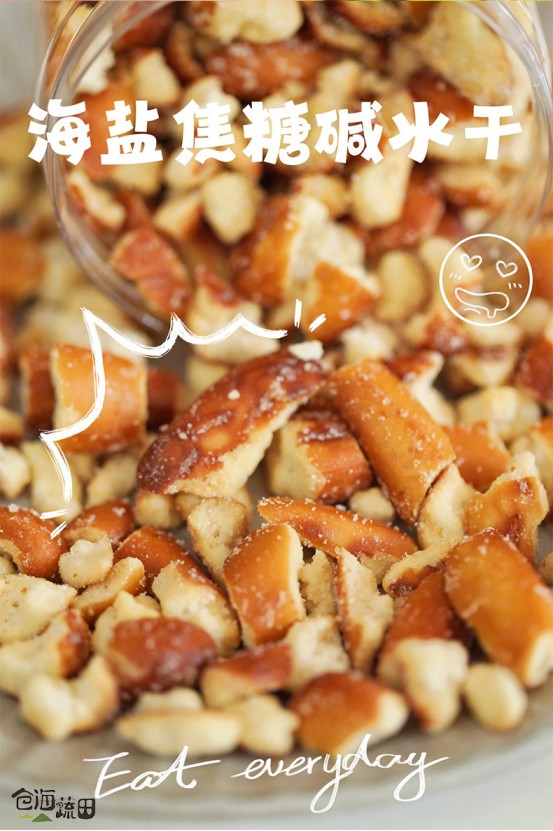 脆脆的碱水面包干你们吃过吗⁉️ 仓海蔬田碱水系列零食出新品咯! 「海盐碱水面包干」 相比较于碱水棒口感更扎实,嘎蹦脆响。 海盐➕焦糖带来的咸甜口感, 可盐可甜,开启“碱”法生活~