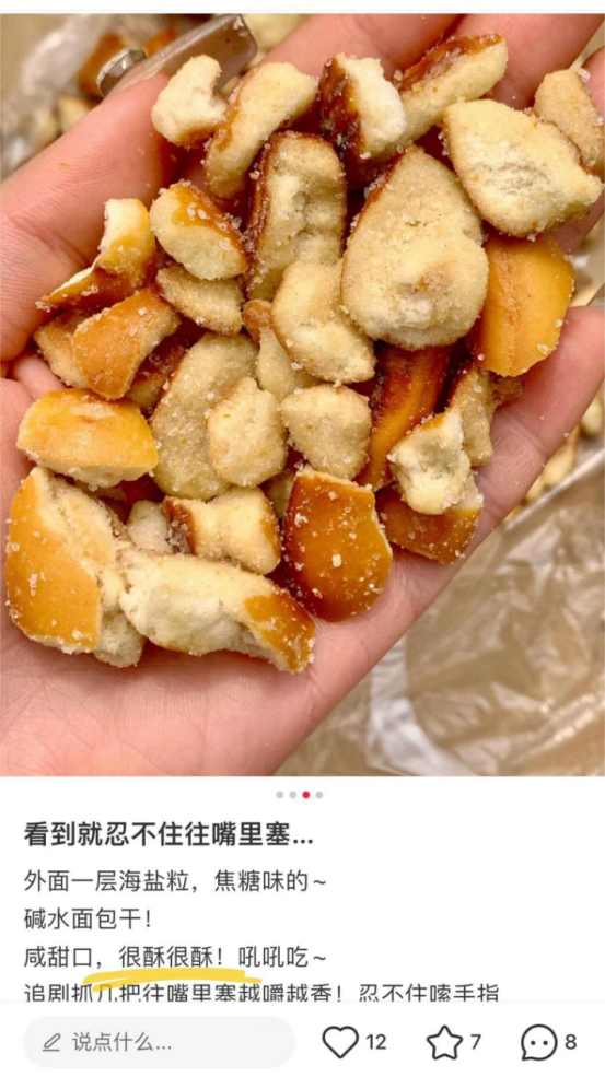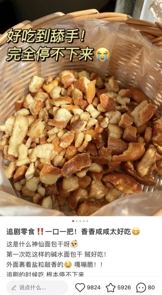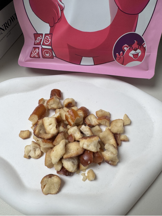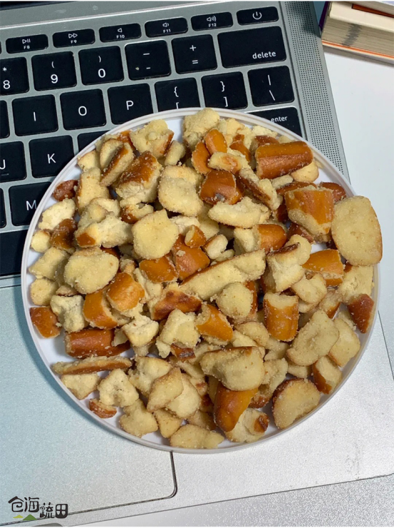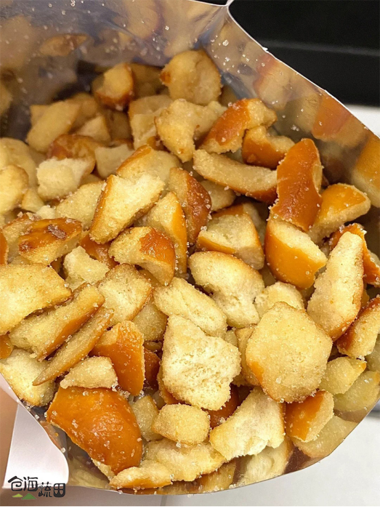 就一边角料。。没必要那么好吃吧😅 凑单买的碱水面包干,本来没对边角料抱着多大期待。。没想到那么好吃😭 上面有海盐颗粒!咸咸甜甜的,嘎嘣脆!!真的越吃越香!! ❌建议不要追剧吃😅压根停不下来