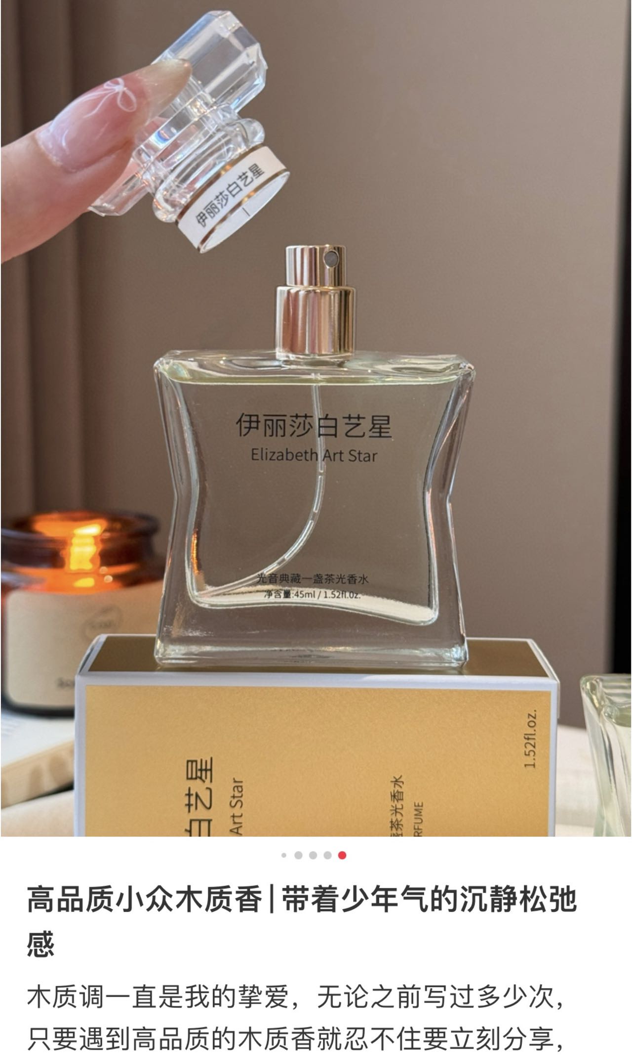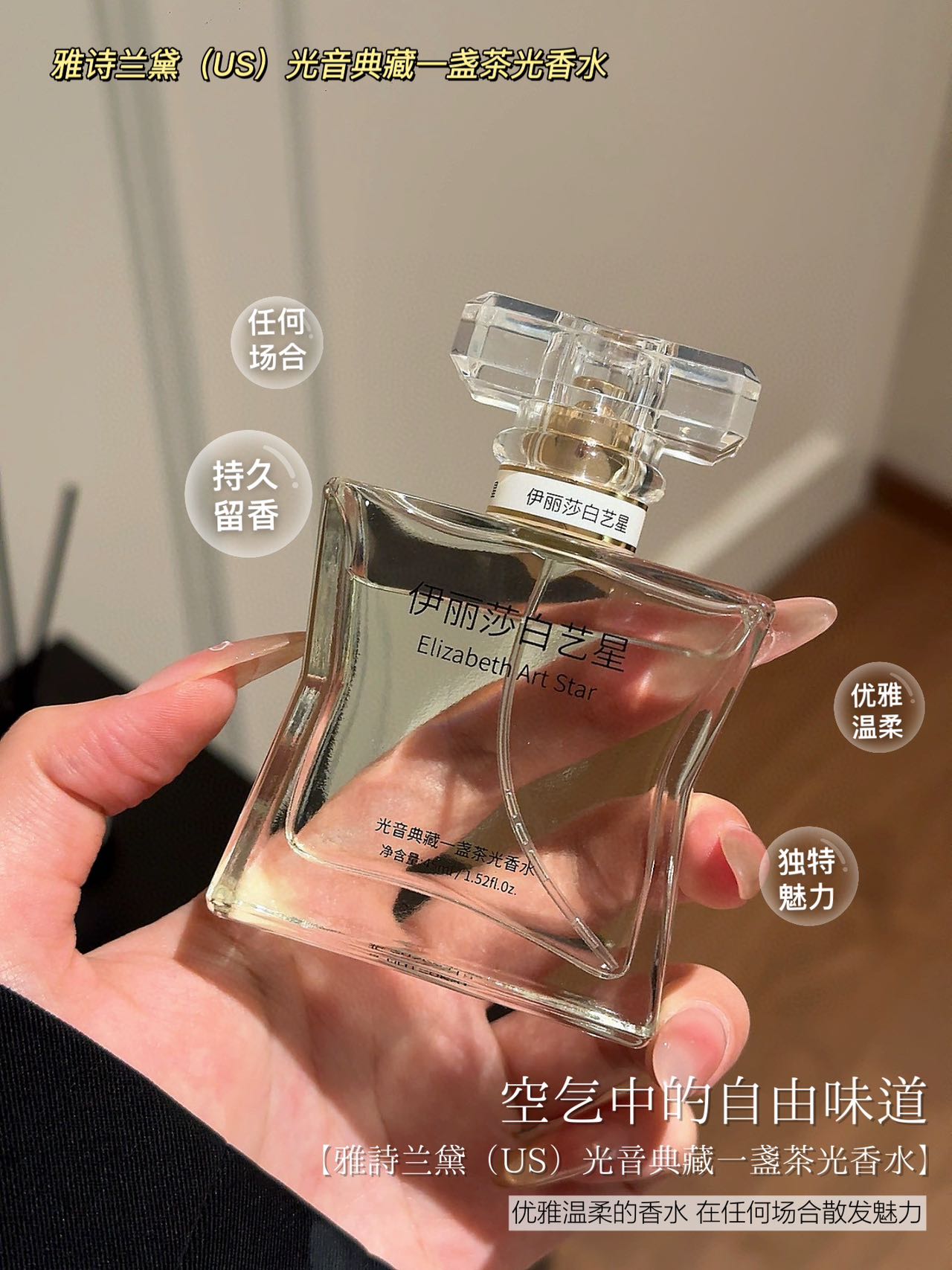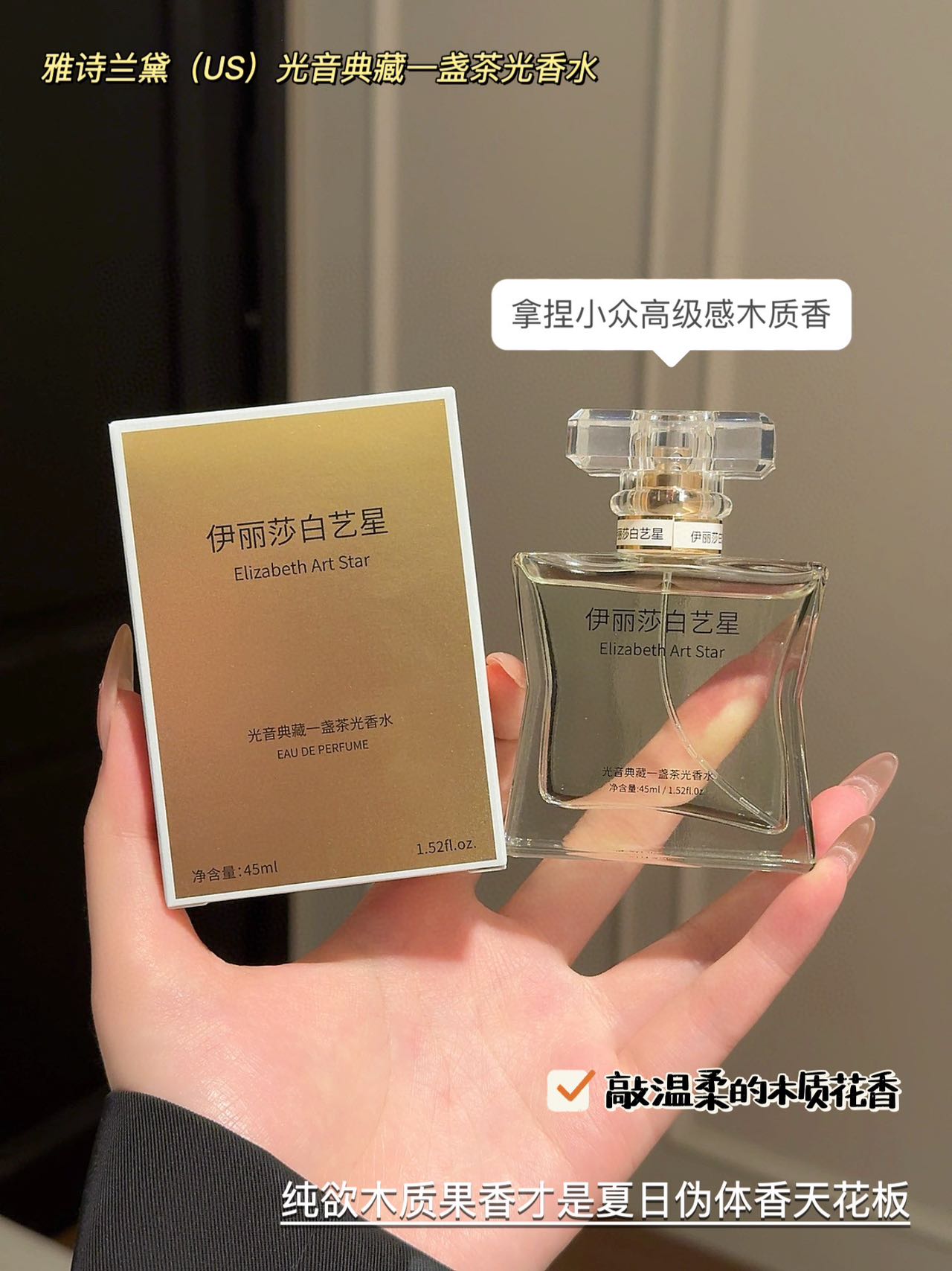 中调花香混着巴西红木的木质调,像把春日茶园穿身上