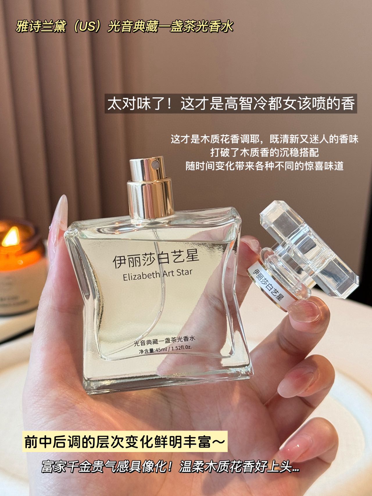 被雅诗兰黛一盏茶光狠狠戳中💘!前调薰衣草柑橘超治愈,中后调花香木质调层层递进,越闻越上头~喷雾细腻,留香超久!