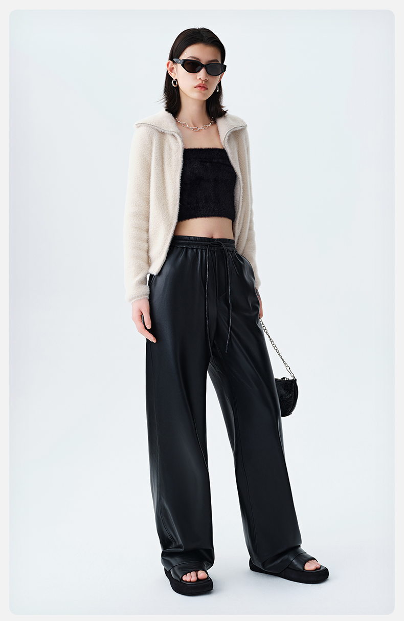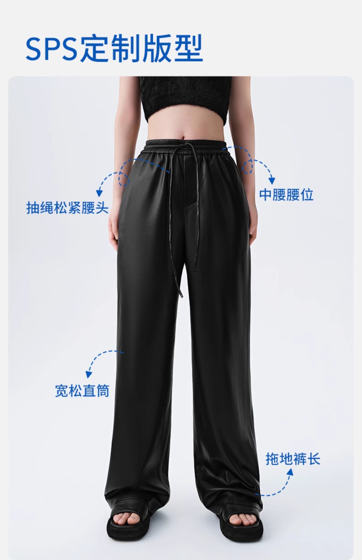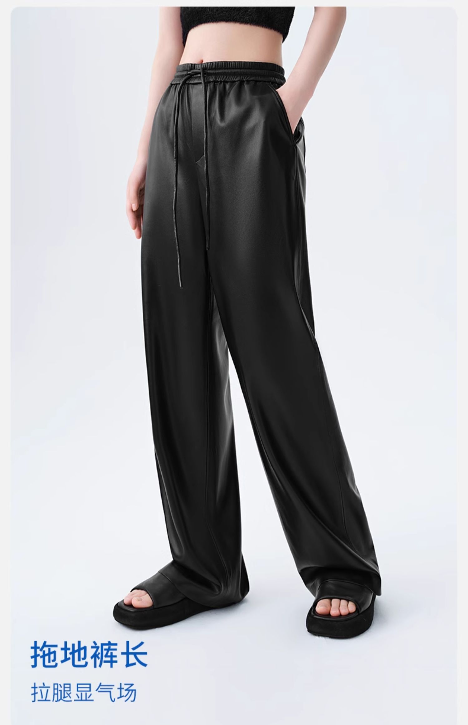 【素皮直筒拖地裤】simplepieces冬季SPS新PU皮抽绳宽松休闲裤女