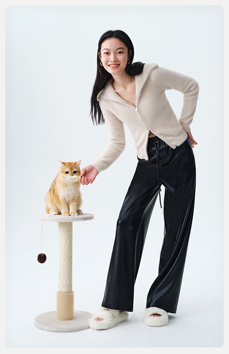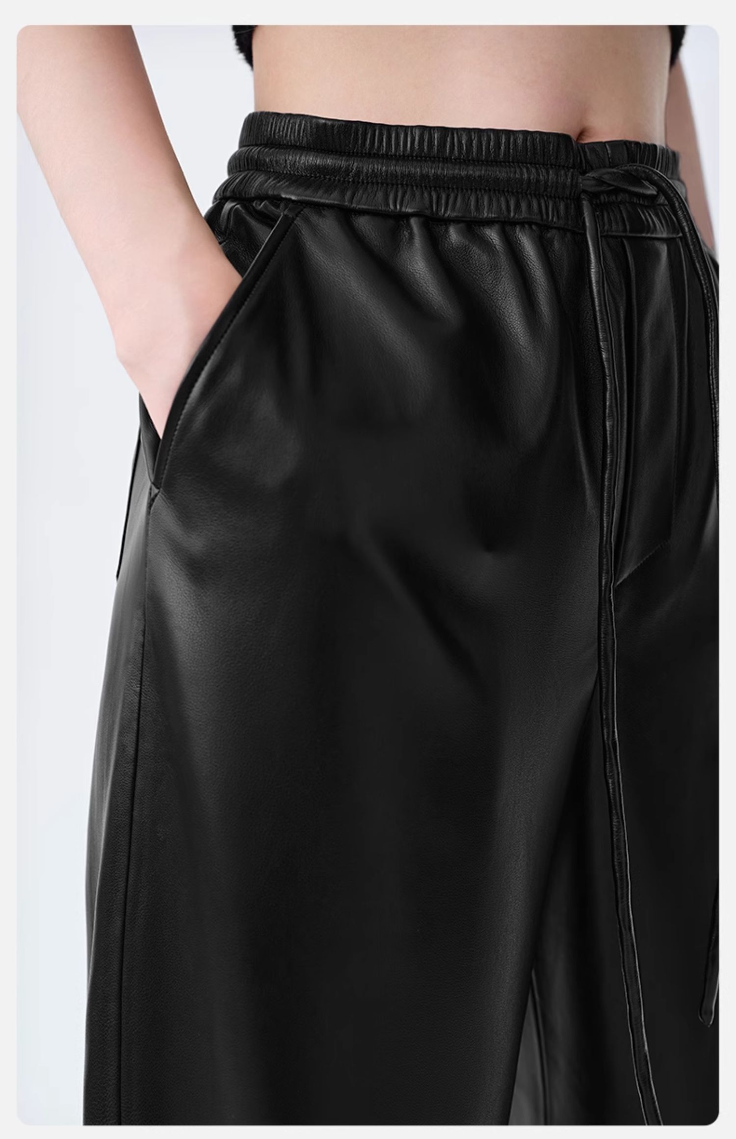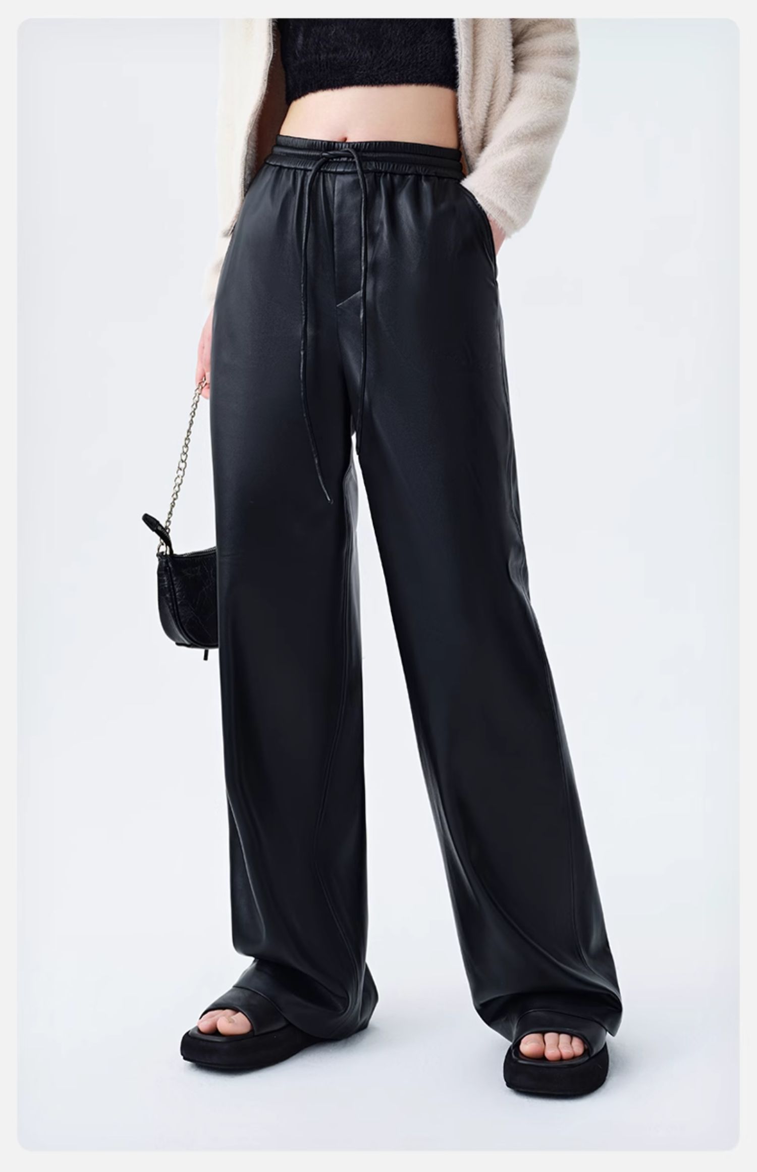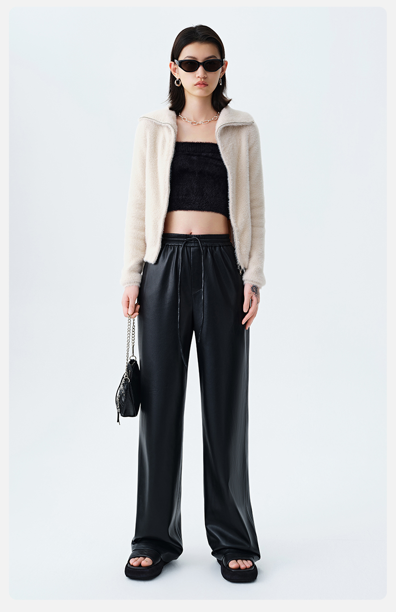 【素皮直筒拖地裤】simplepieces冬季SPS新PU皮抽绳宽松休闲裤女